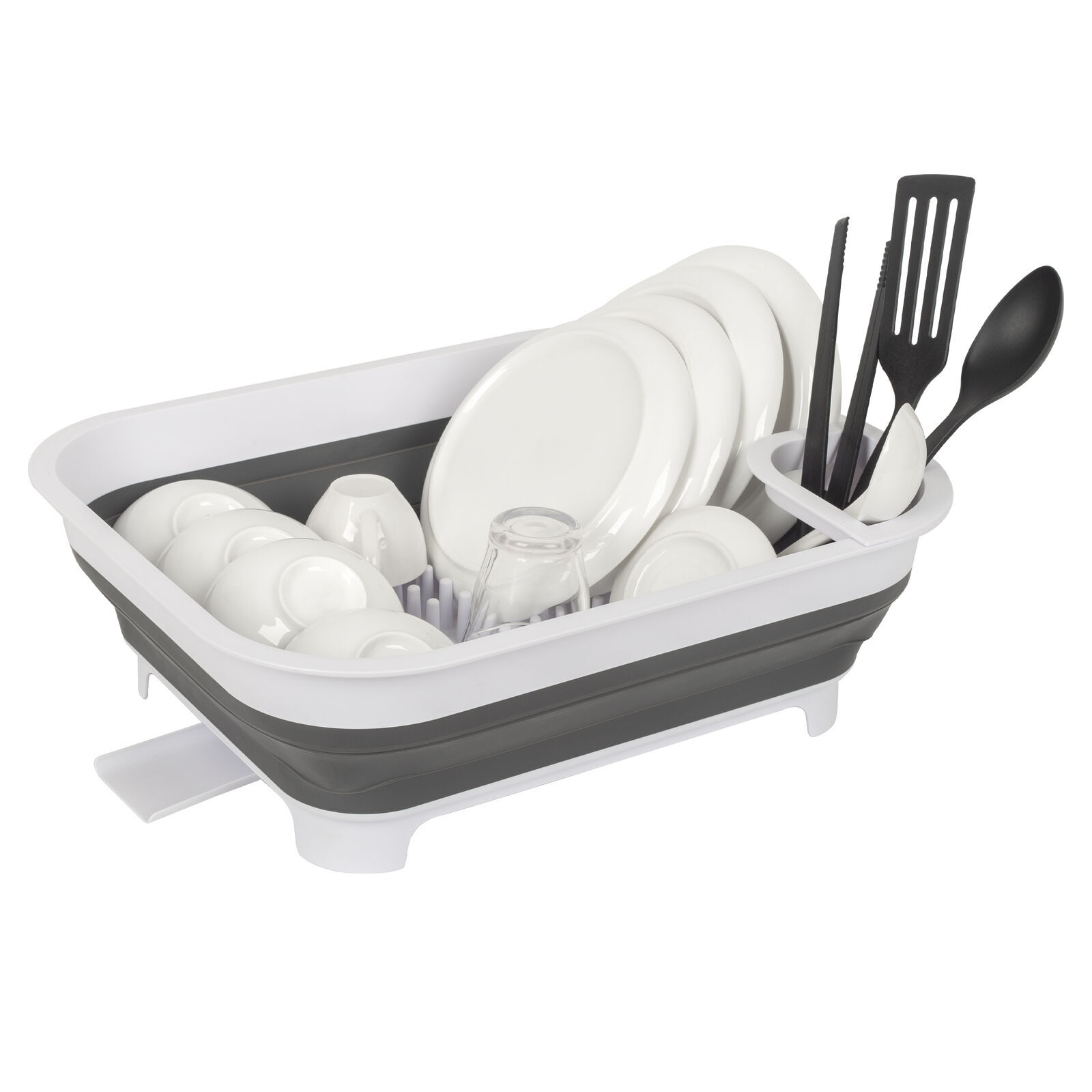 Collapsible Dish Rack with Utensil Section Space-Saving Drying Rack for Compact Kitchens & Camping