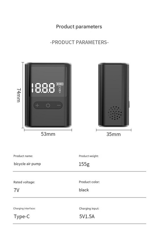 This air pump boasts a brushless direct current motor designed for efficient, quiet, and long-lasting performance. Its small dimensions (approximately 35mm x 53mm x 88mm) and lightweight construction make it incredibly easy to carry on bike rides or store in a gear bag. It comes equipped with various nozzle attachments for versatility across different inflation tasks.