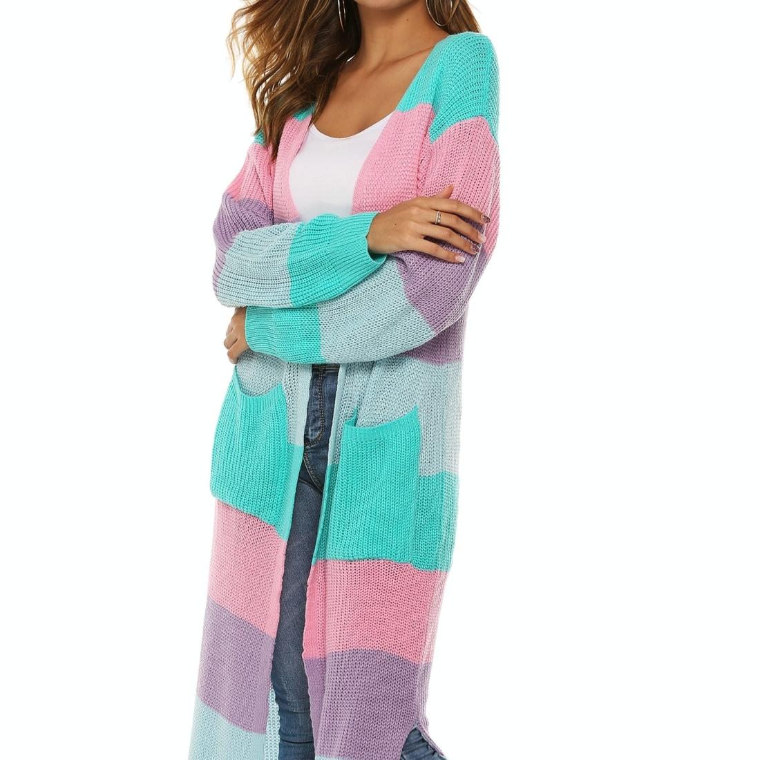 Contrast Striped Knit Sweater Blue Pink – L – Orange Green M