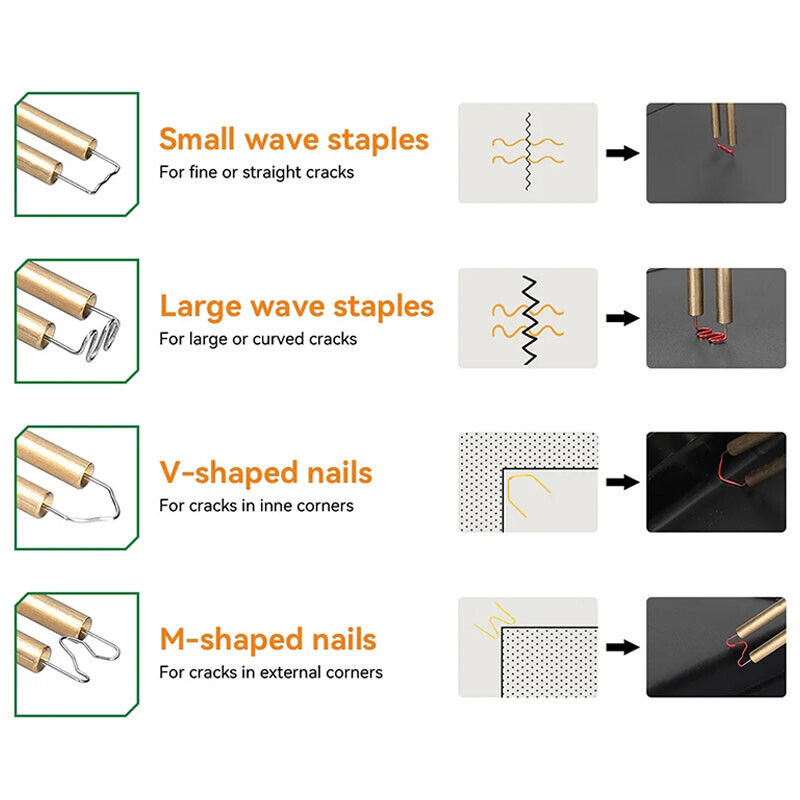 Repairs at least 98% of the plastics on the market. Perfect for repairing: bumper, dashboard, lamp holder, plastic ring, radiator, spoiler, handles, headlights, plastic wings, car and motorcycle plastic device, etc.