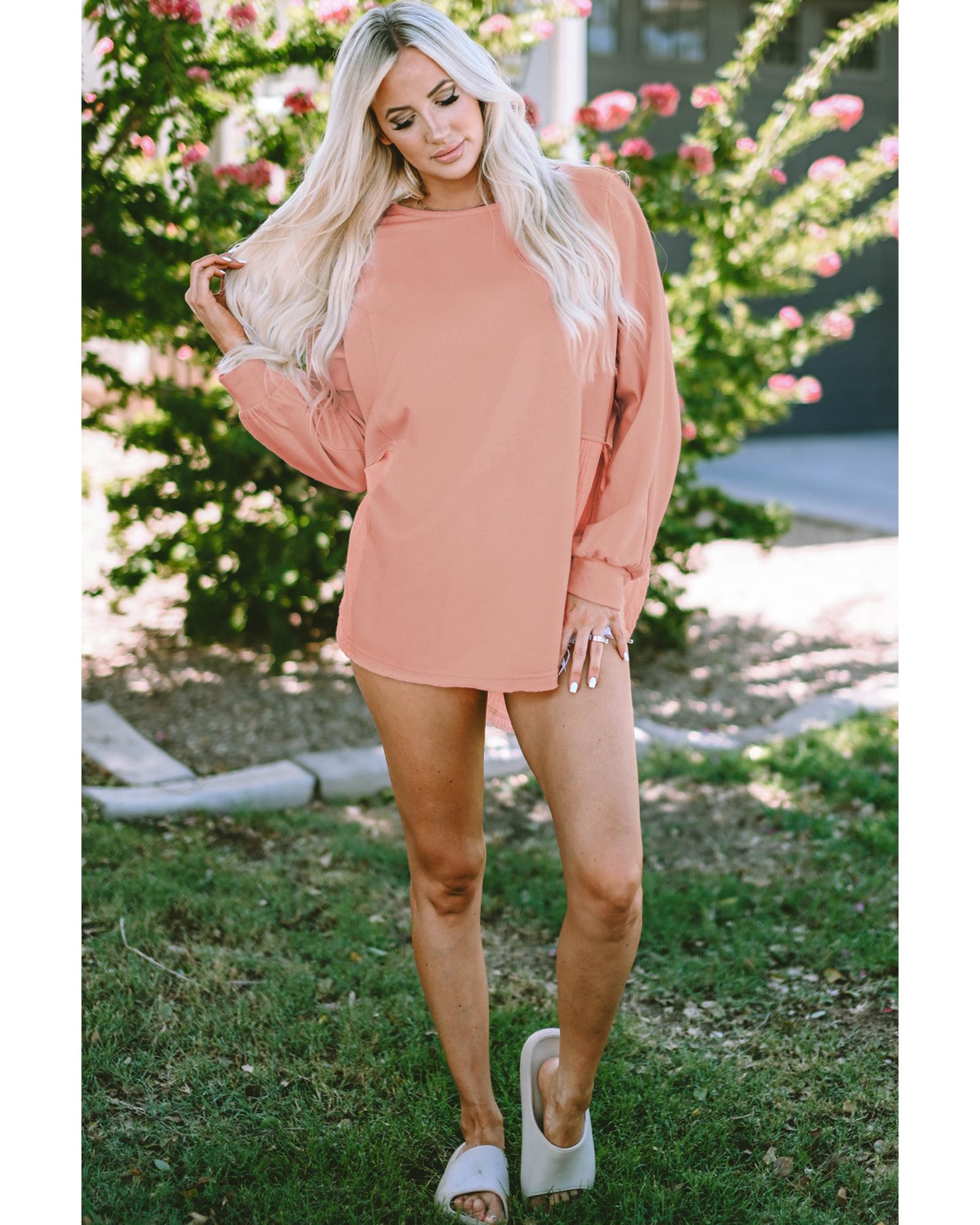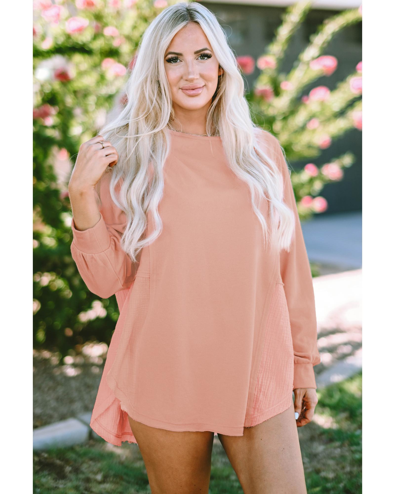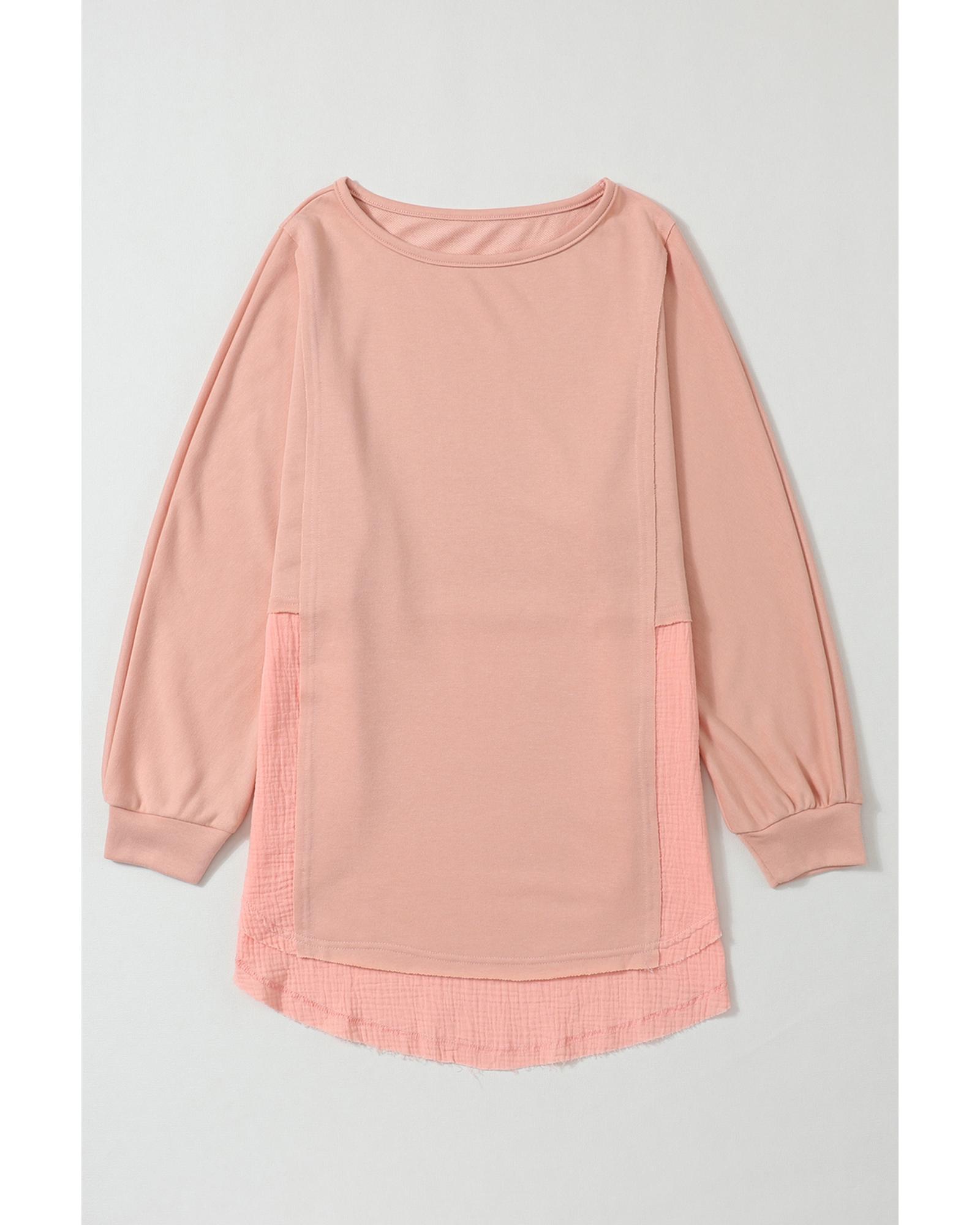 Crinkle Splicing Raw Hem High Low Oversized Blouse – L
