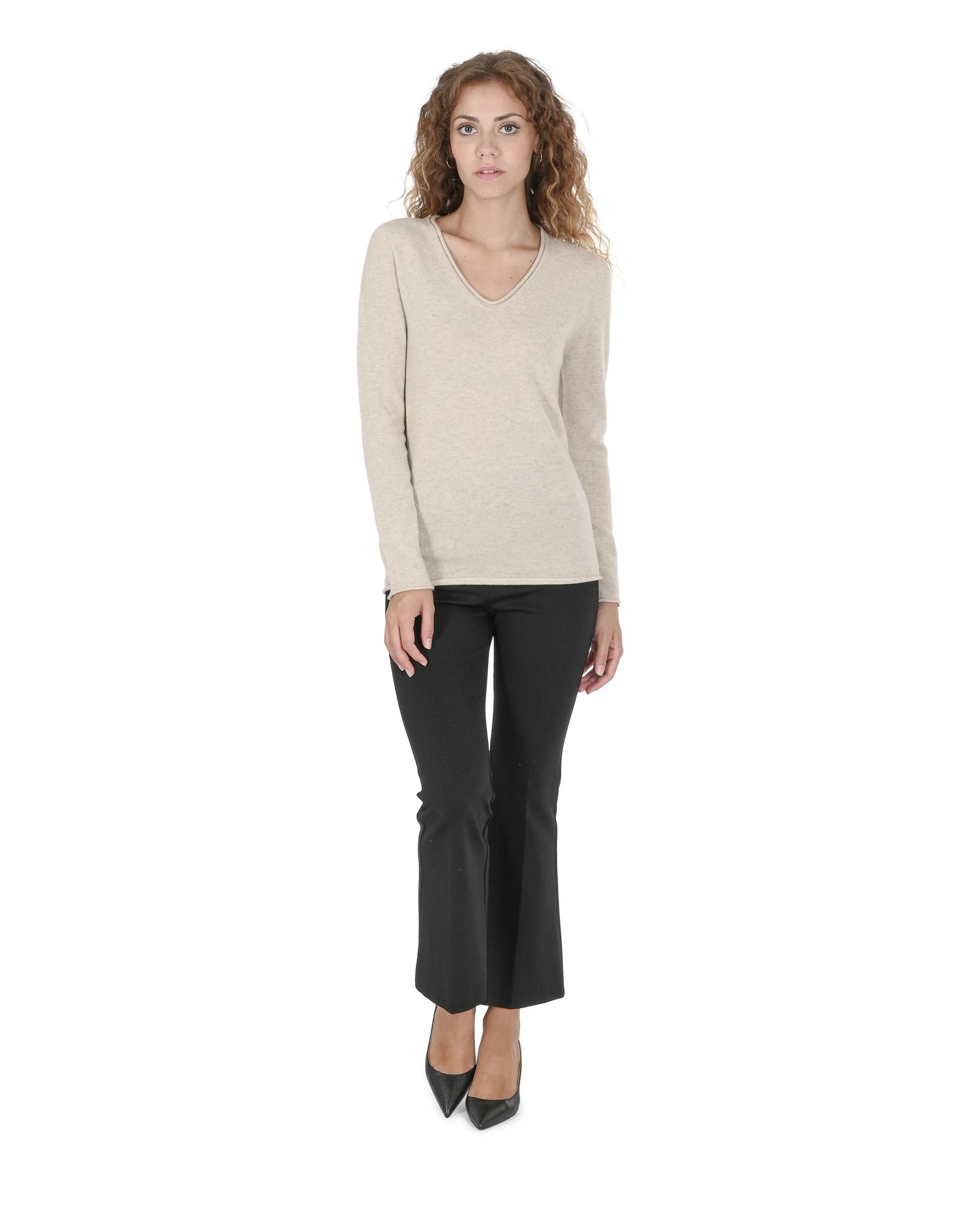 Crown of Edinburgh Cashmere Women’s Premium Italian Cashmere V-Neck Sweater in Beige – 46 EU