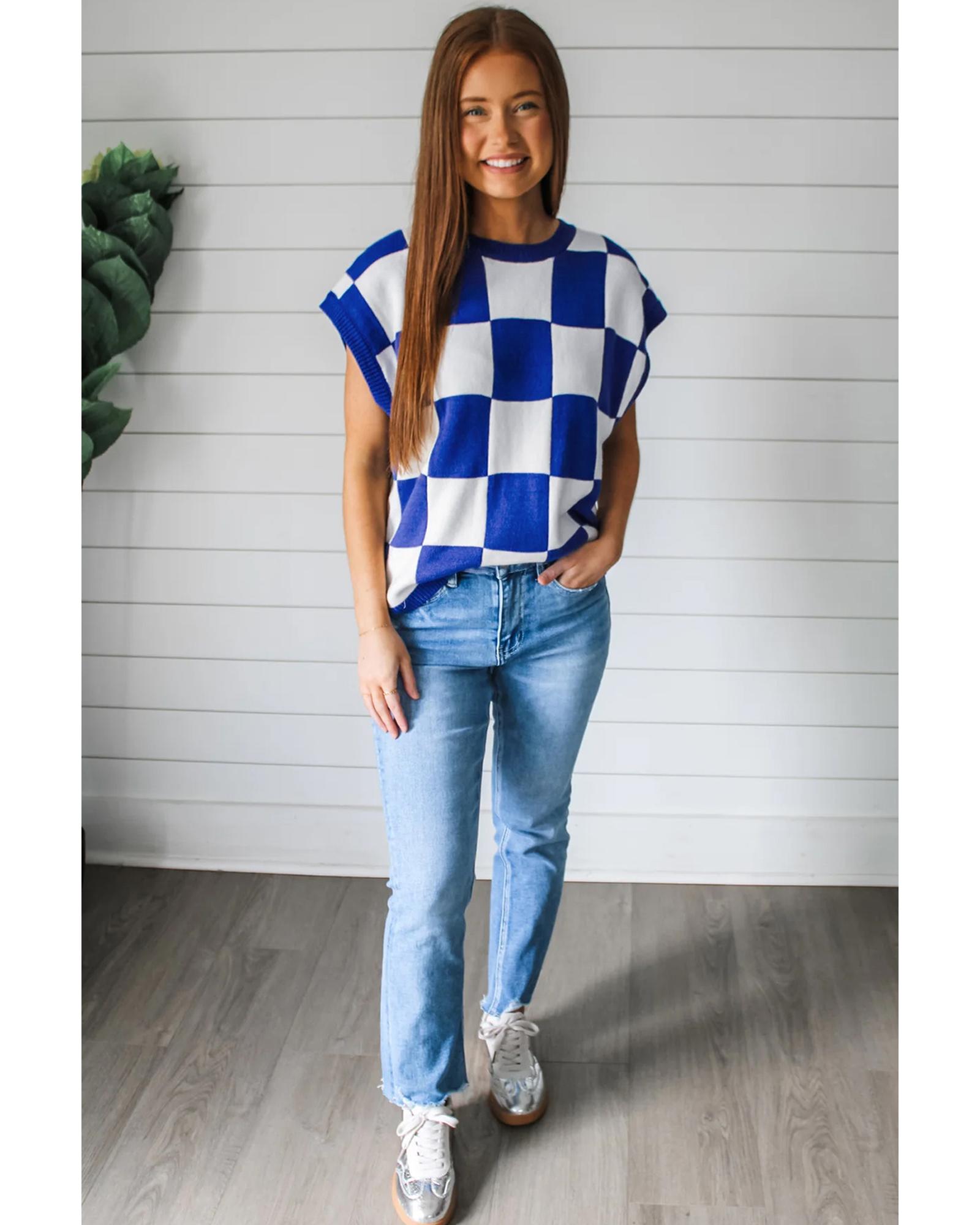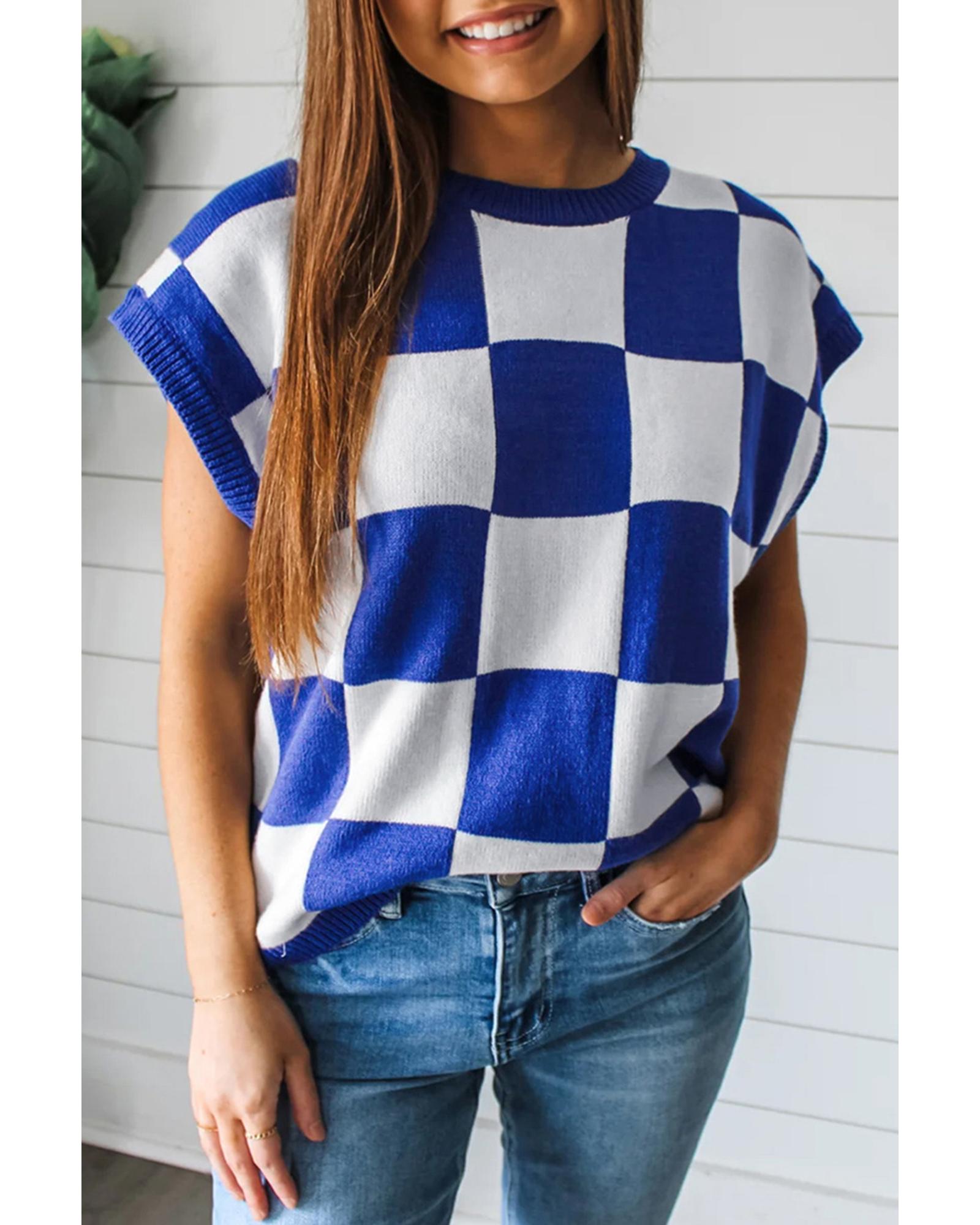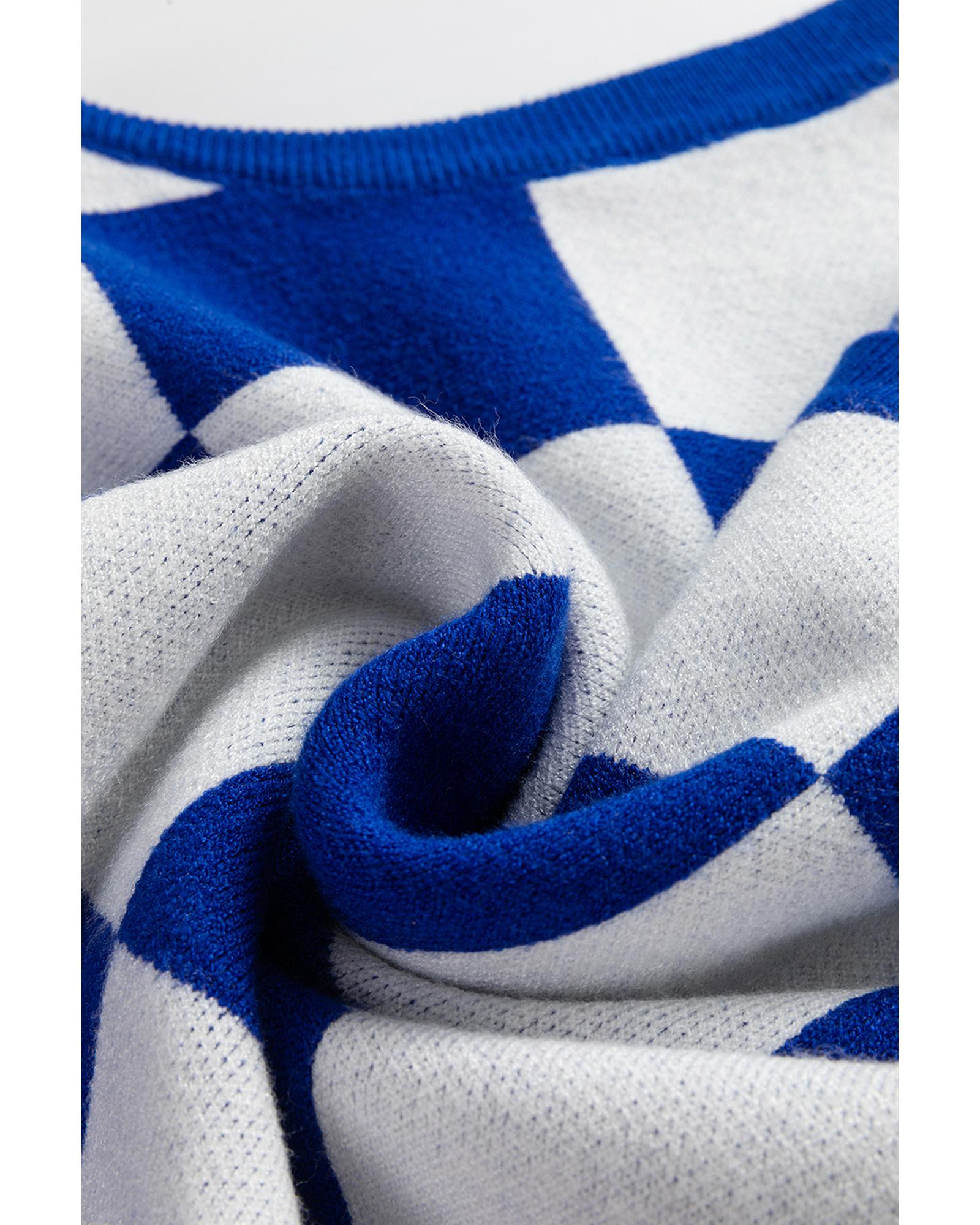 Dark Blue Cherckerboard Round Neck Sweater Vest – XL