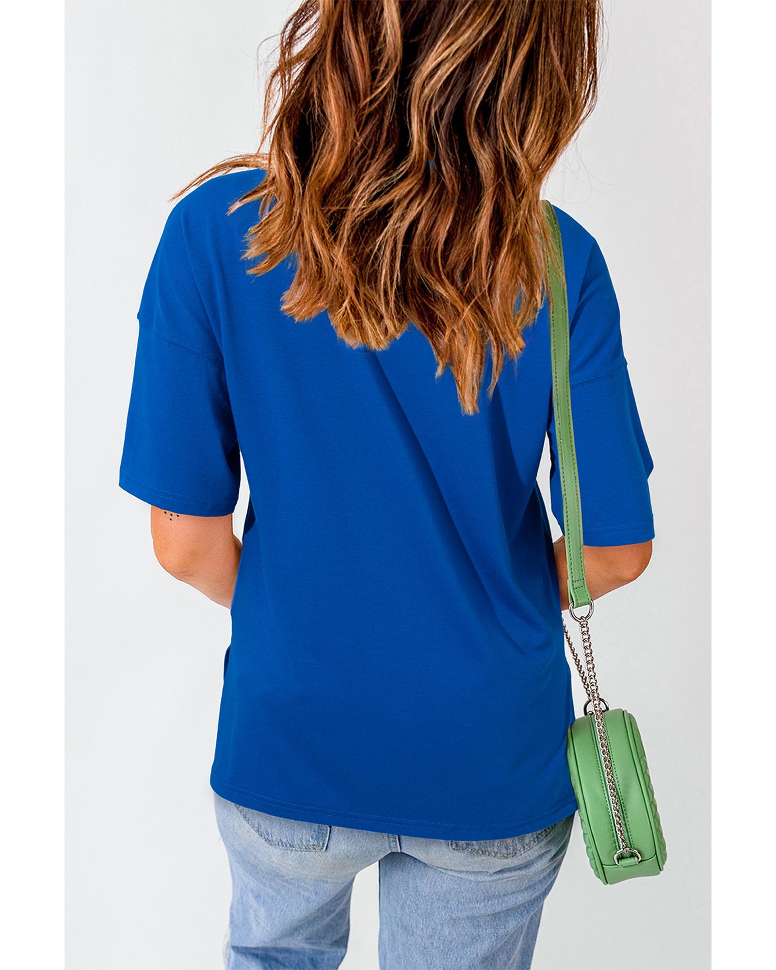 Dark Blue Contrast America Graphic Drop Shoulder Tee – S