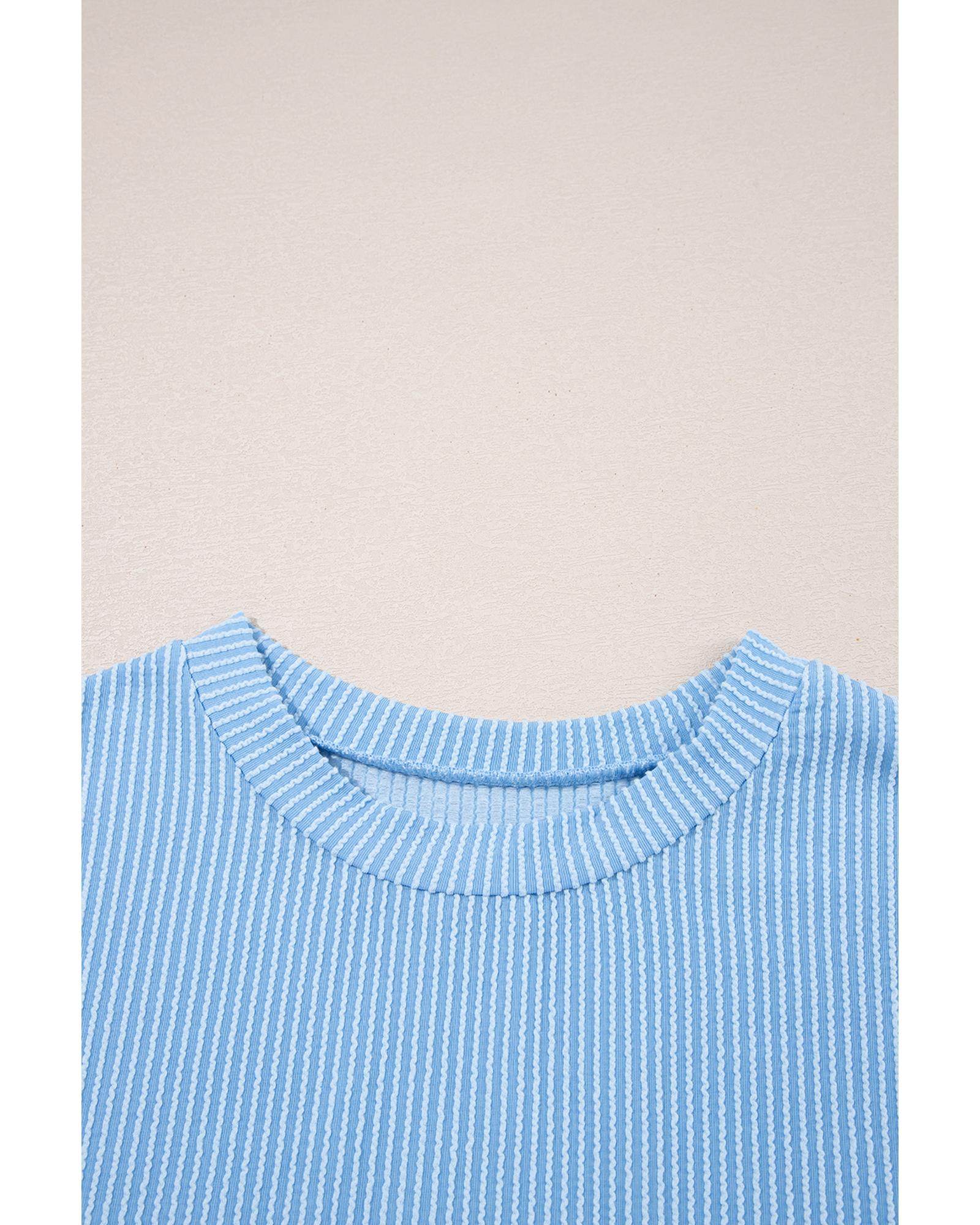 Dark Blue Corded Knit Color Block Pocketed Crew Neck T Shirt – S