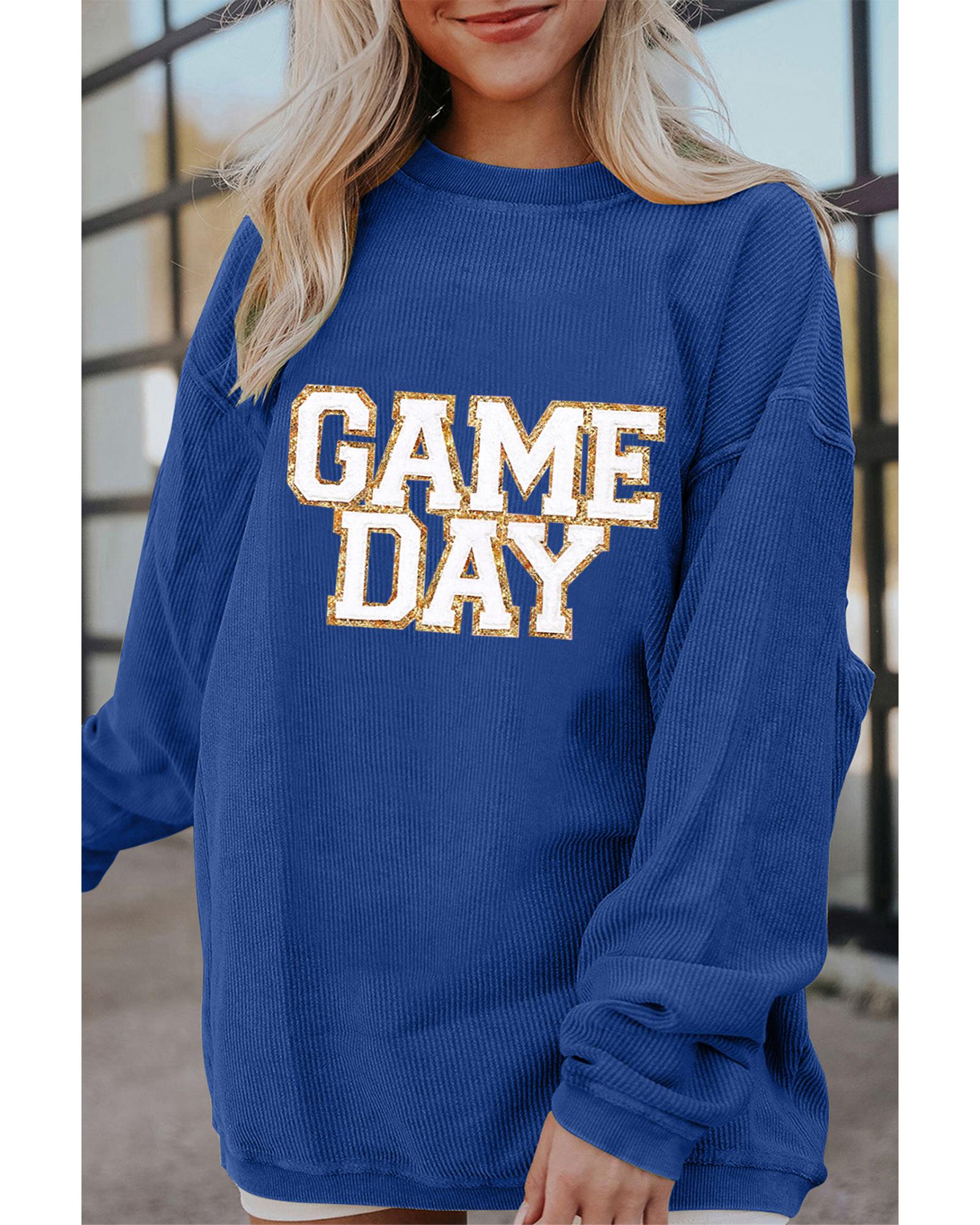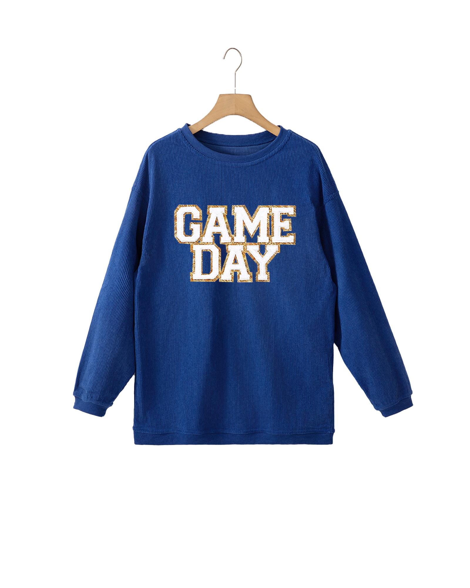 Dark Blue GAME DAY Glitter Detail Ribbed Drop Shoulder Sweatshirt – XL