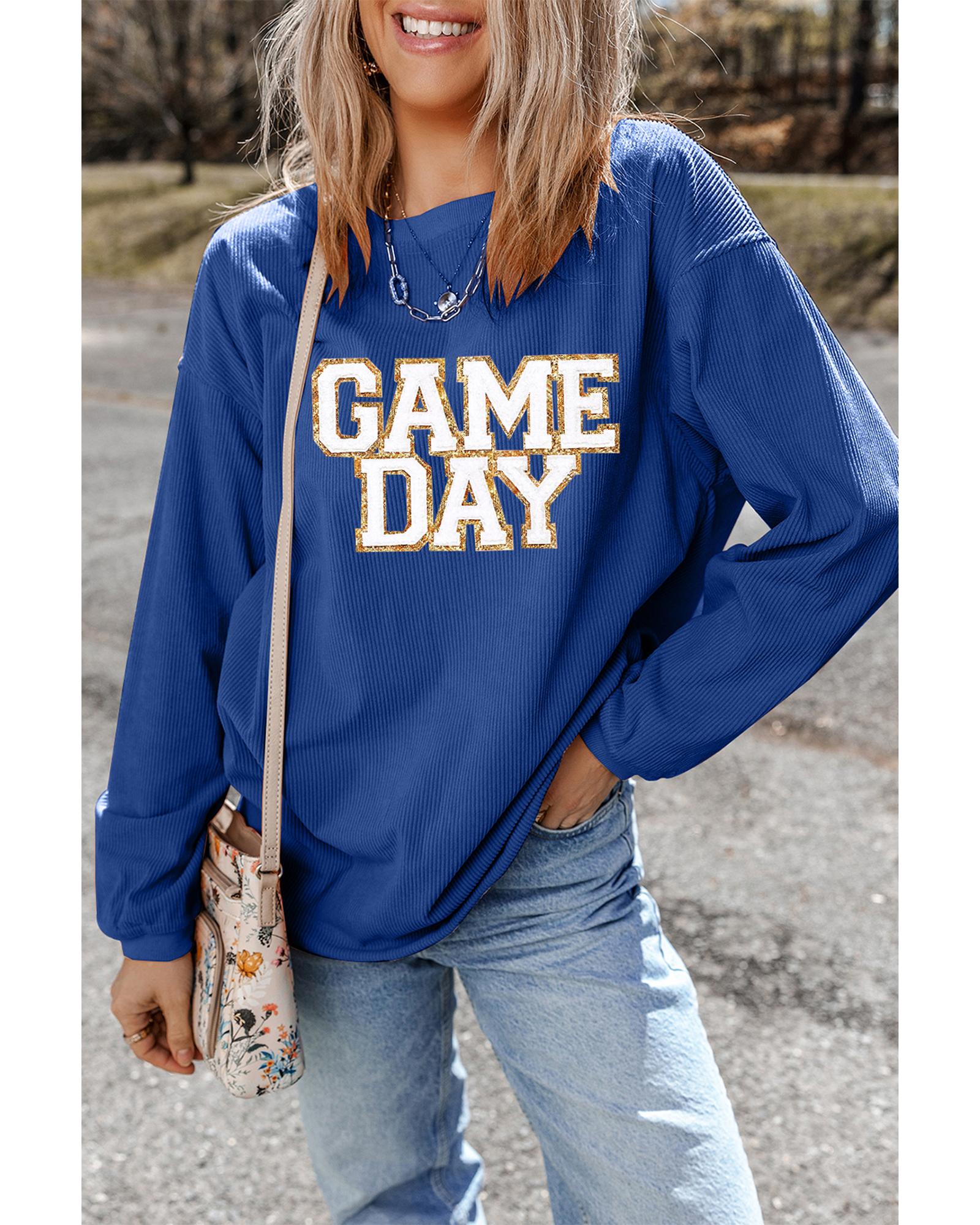 • Dark Blue GAME DAY Glitter Detail Ribbed Drop Shoulder Sweatshirt