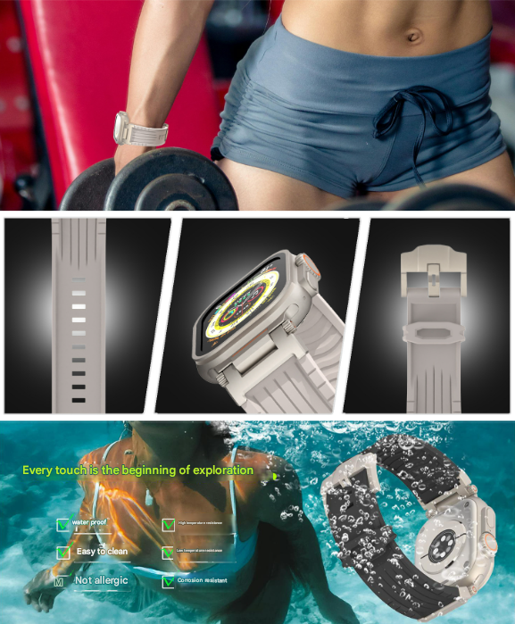 - Premium Materials: Crafted from high-quality, skin-friendly silicone that is soft, flexible, and sweat-resistant. The connectors and buckle are made from durable metal (appears to be stainless steel with a matte finish) for enhanced longevity and a secure fit.