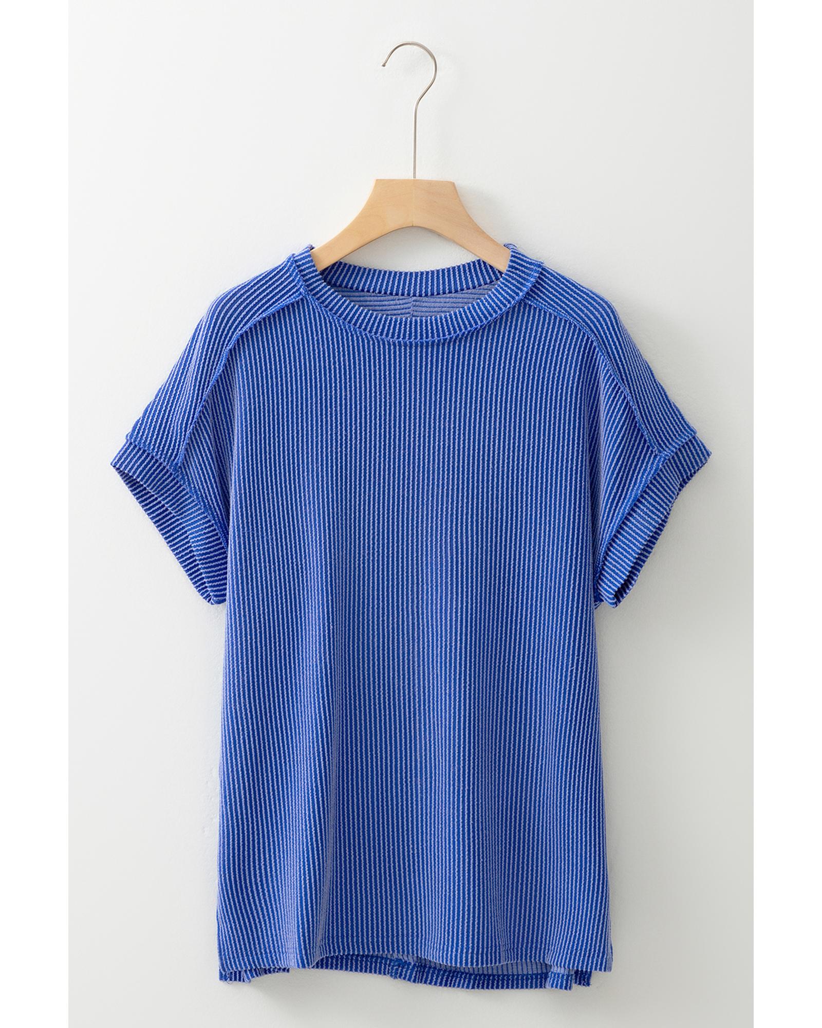 Dark Blue Textured Knit Exposed Stitching T-shirt – M