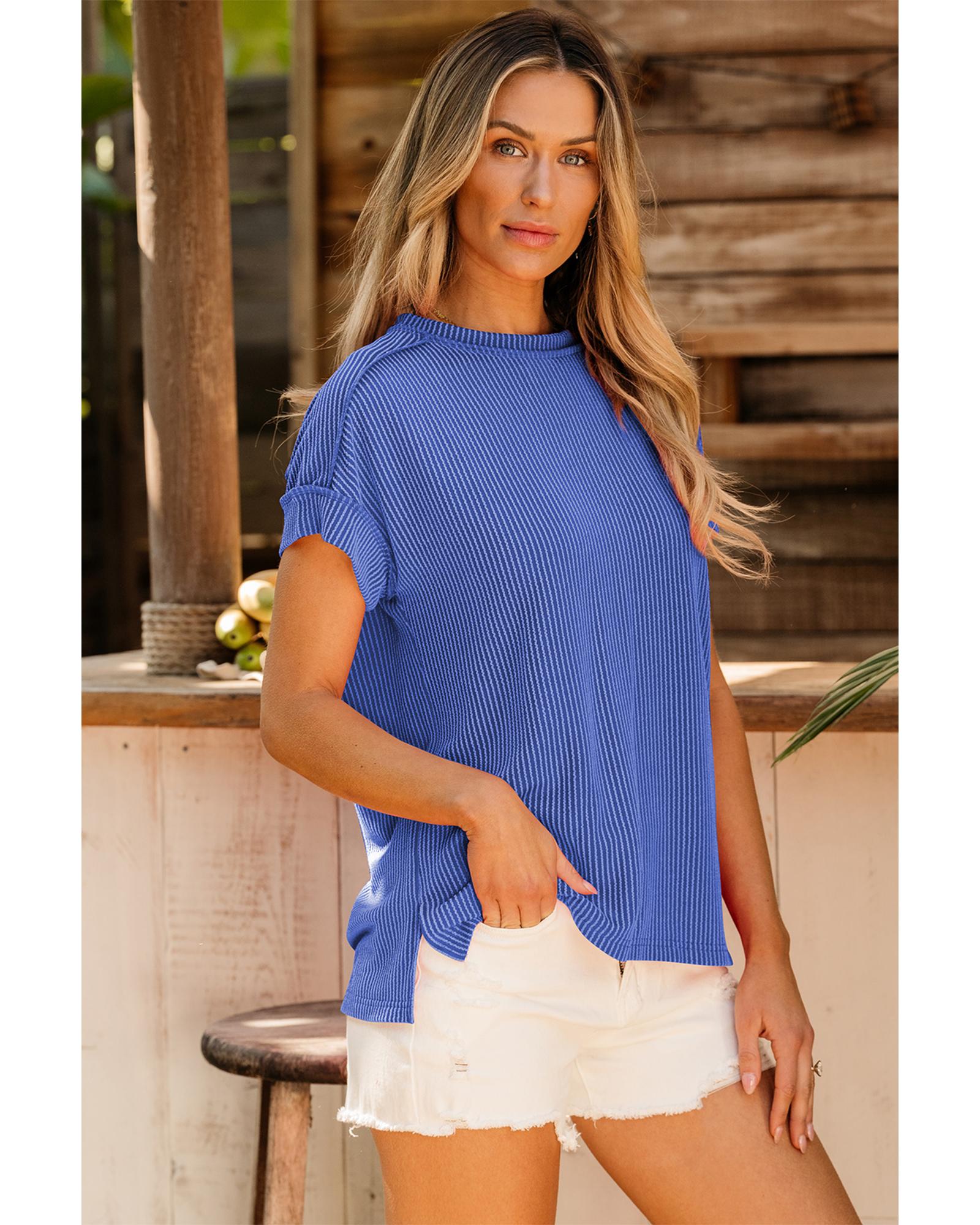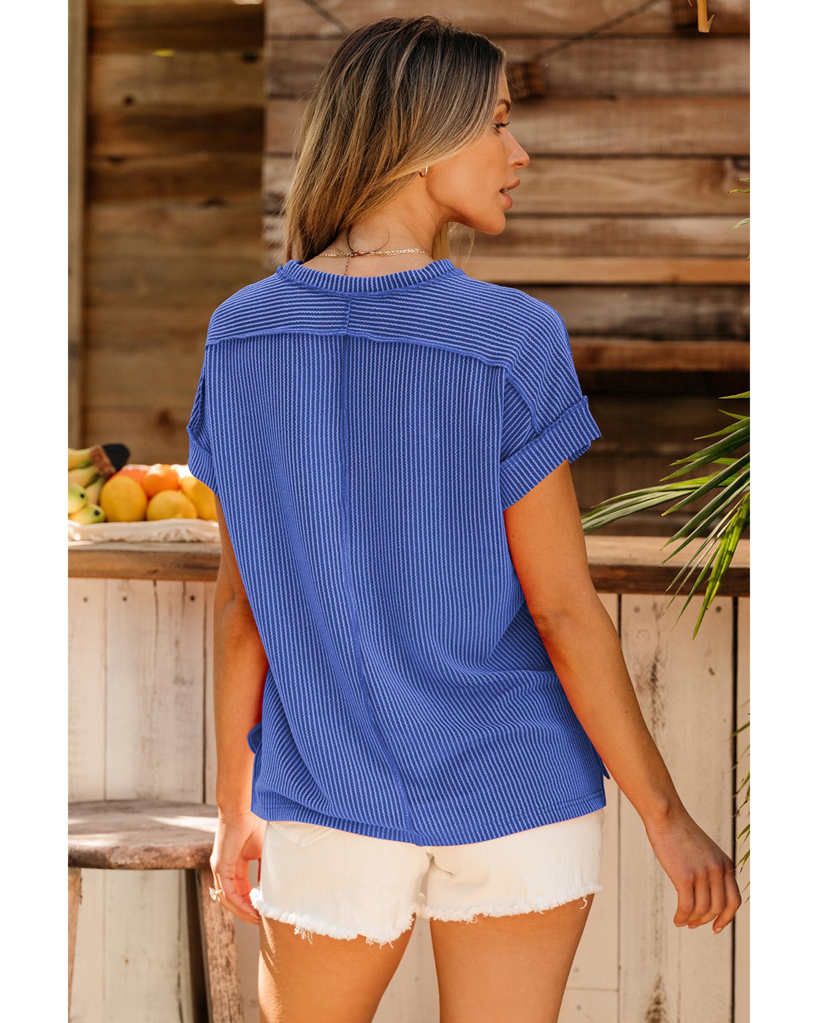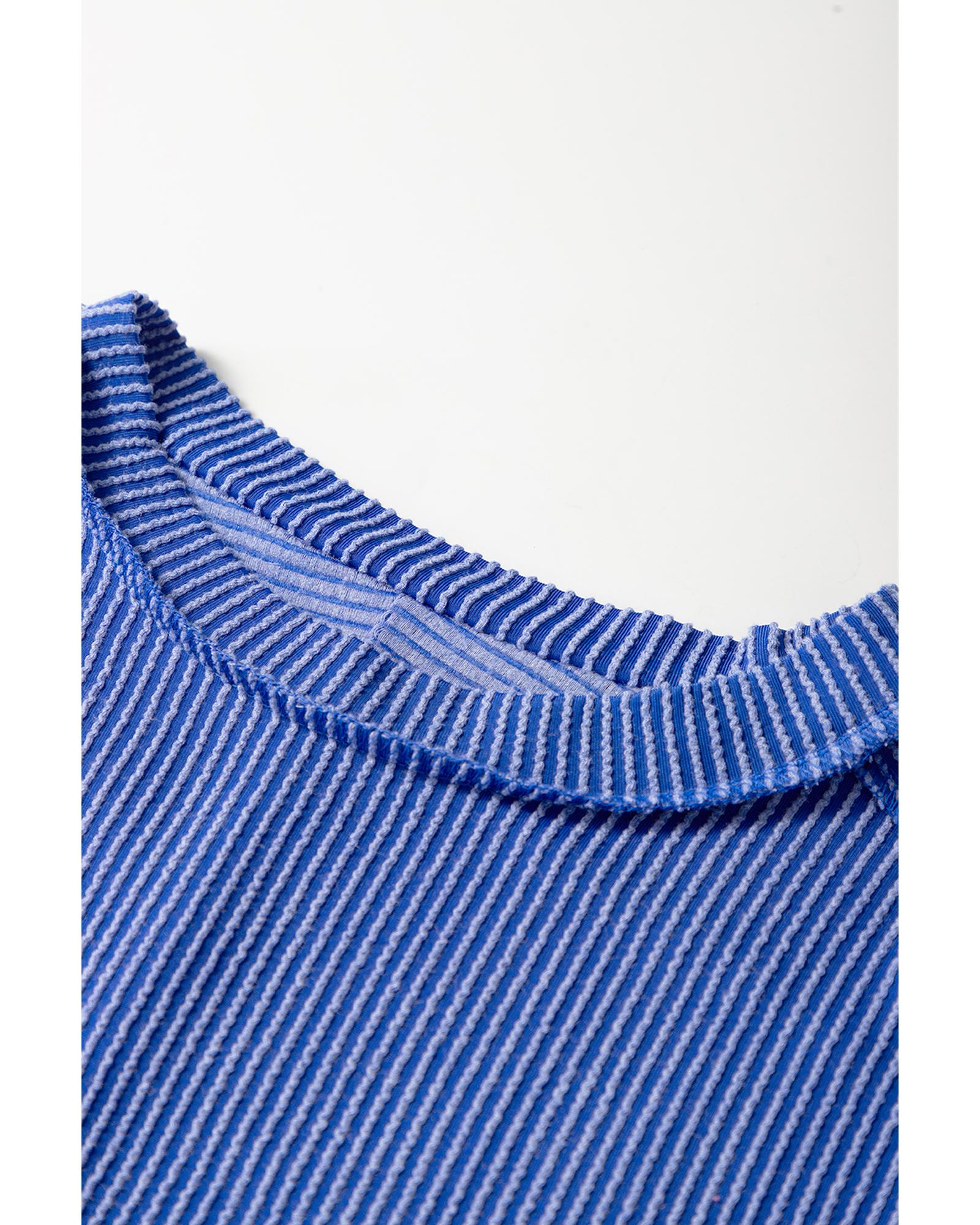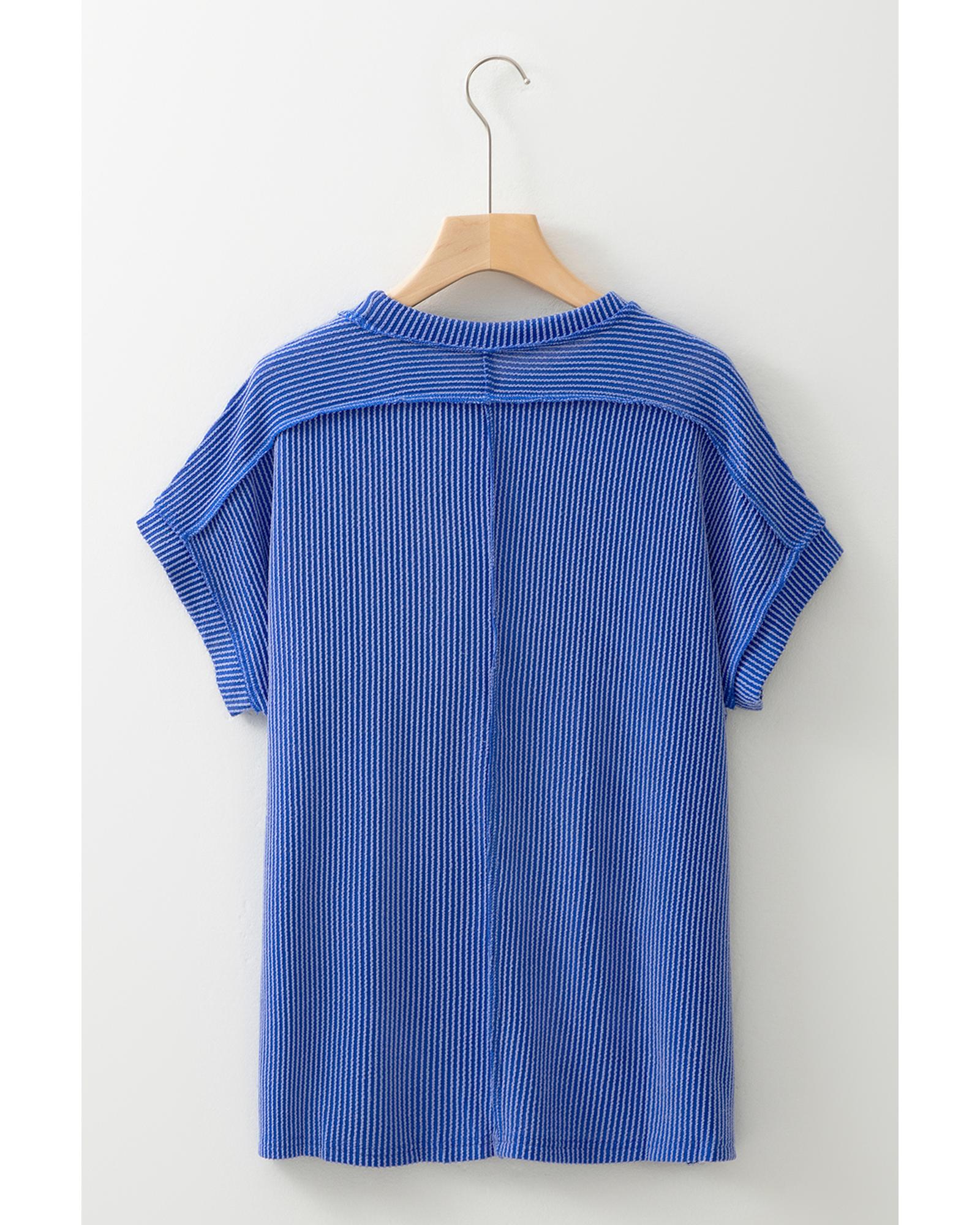 Dark Blue Textured Knit Exposed Stitching T-shirt – XL