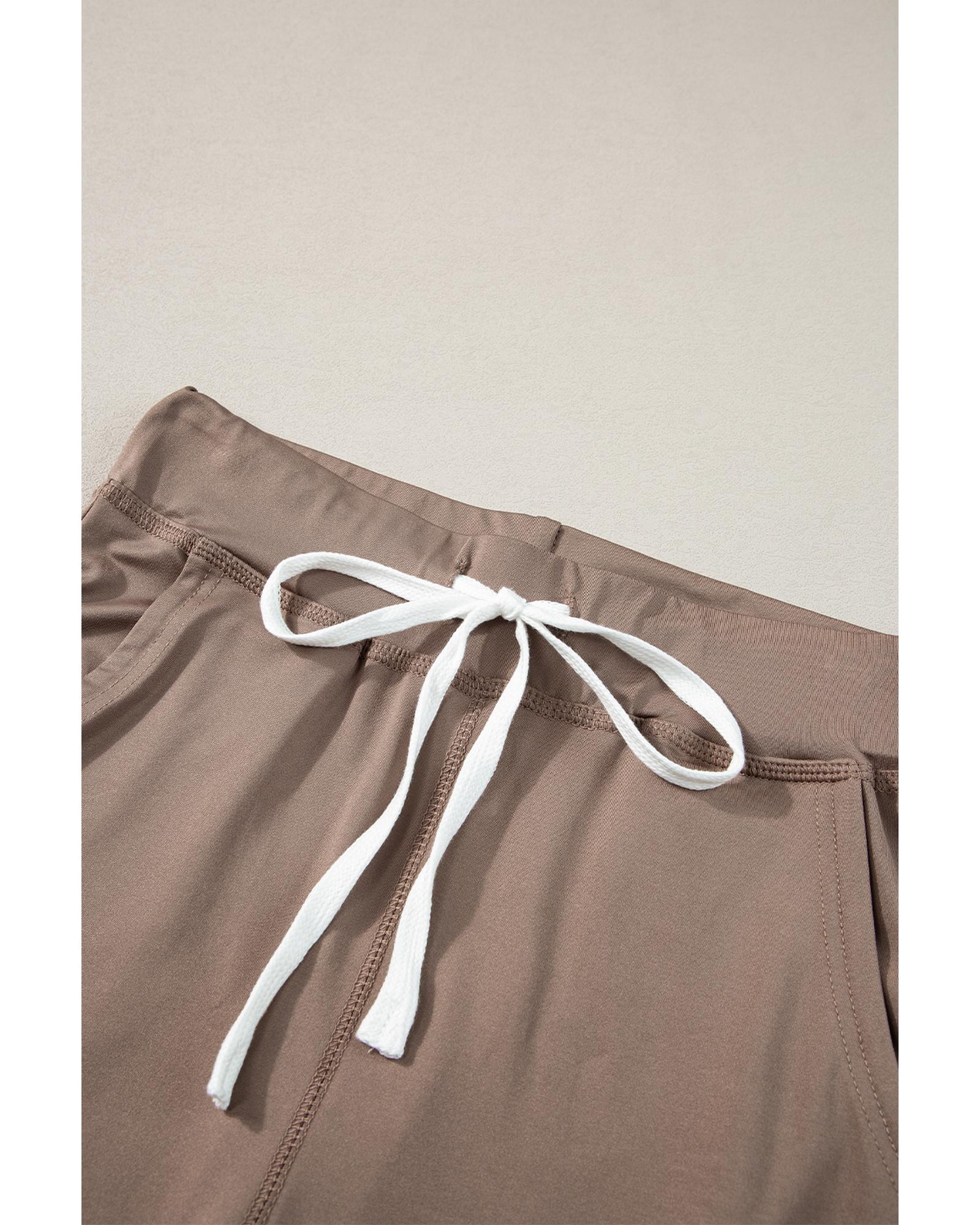 Dark Brown Drawstring Waist Pocketed Joggers – M
