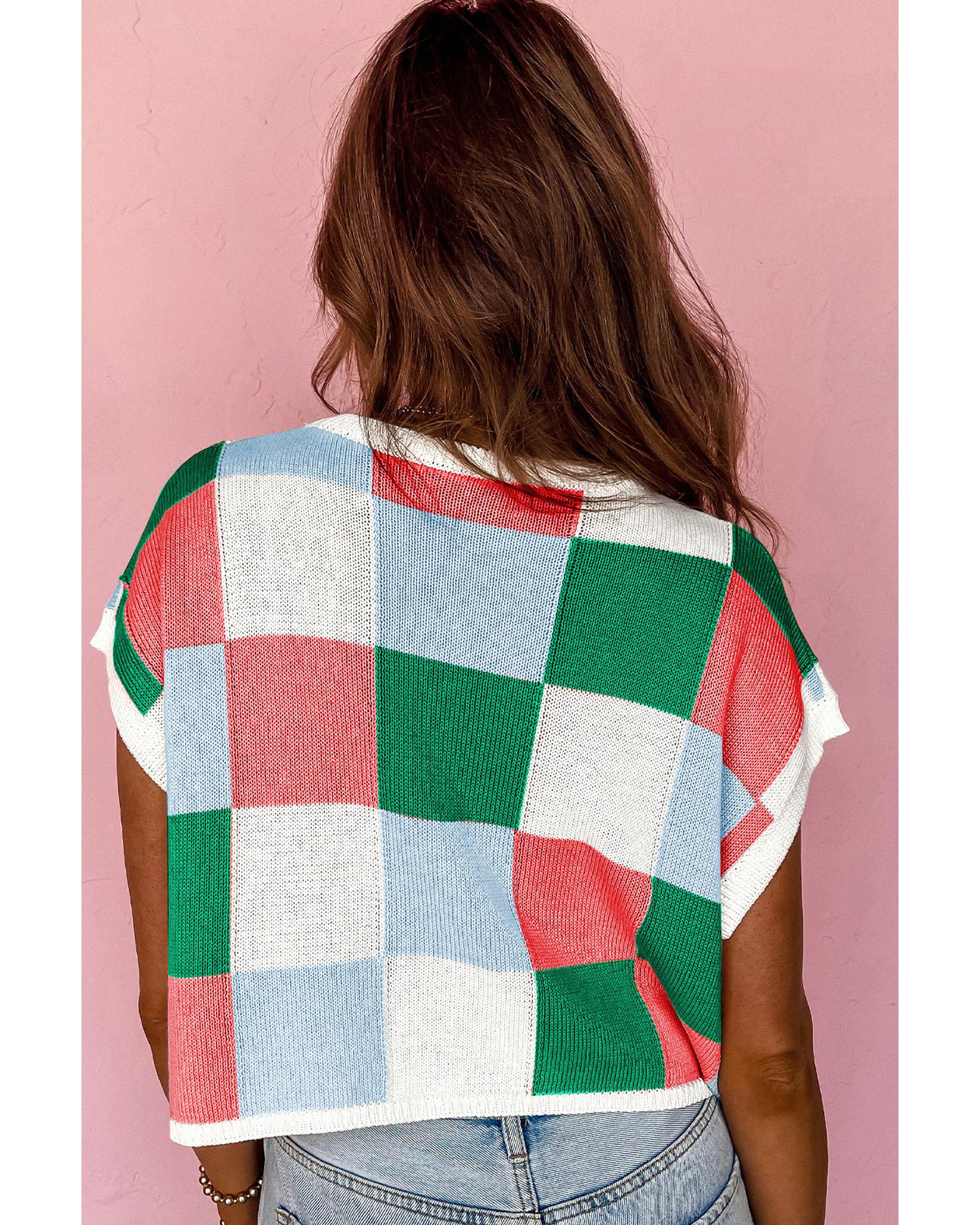 Dark Green Color Block Cap Sleeve Sweater – L