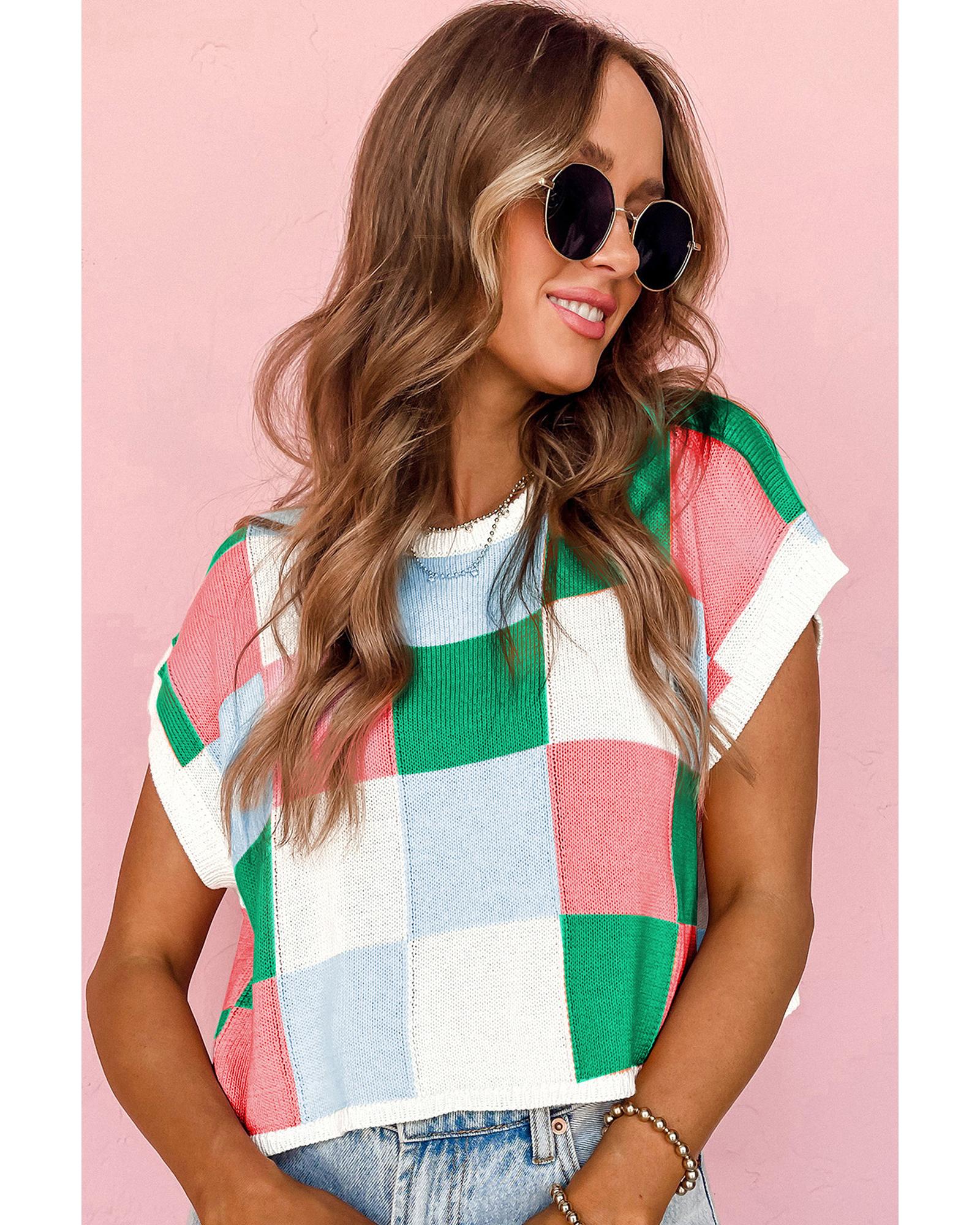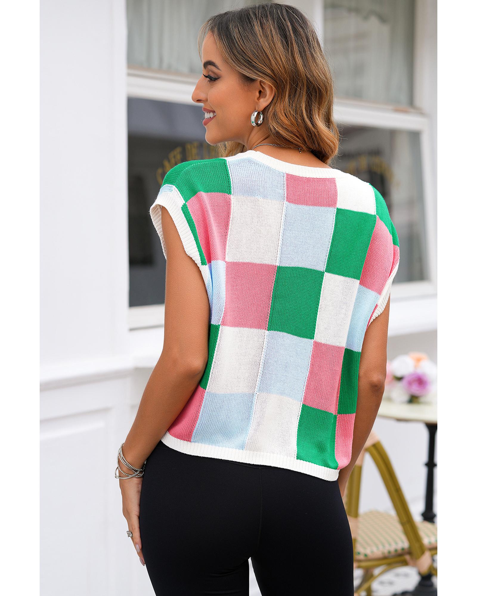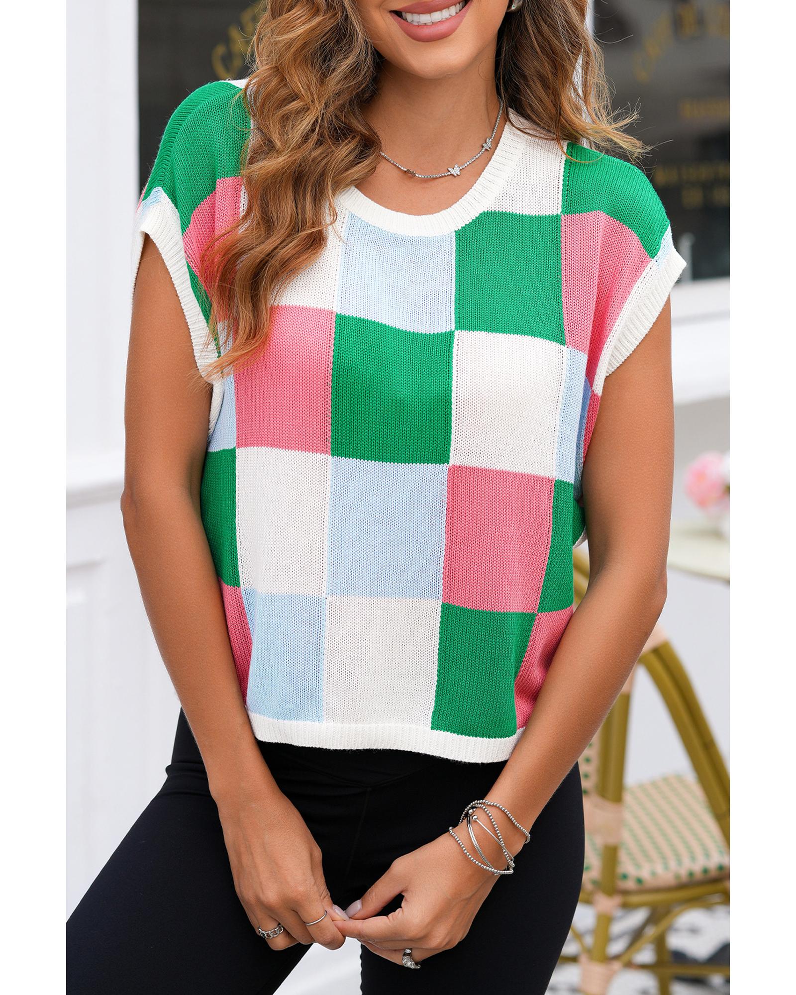 Dark Green Color Block Cap Sleeve Sweater – S