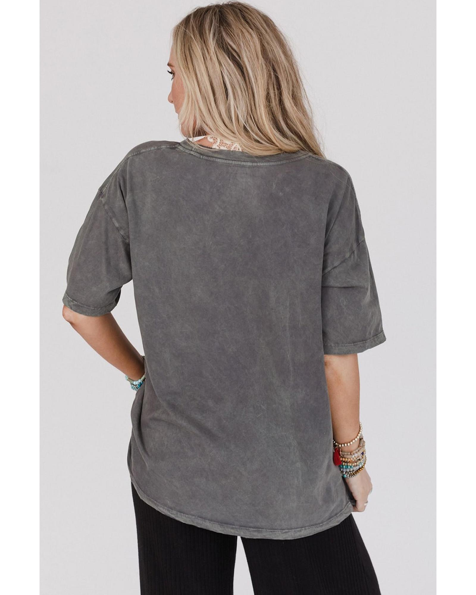 Dark Grey Kindness Butterflies Graphic Mineral Wash Loose Tee – S