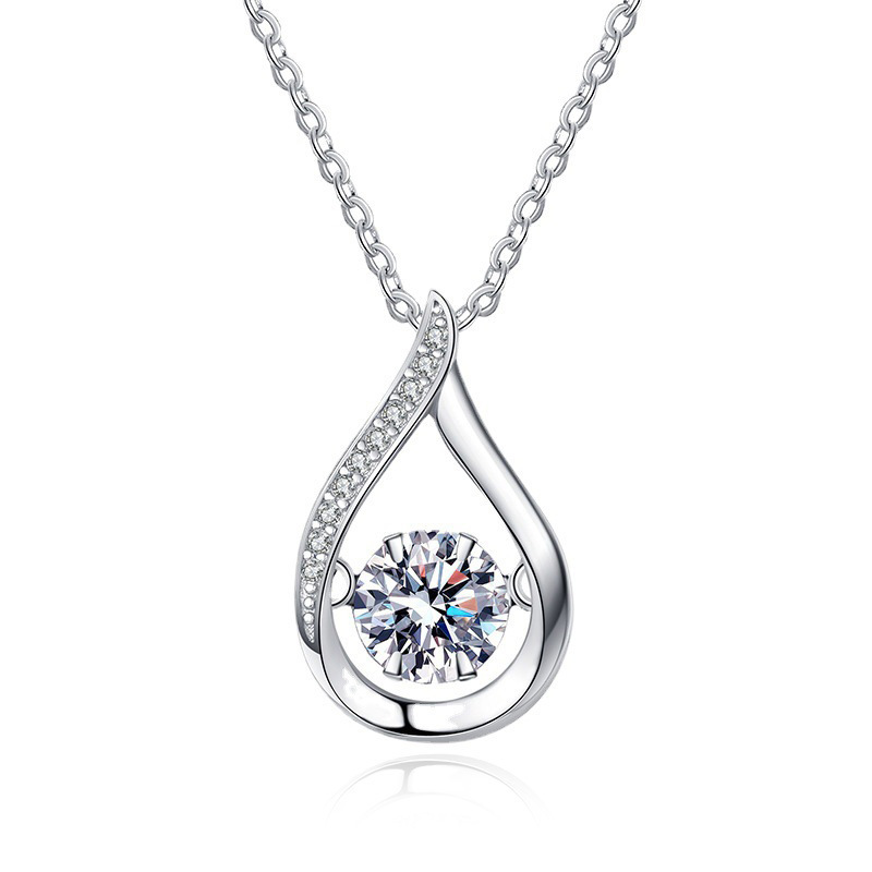 Dazzling Teardrop Dancing Moissanite Necklace S925 Sterling Silver Pendant