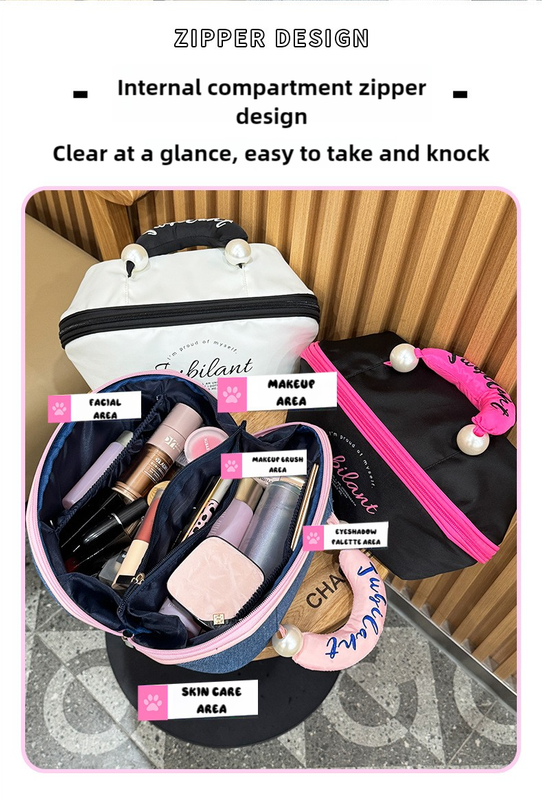 - Large Capacity: Organized compartments for skincare, makeup brushes, palettes, and cosmetics