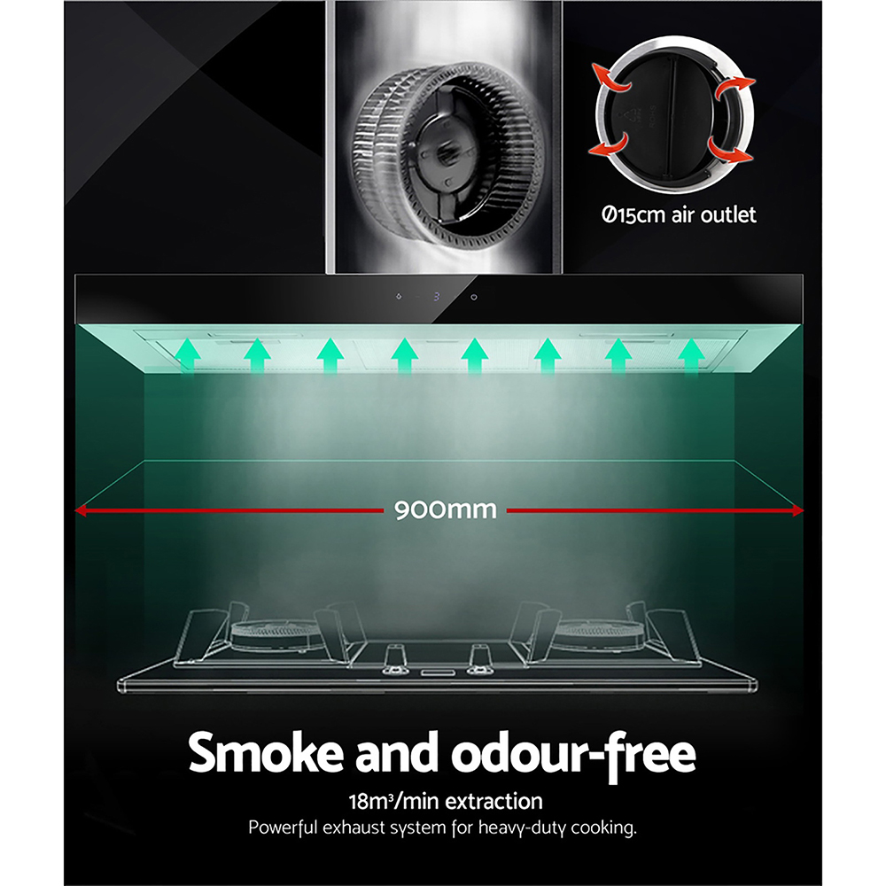 Devanti 900mm Range Hood 90cm Rangehood Glass Stainless Steel