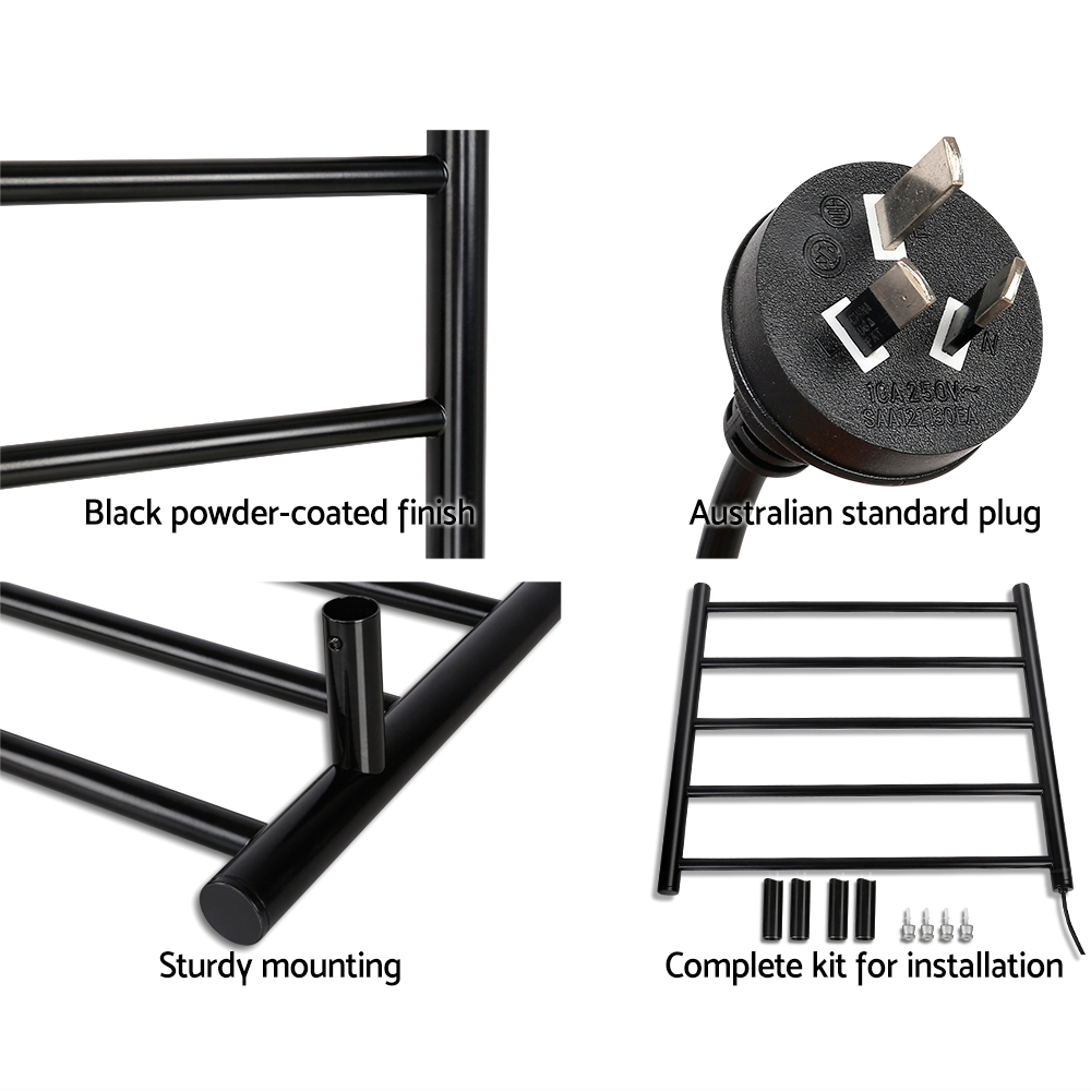 Devanti Electric Heated Towel Rail Rack 5 Bars Wall Mounted Clothes Dry Warmer