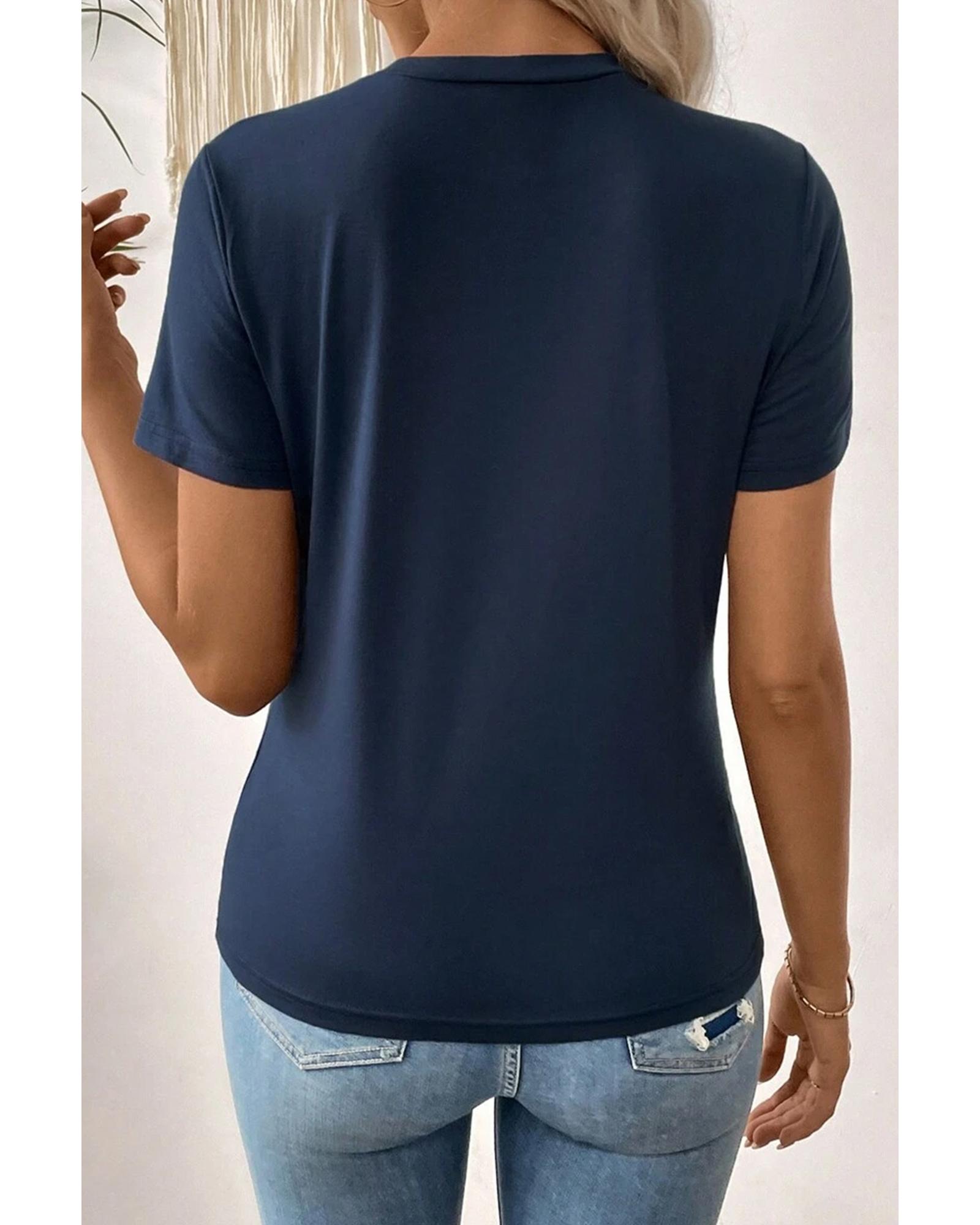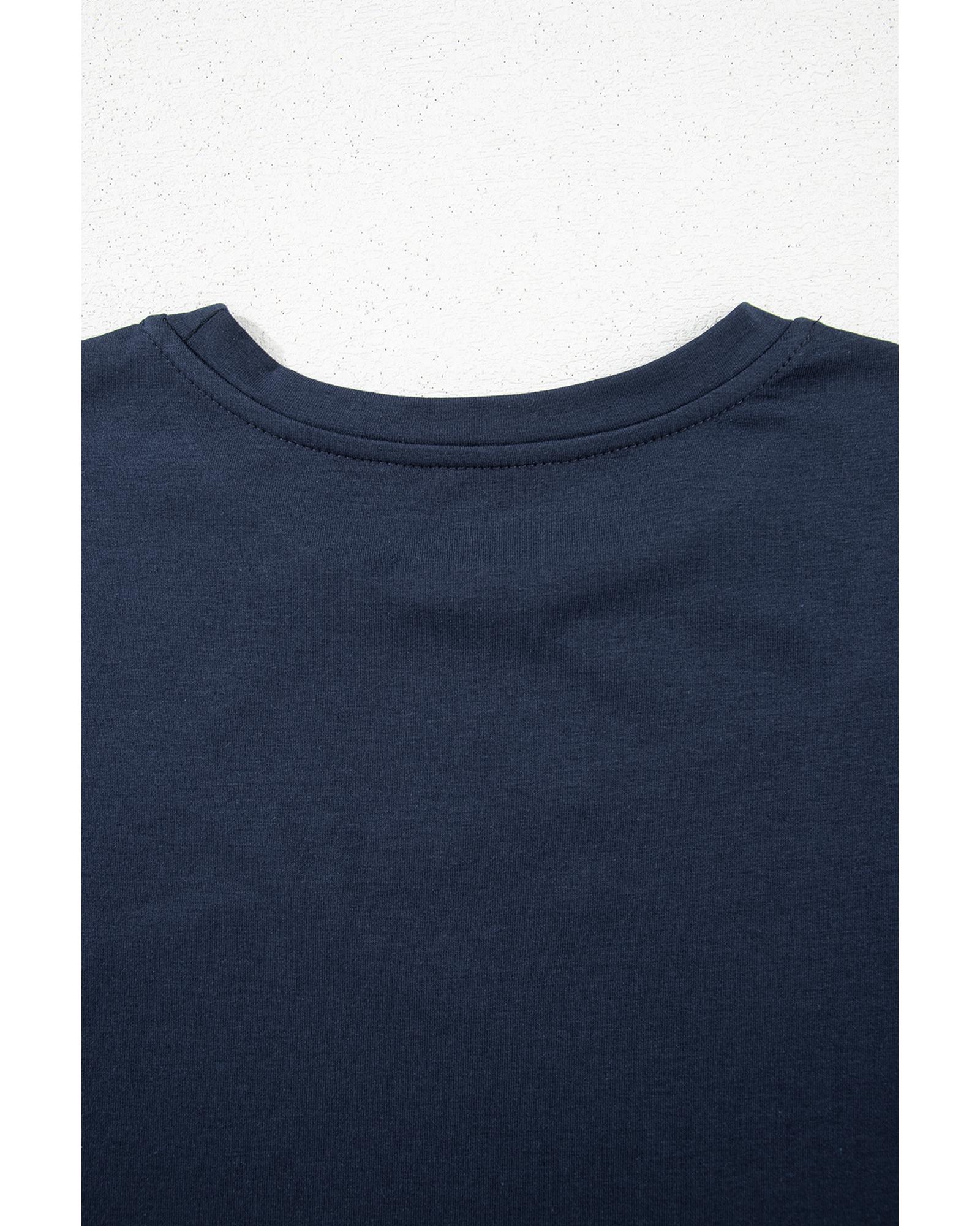 Dirty blue Solid Color Toothpick Stripe Round Neck T Shirt – 2XL