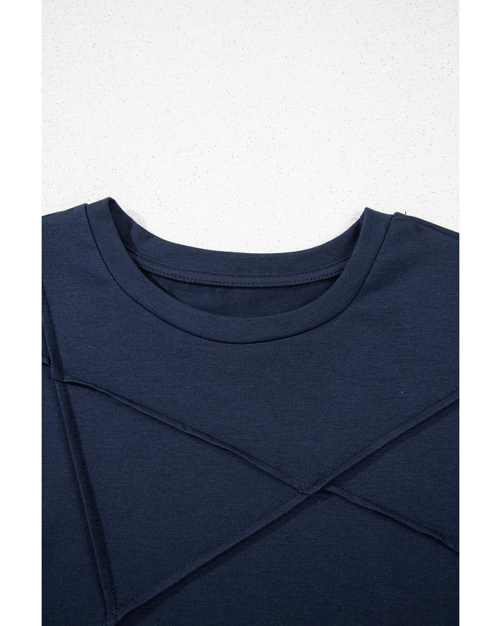 Light Blue Corded Colorblock Drop Shoulder Loose Top - M Original price was: $64.99.Current price is: $34.99.