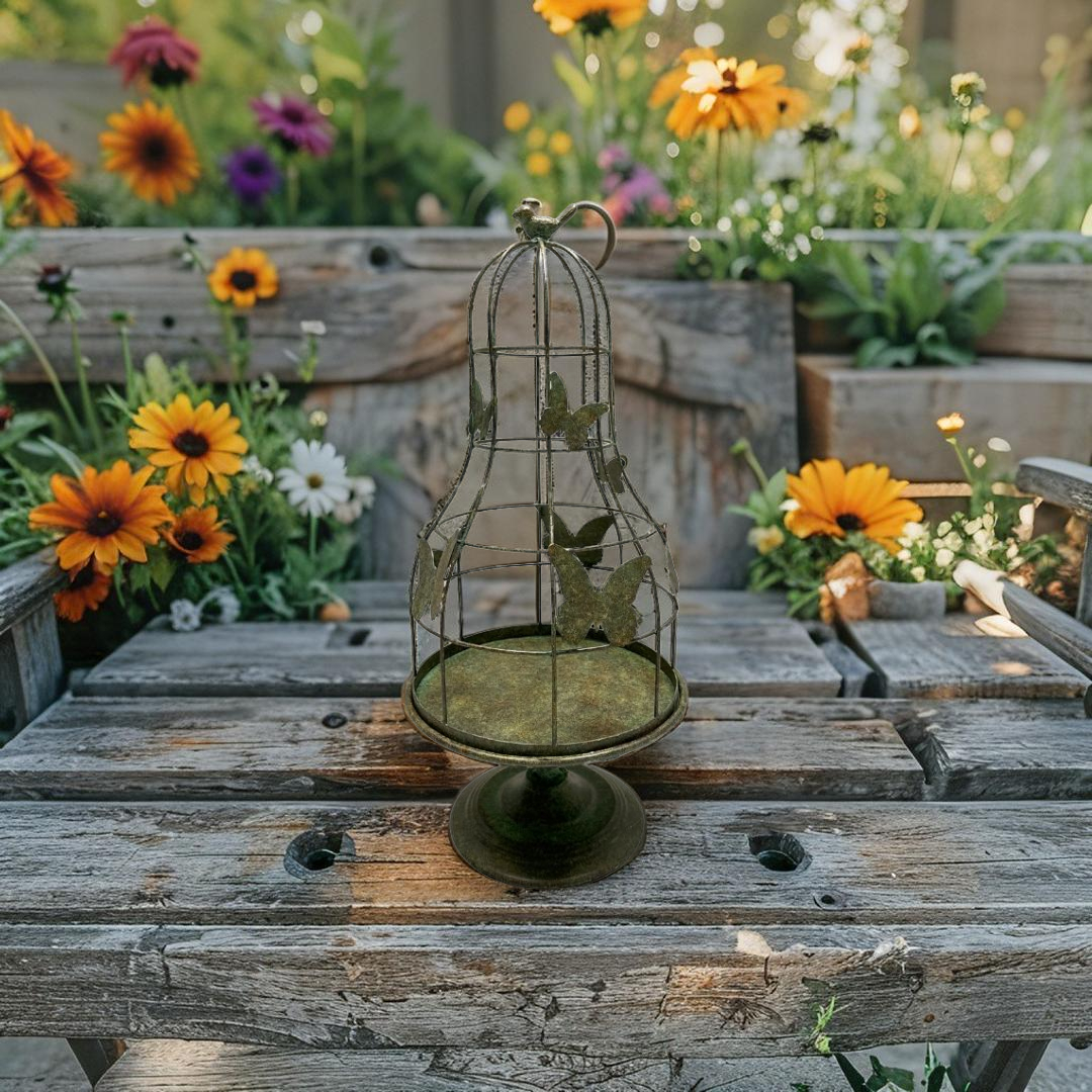 Distressed Green Footed Cloche w Butterflies 67cm