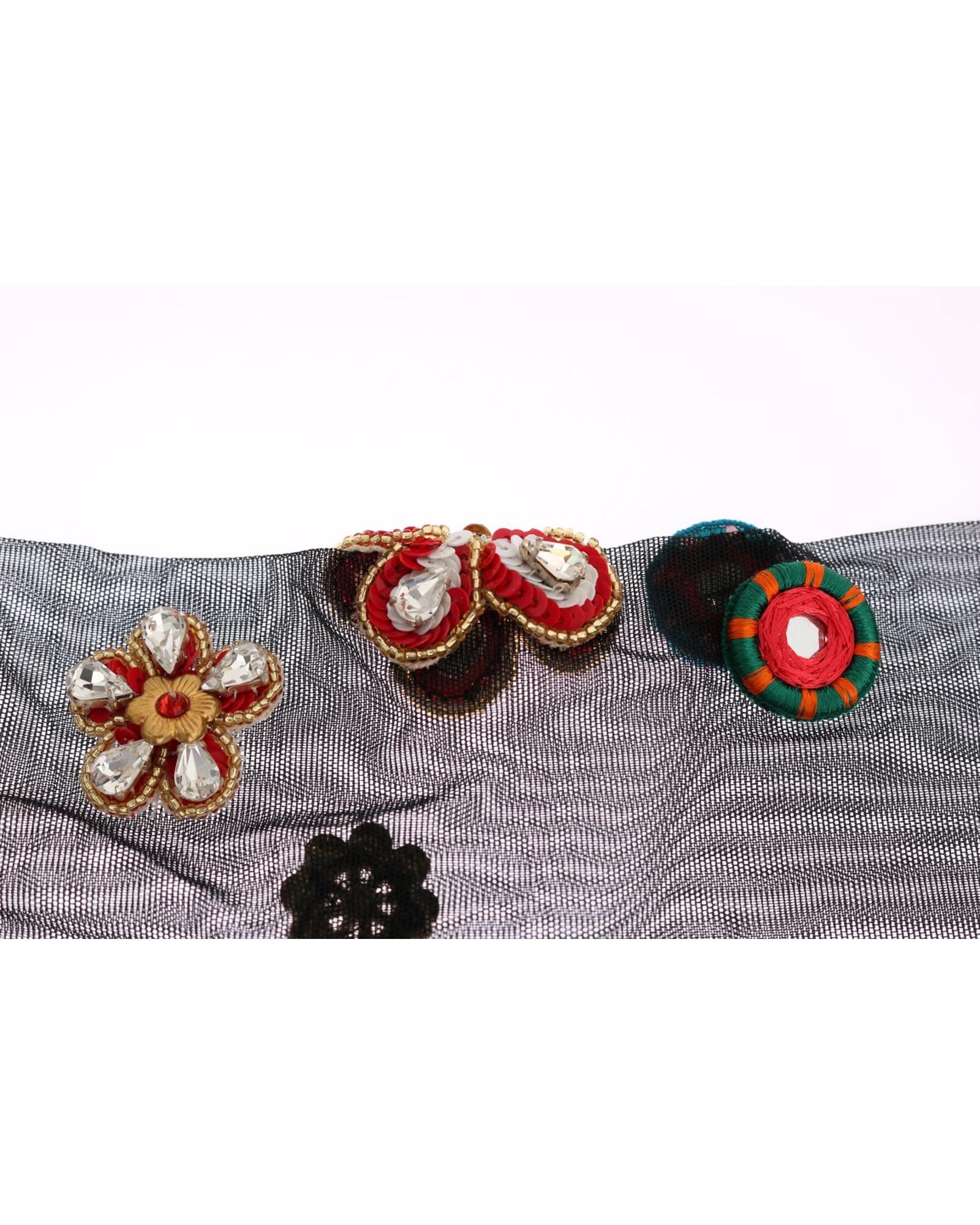 - Handsown multicolor sequined and crystal embellishment