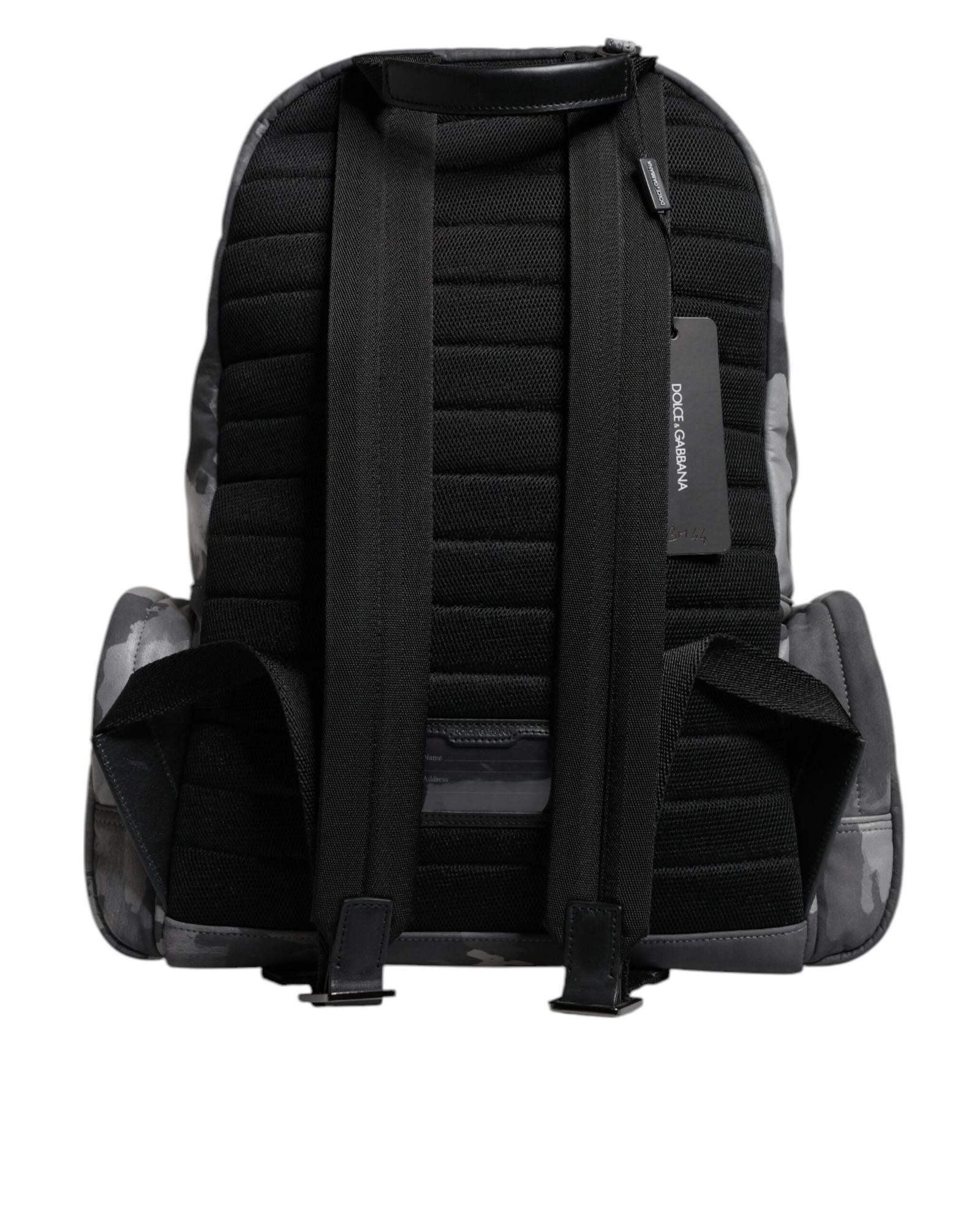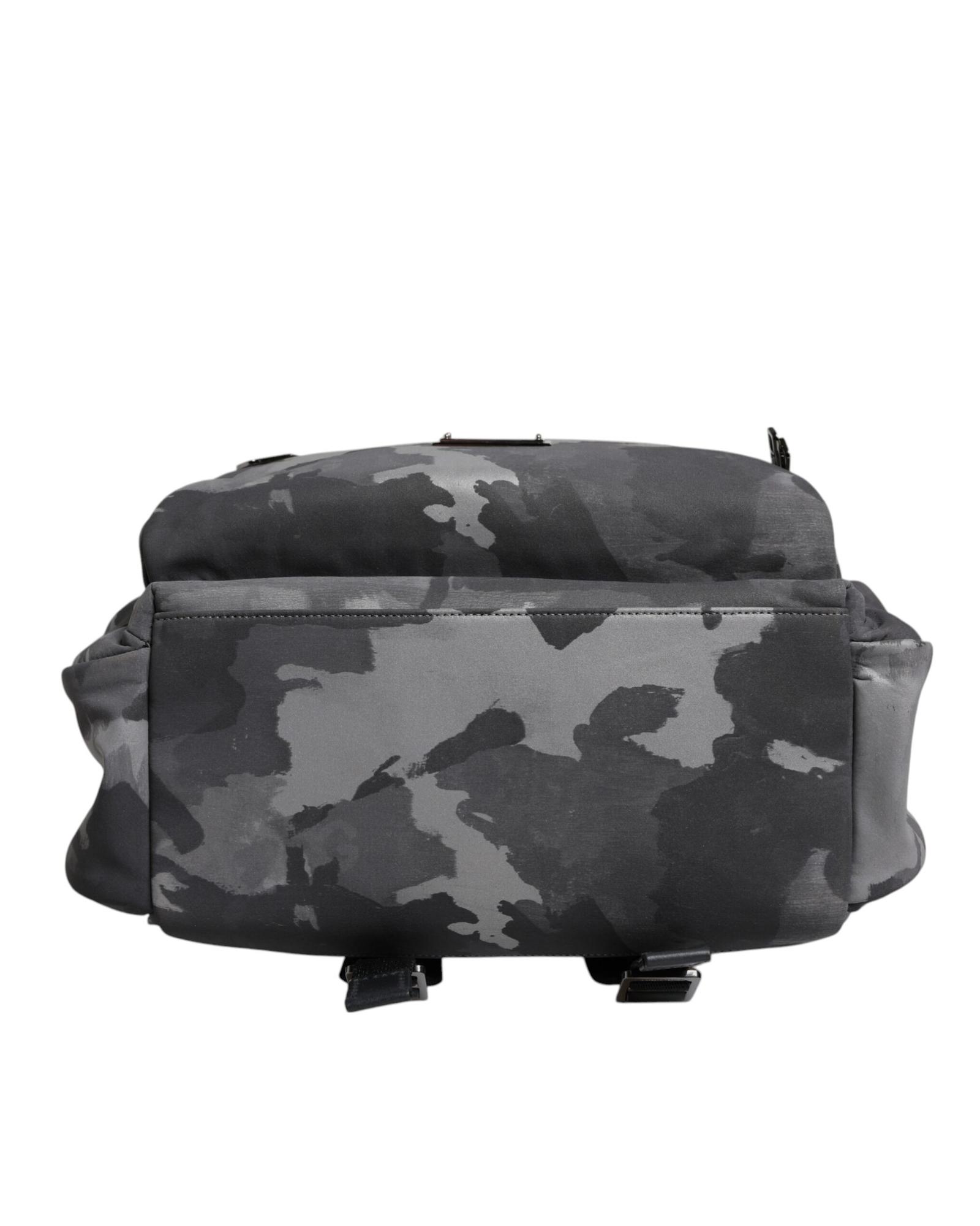Dolce & Gabbana Men’s Gray Cotton Camouflage Logo Plaque Backpack Bag – One Size