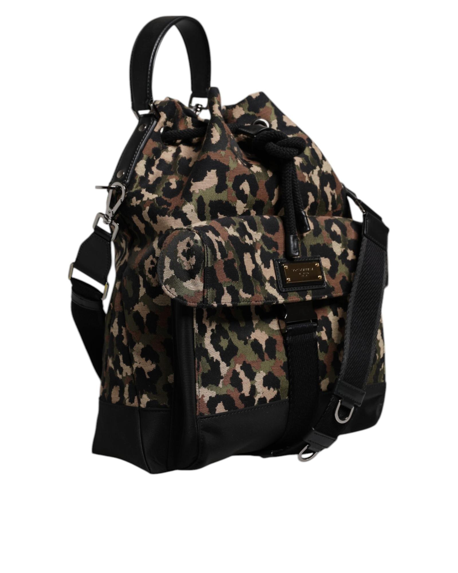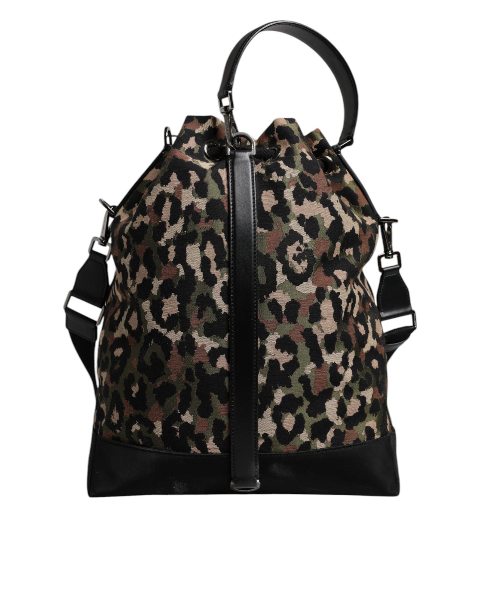 Dolce & Gabbana Men’s Multicolor Leopard Cotton Shoulder Bucket Bag – One Size