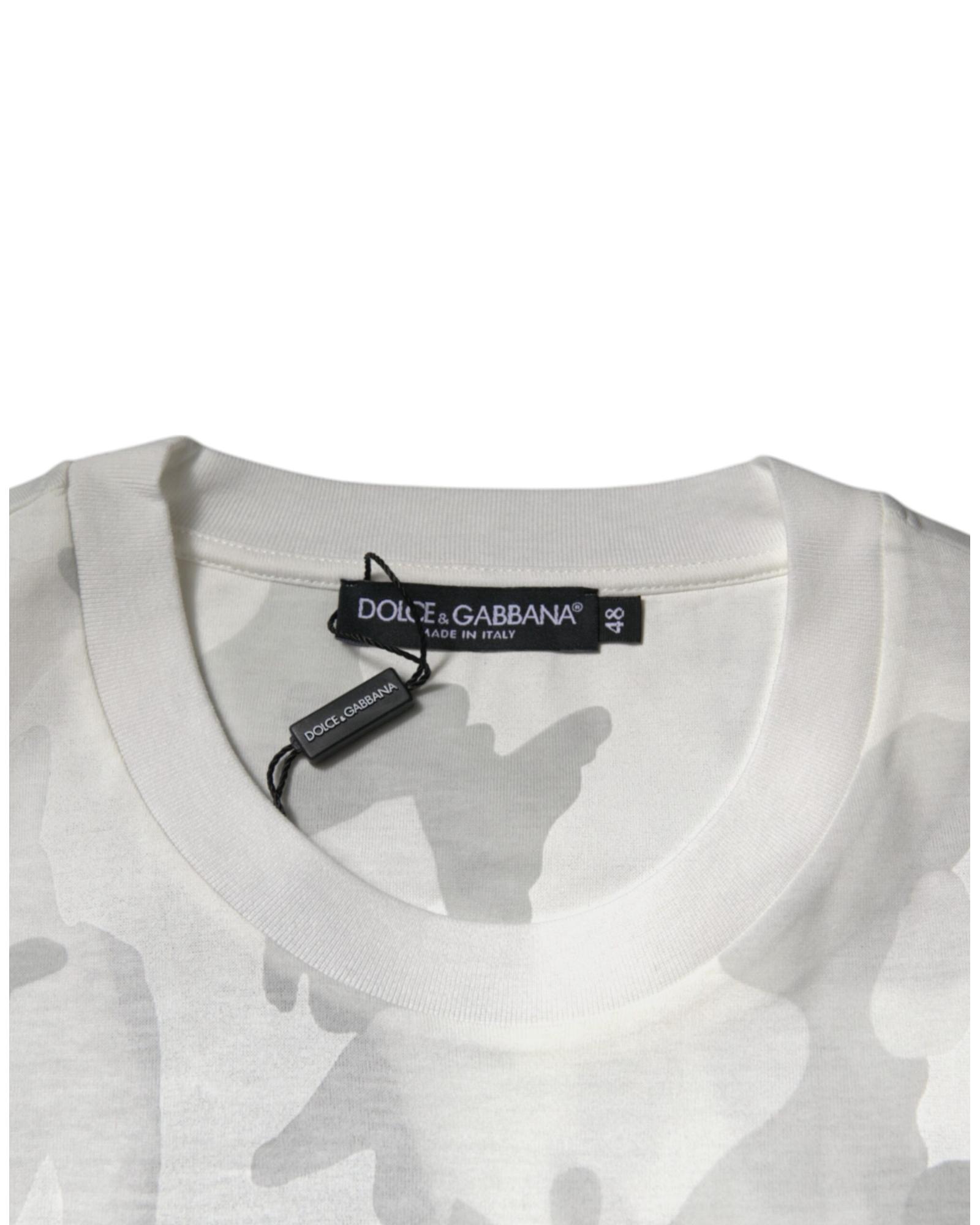 Dolce & Gabbana Men’s White Gray Camouflage Cotton Crew Neck T-shirt – 50 IT