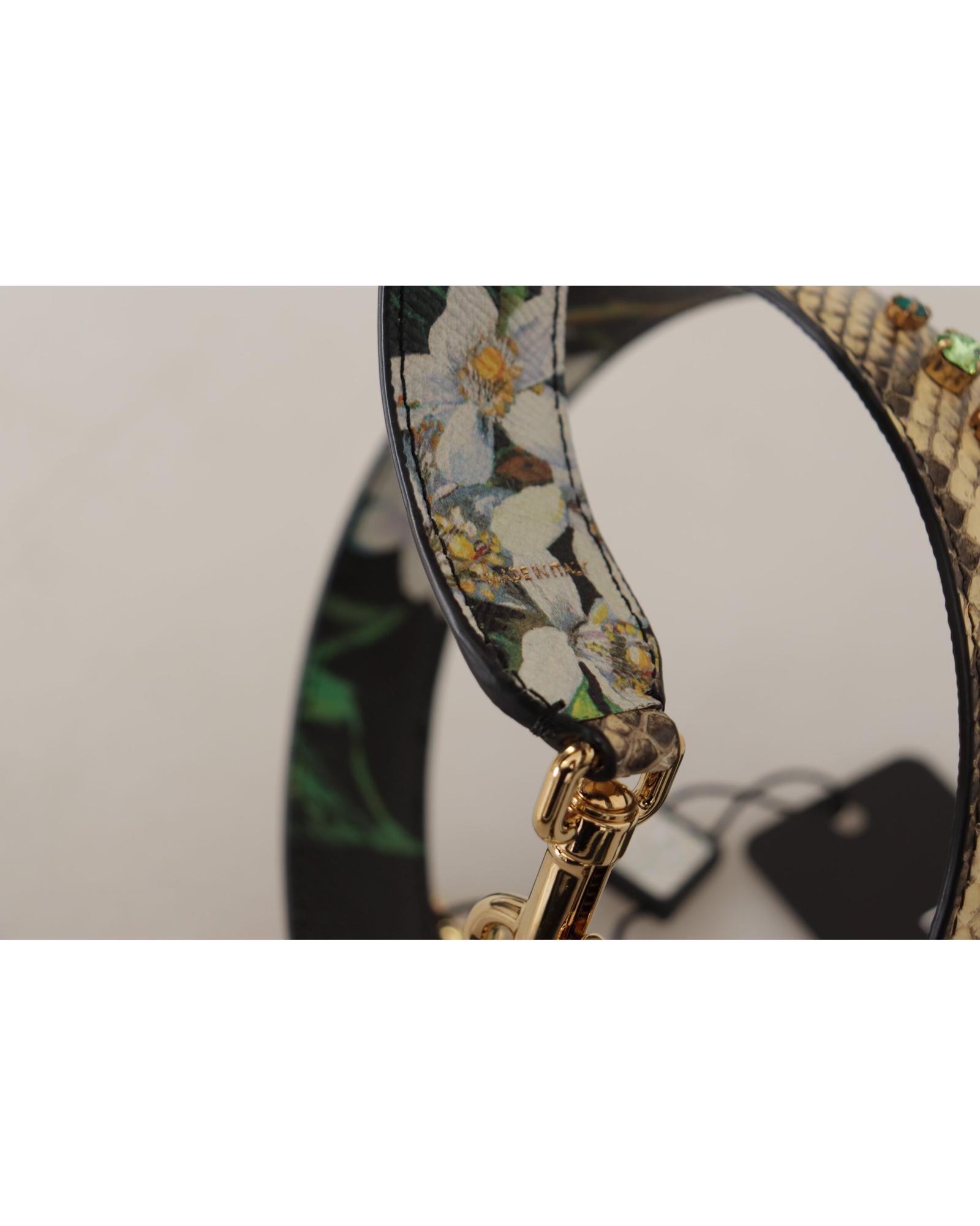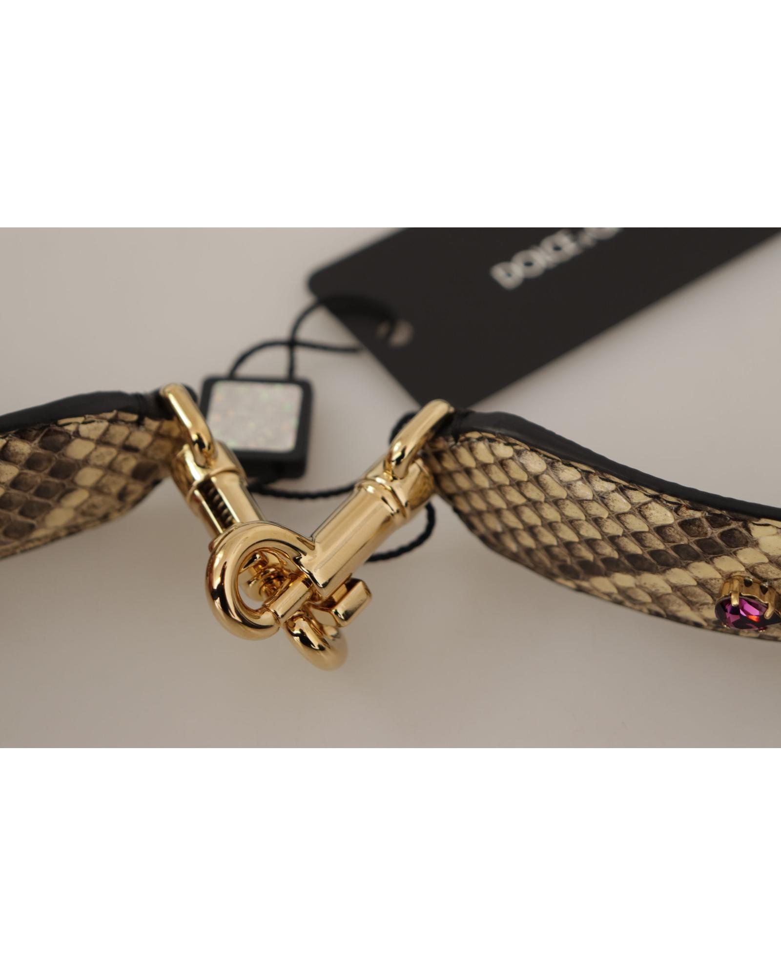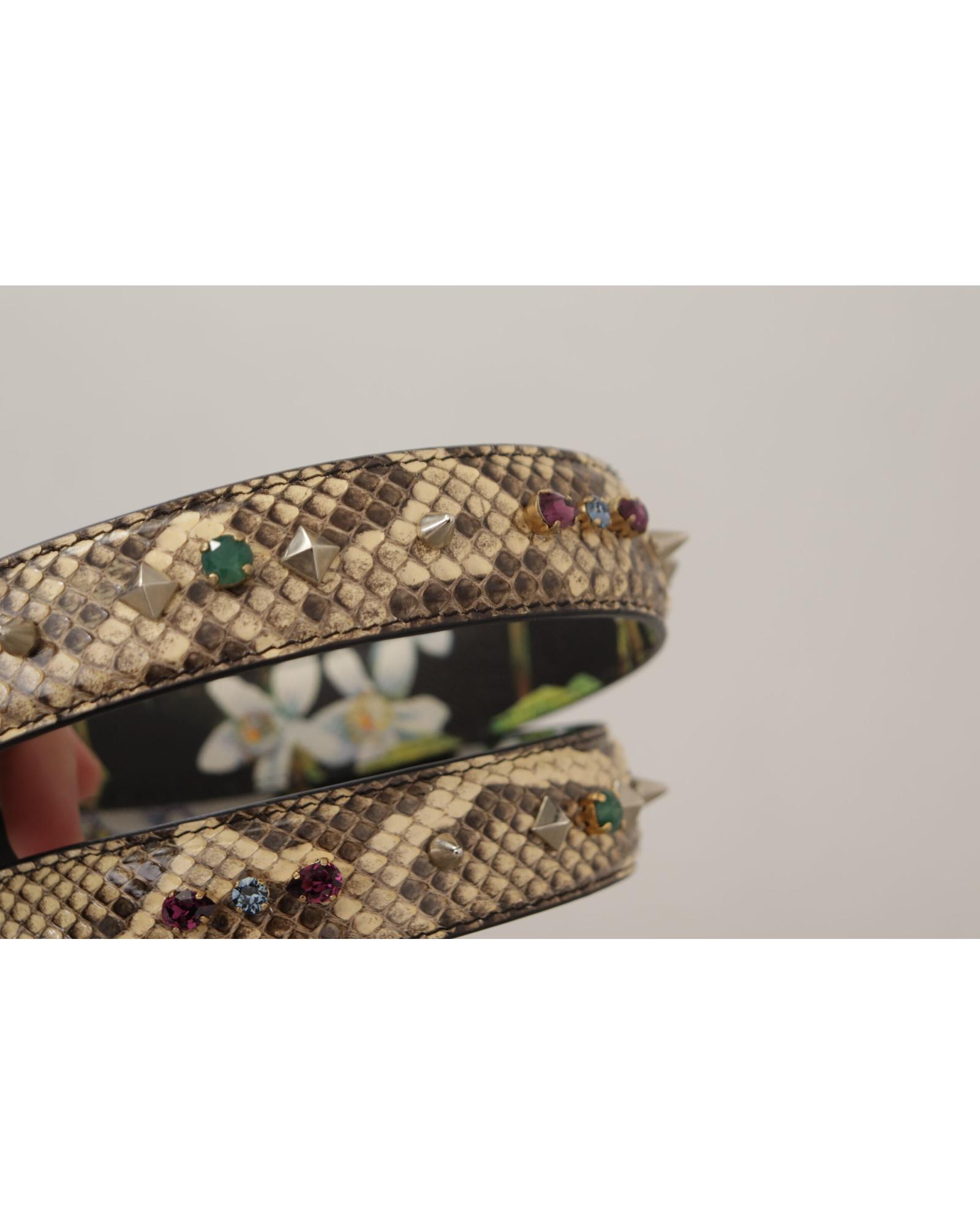 Dolce & Gabbana Women’s Beige Exotic Leather Crystals Reversible Shoulder Strap – One Size