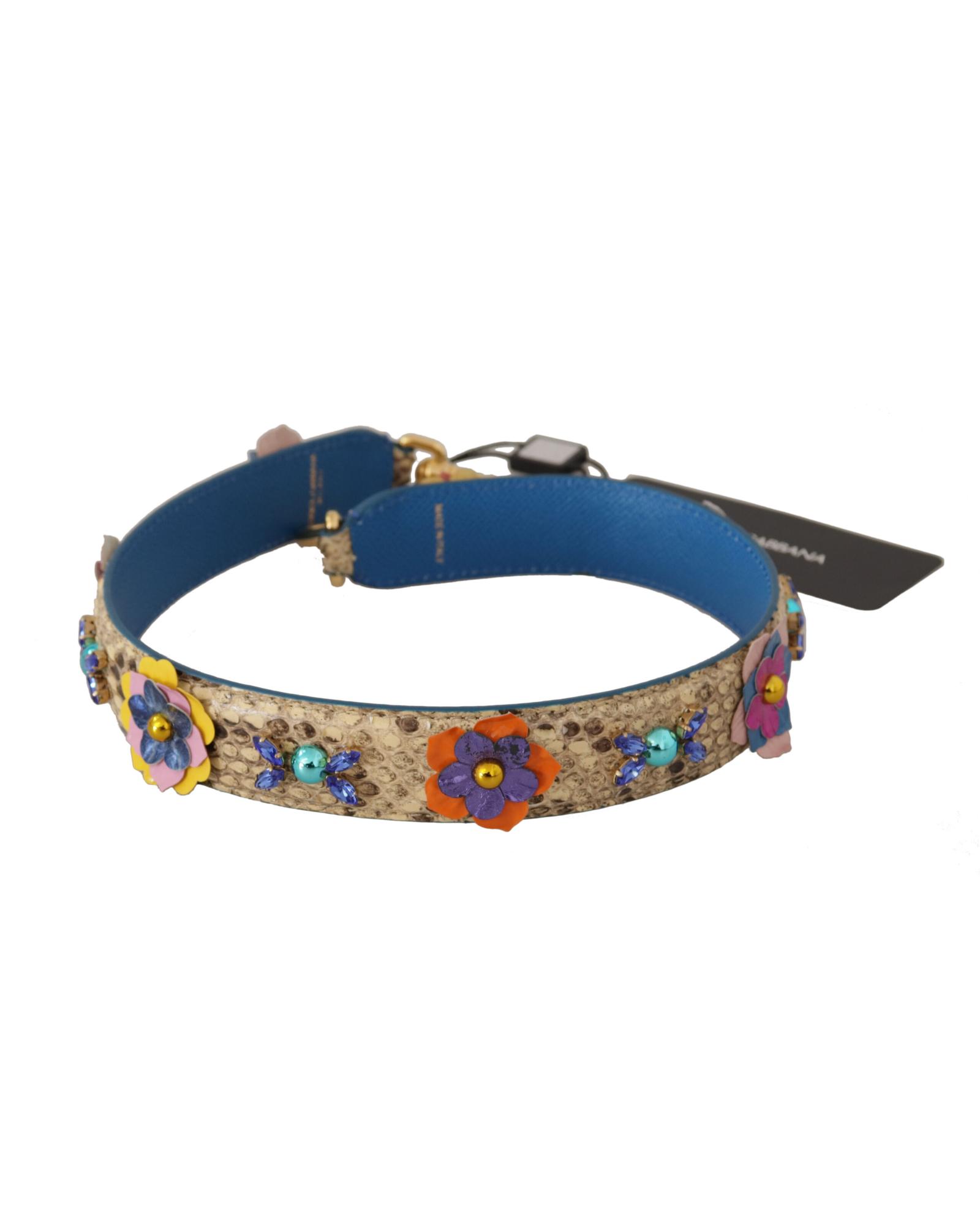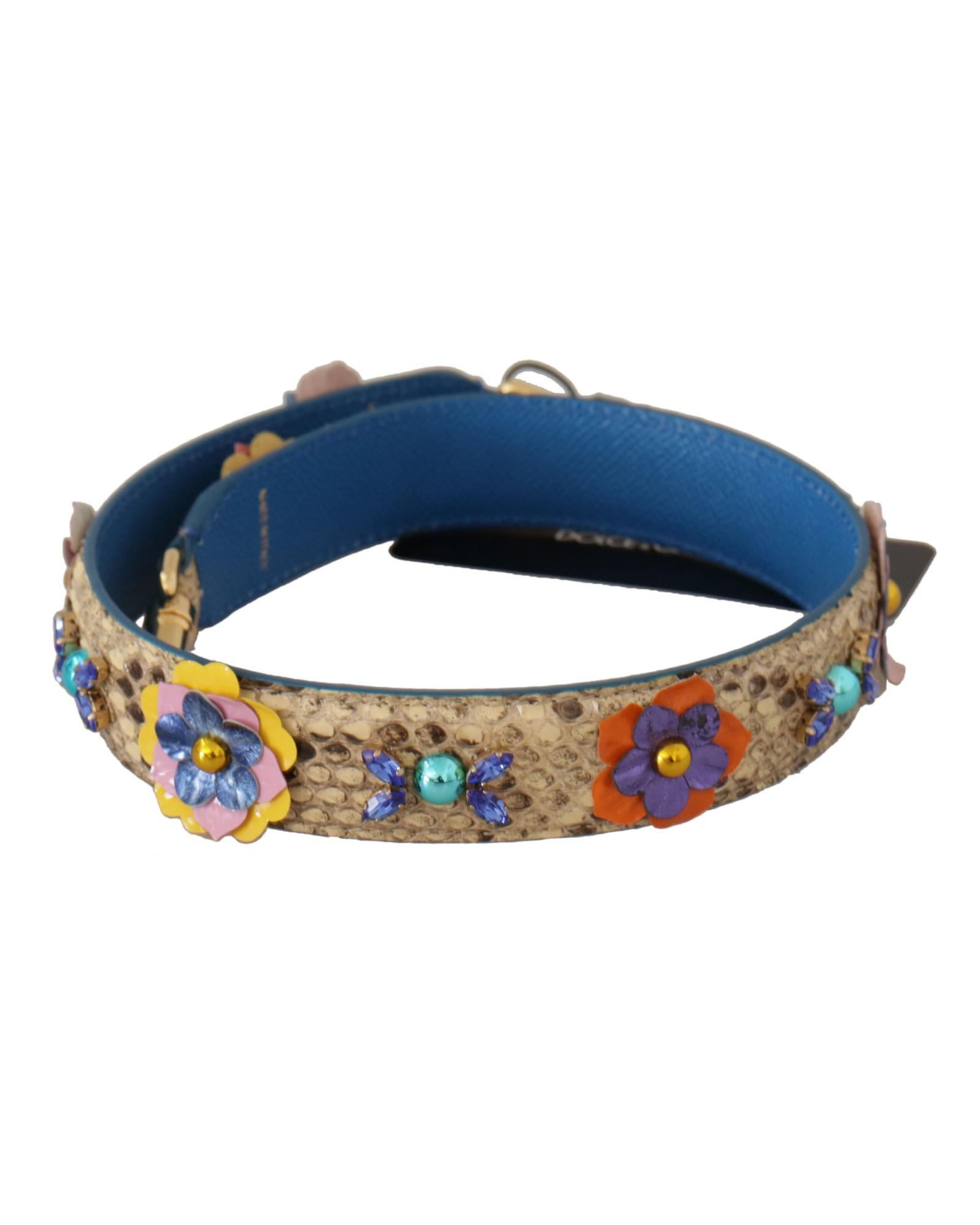 Dolce & Gabbana Women’s Beige Python Leather Floral Studded Shoulder Strap – One Size