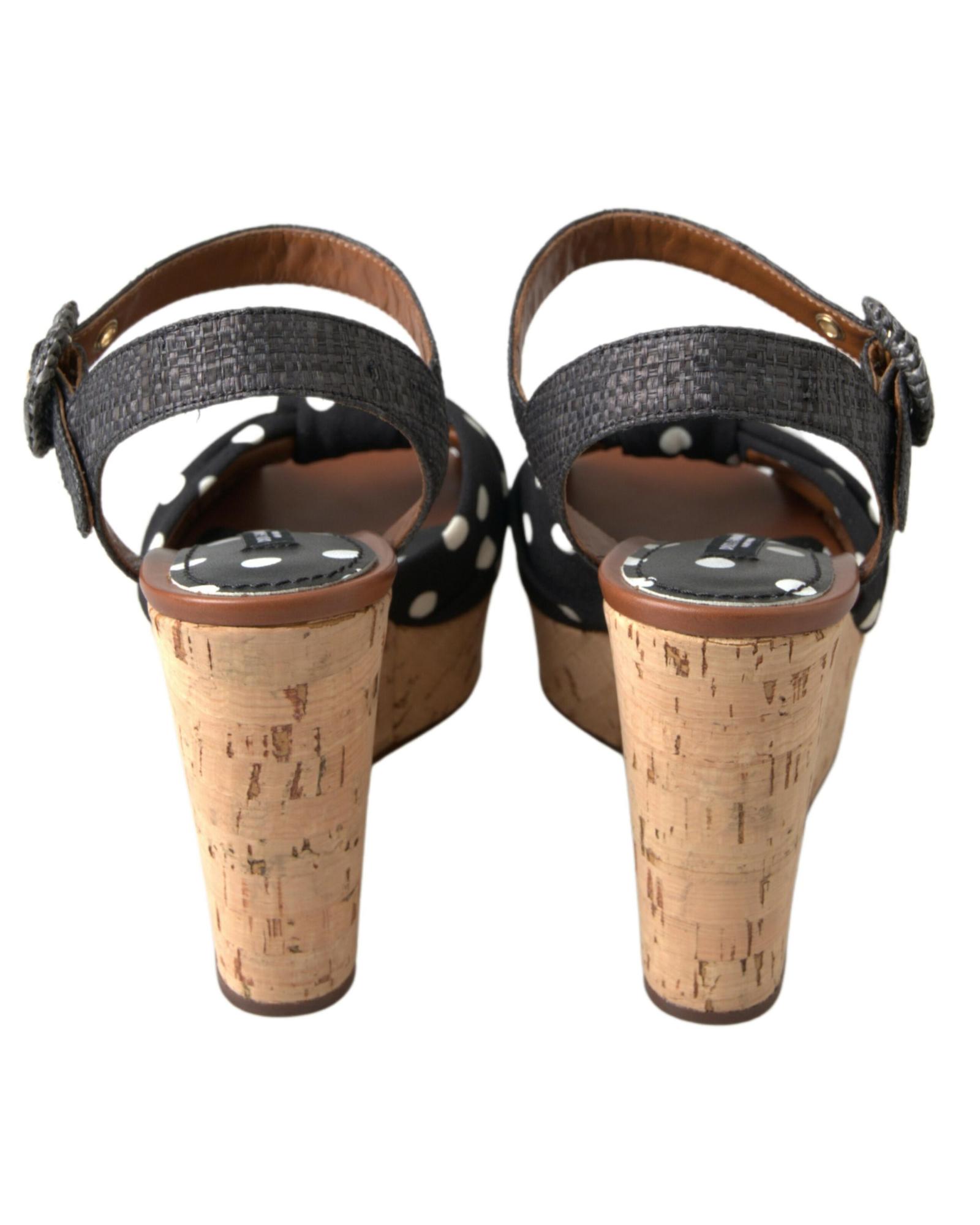 Dolce & Gabbana Women’s Black Wedges Polka Dotted Ankle Strap Shoes Sandals – 37.5 EU