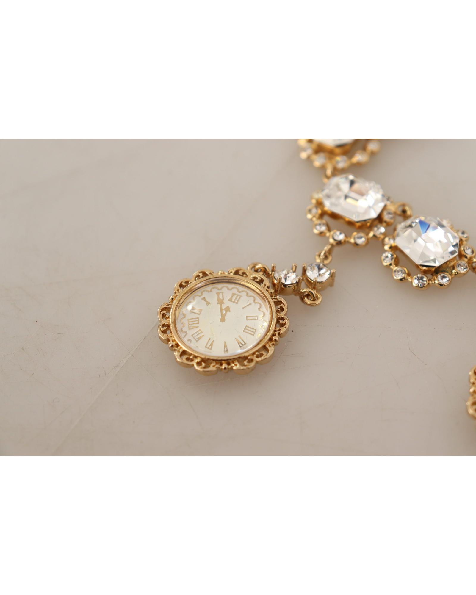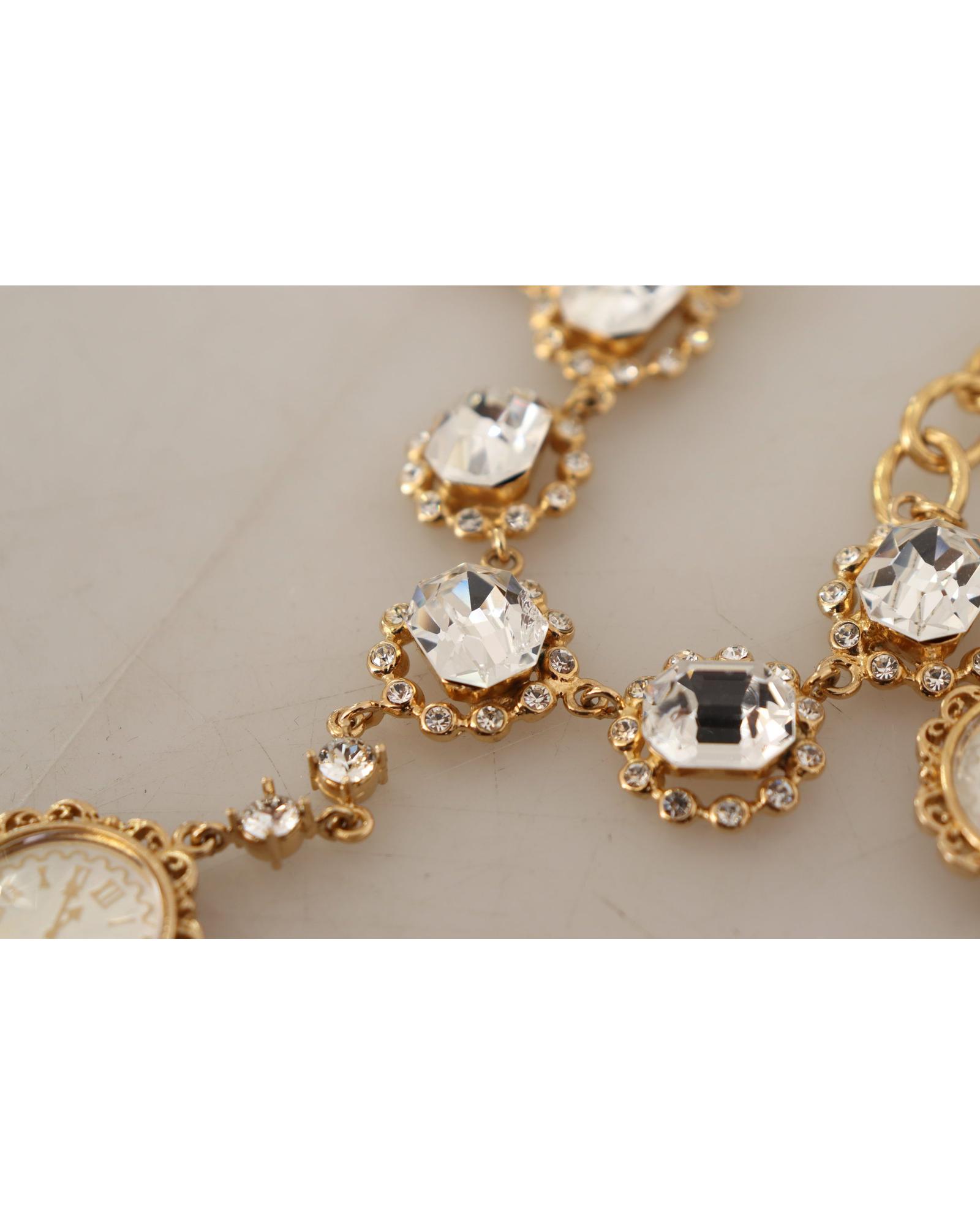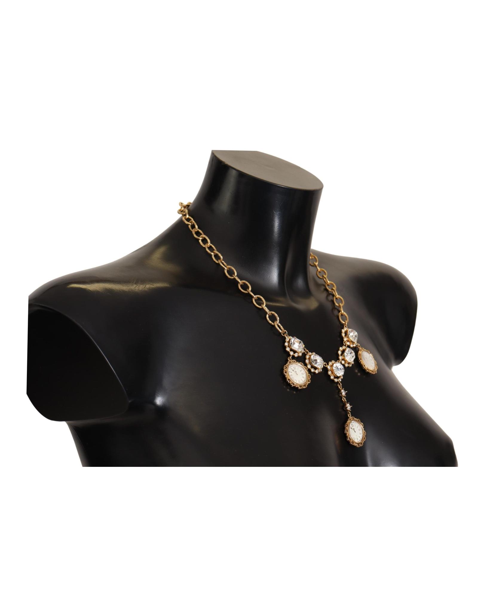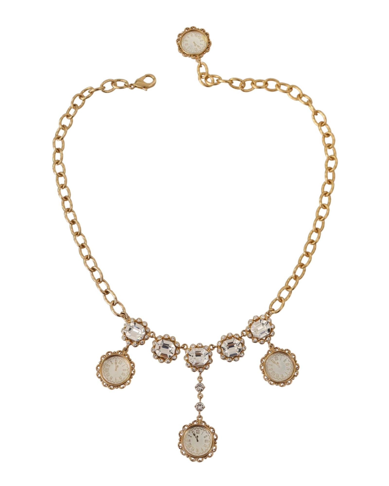 Dolce & Gabbana Women’s Gold Clock Statet Crystal Chain Necklace – One Size