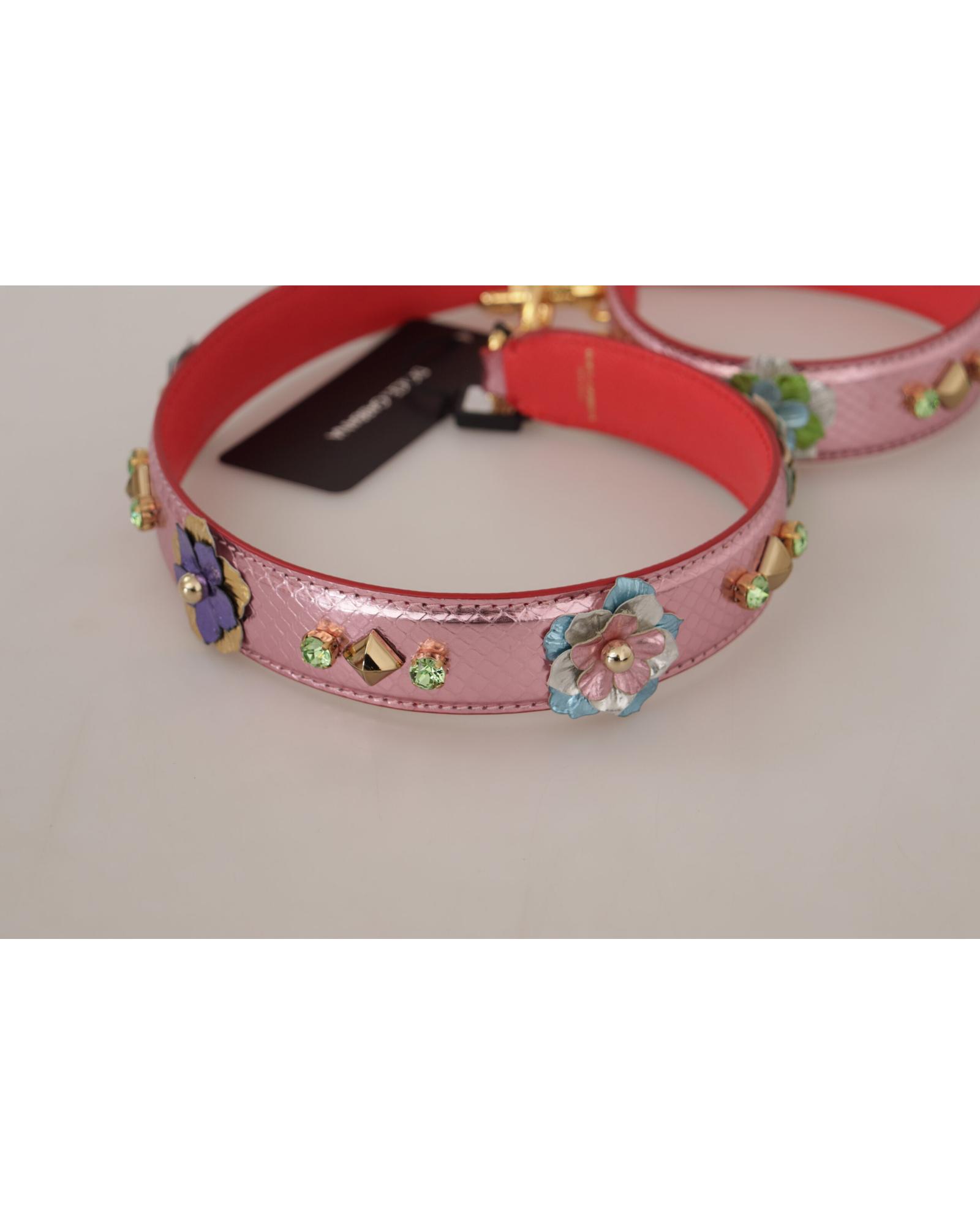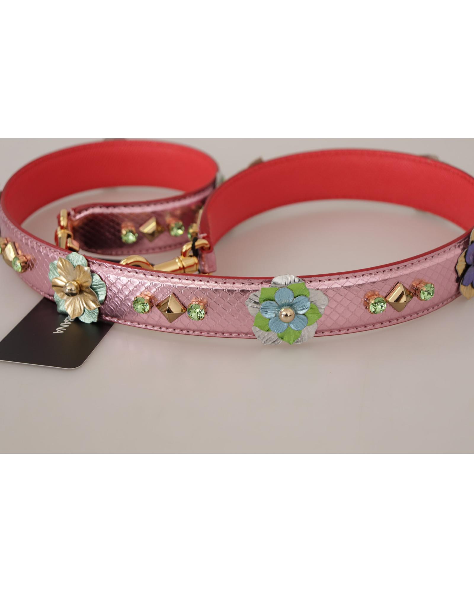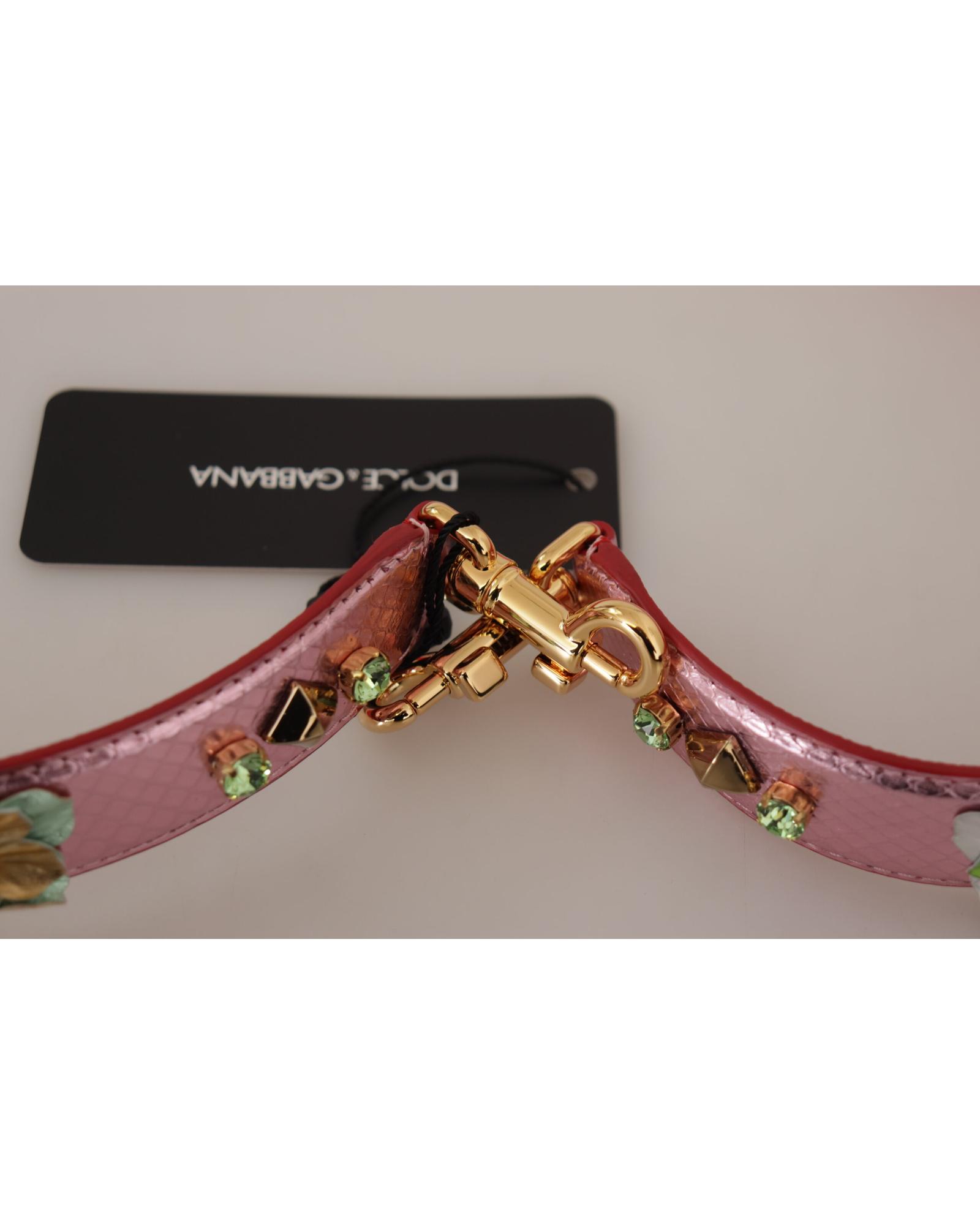 Dolce & Gabbana Women’s Metallic Pink Leather Studded Shoulder Strap – One Size