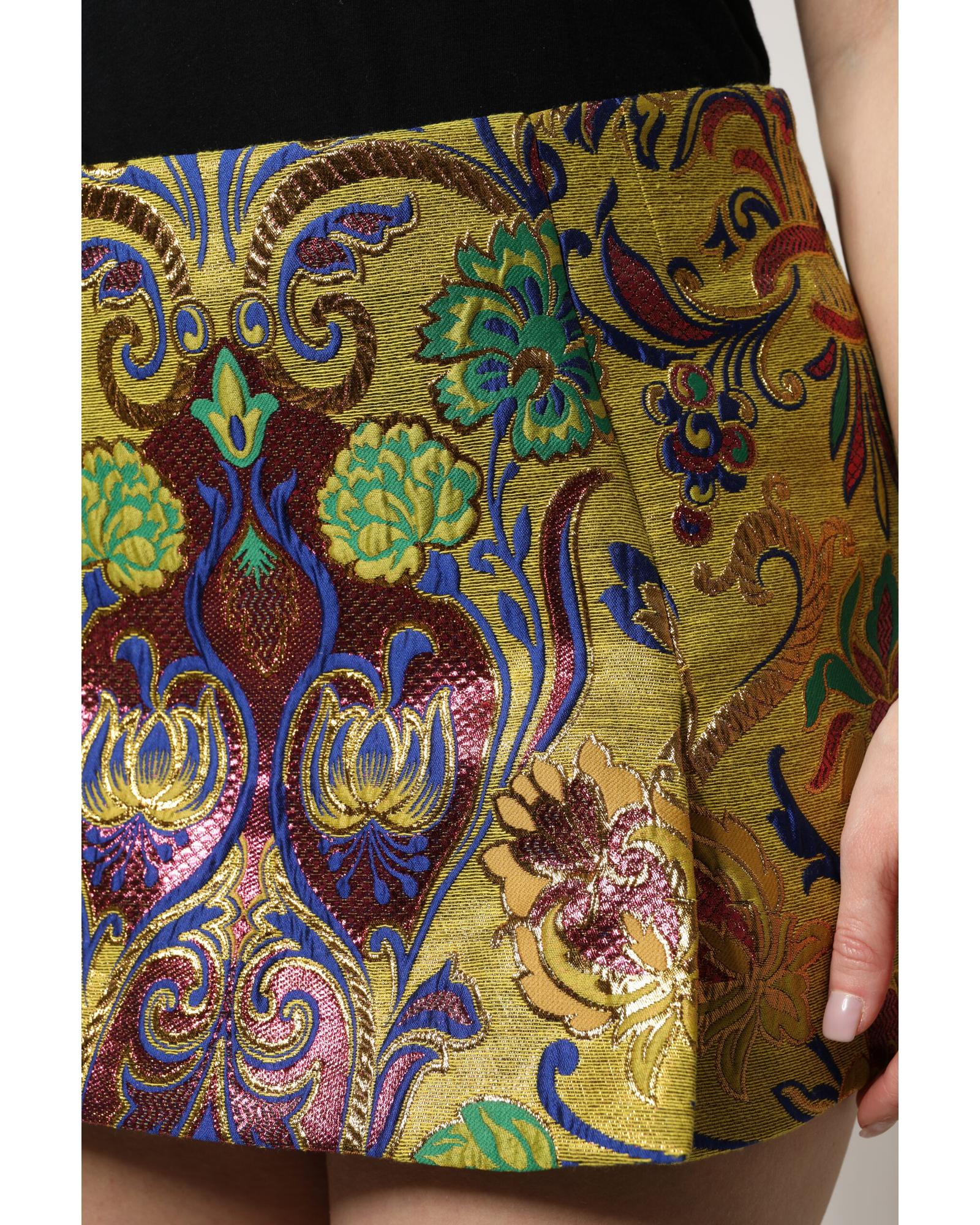 Dolce & Gabbana Women's Multicolor Floral Jacquard Mid Waist Mini Skirt - 42 IT