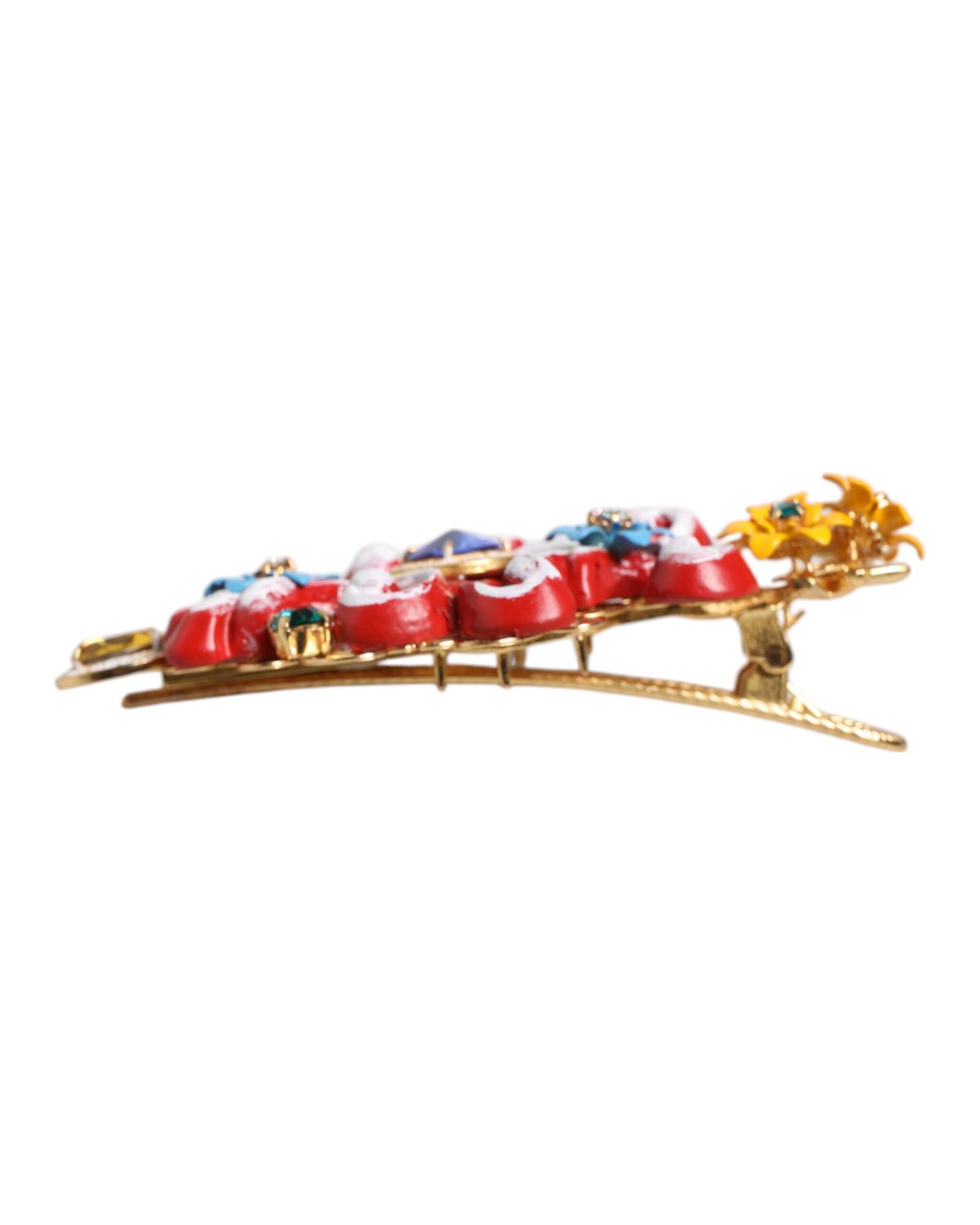 Dolce & Gabbana Women’s Multicolor Spring CARRETTO Gold Brass Crystal Hair Clip – One Size