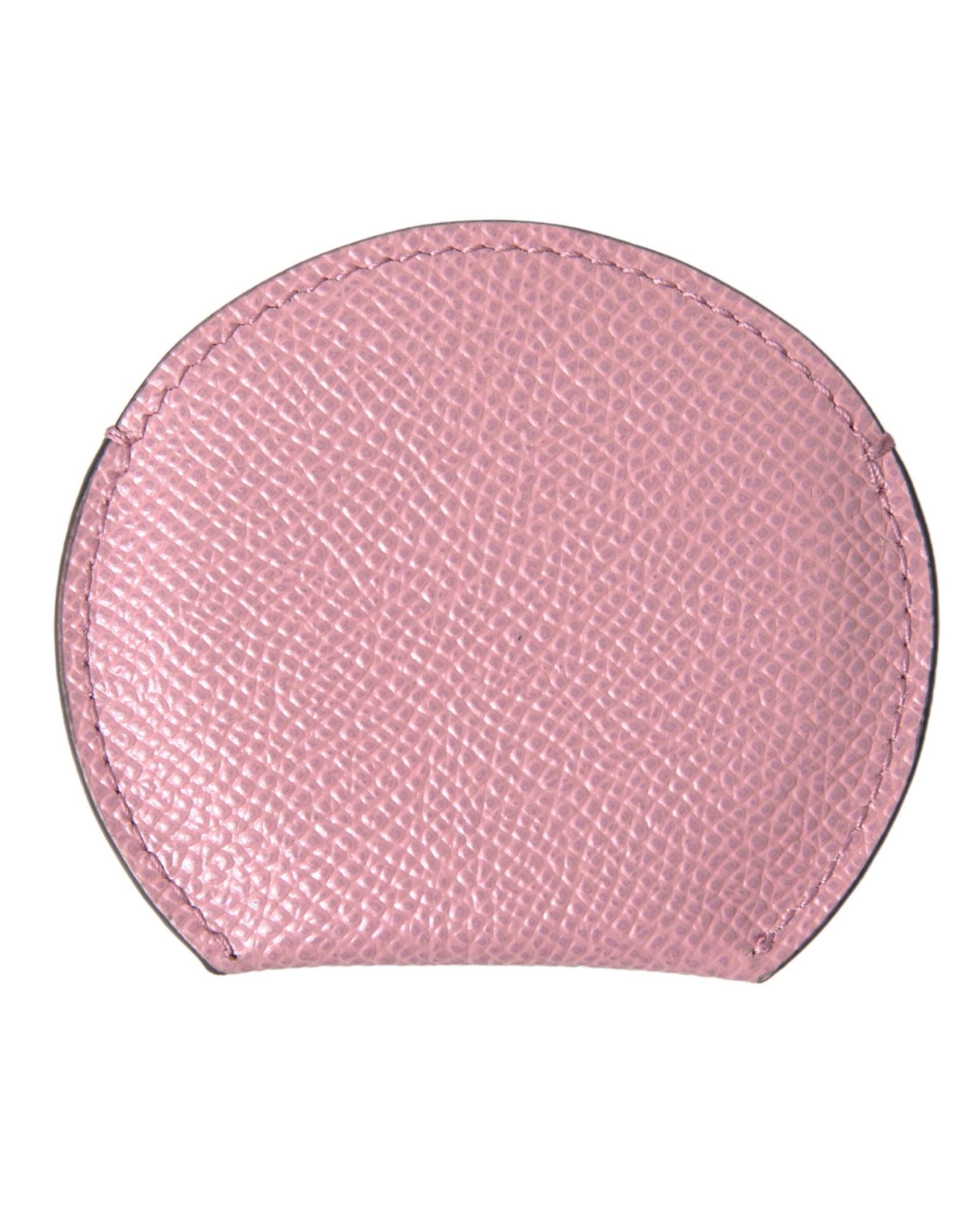 Dolce & Gabbana Women’s Pink Calfskin Leather Round Logo Print Hand Mirror Holder – One Size
