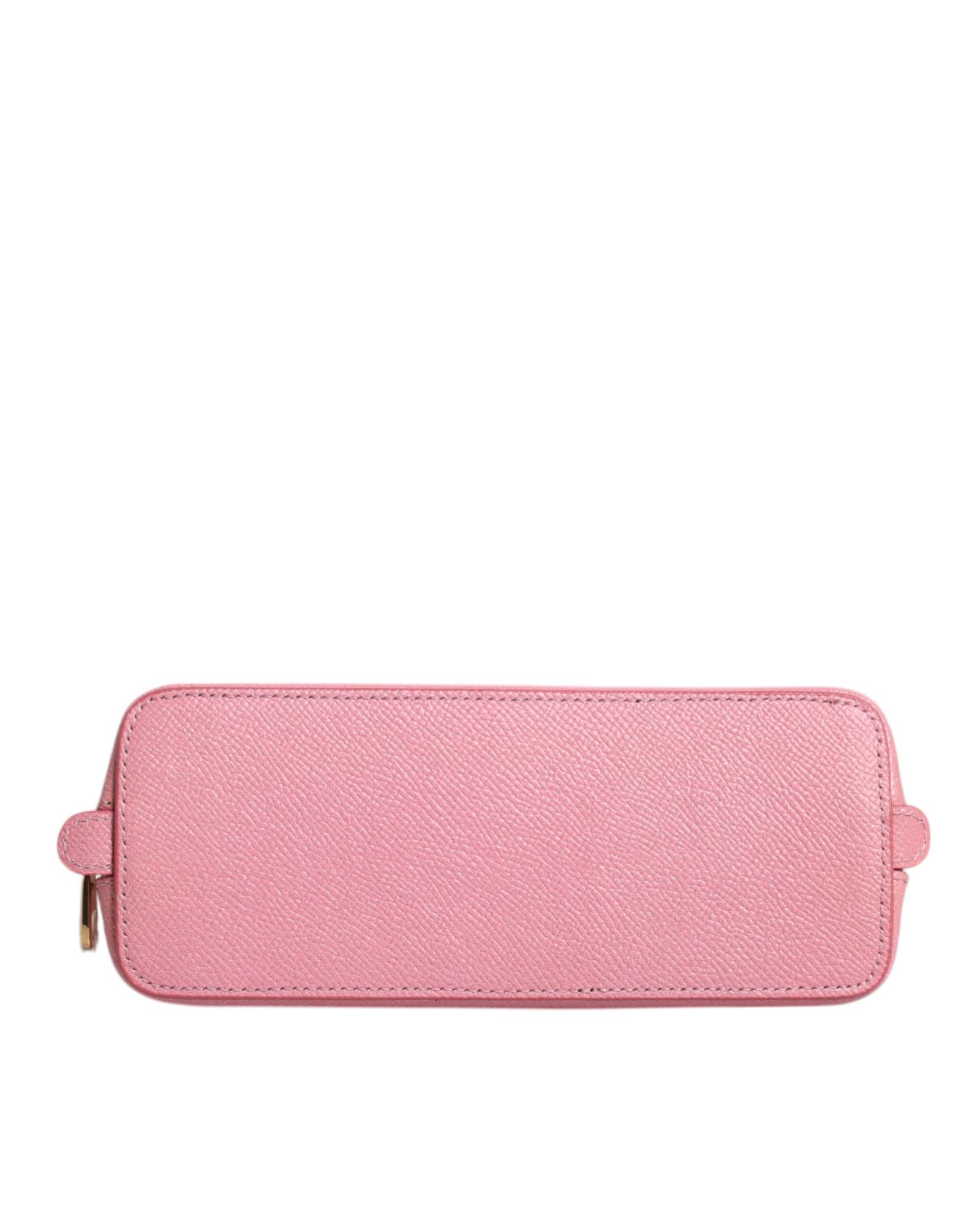 Dolce & Gabbana Women’s Pink Leather DG Logo Zip Around Hand Purse Pouch Wallet – One Size