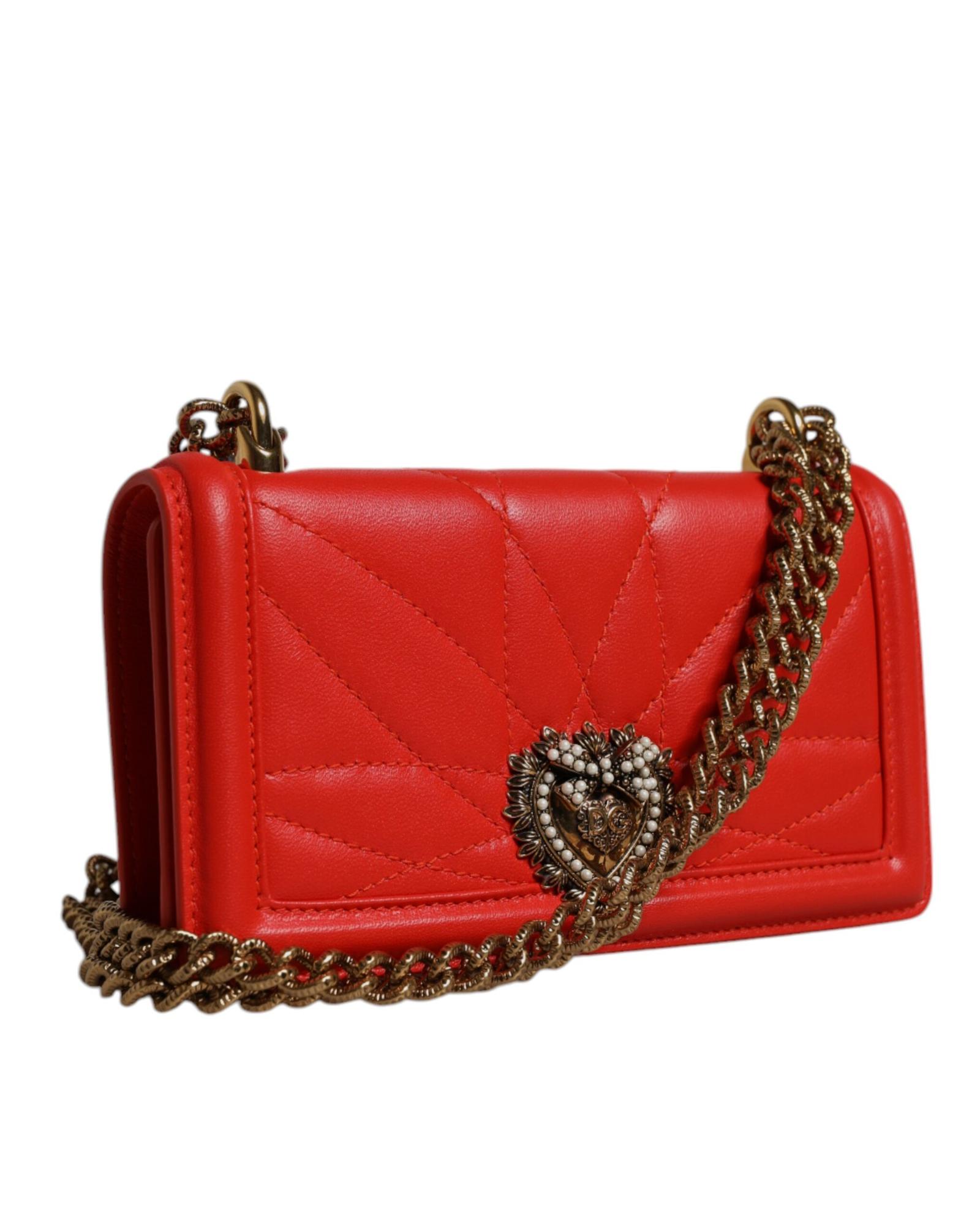 Dolce & Gabbana Women’s Red Quilted Devotion Crossbody Chain Phone Cover Bag – One Size
