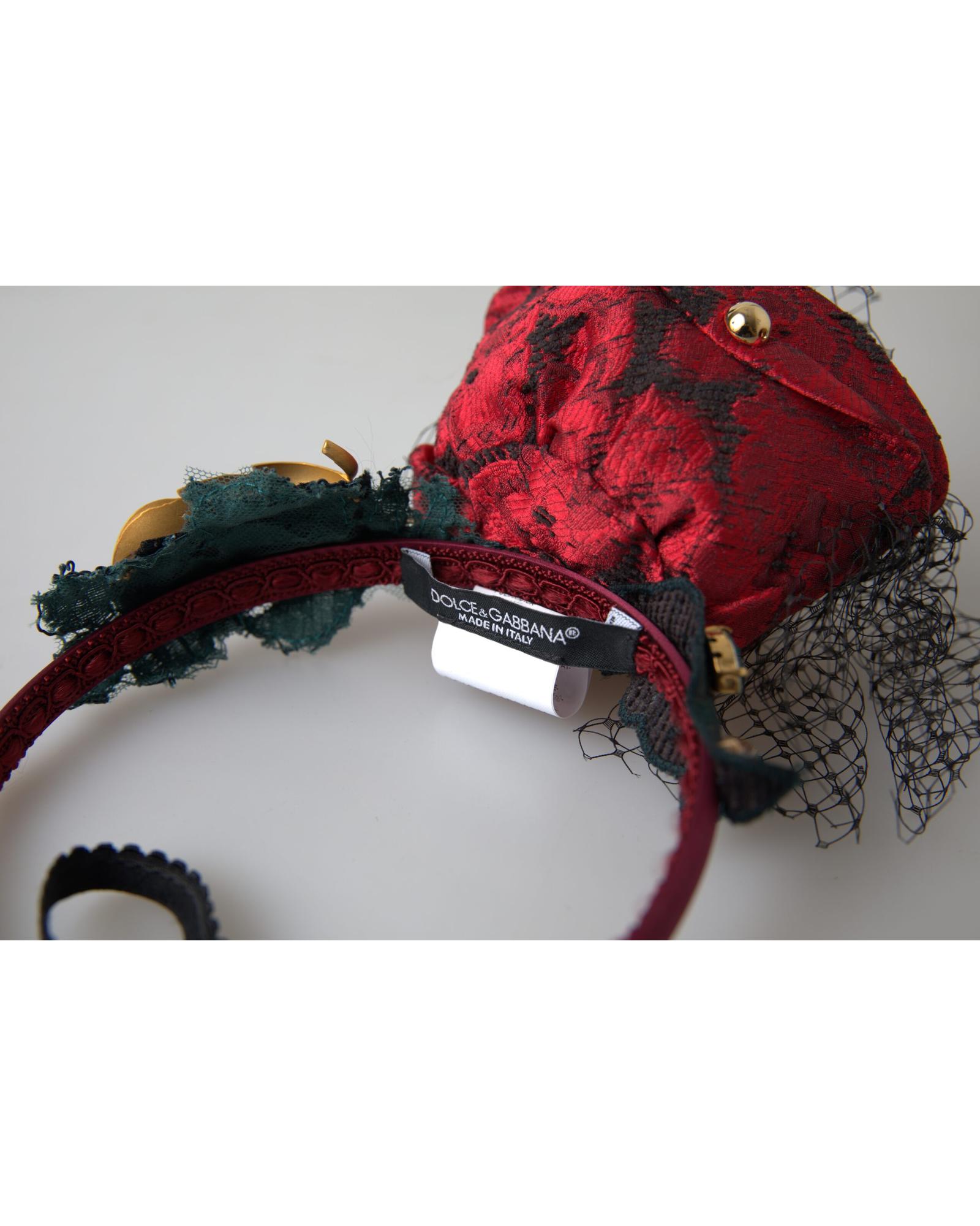 Dolce & Gabbana Women’s Red with multicolor Rose Silk Crystal Netted Logo Diadem Headband – One Size