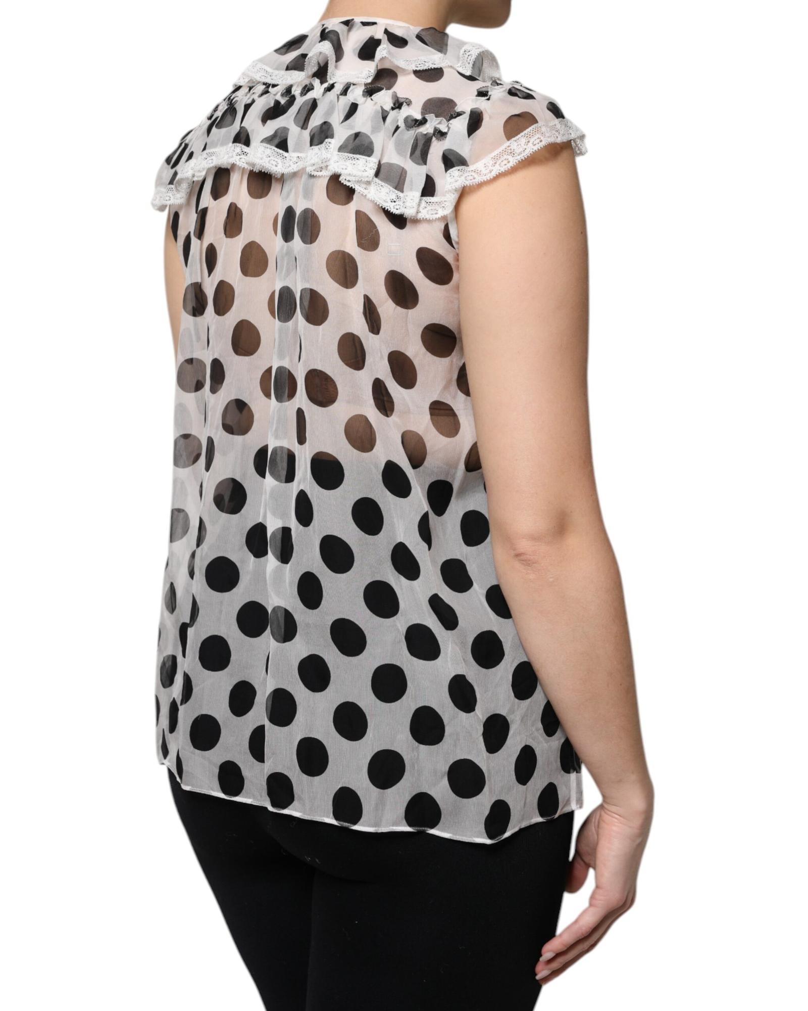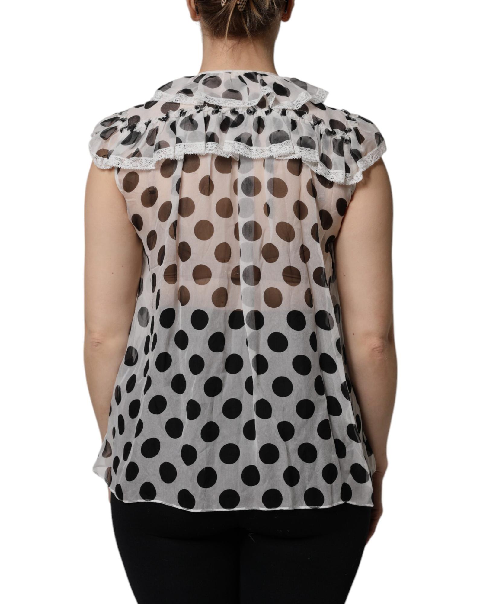 Dolce & Gabbana Women’s White Black Polka Dot Cotton Sleeveless Top – 40 IT