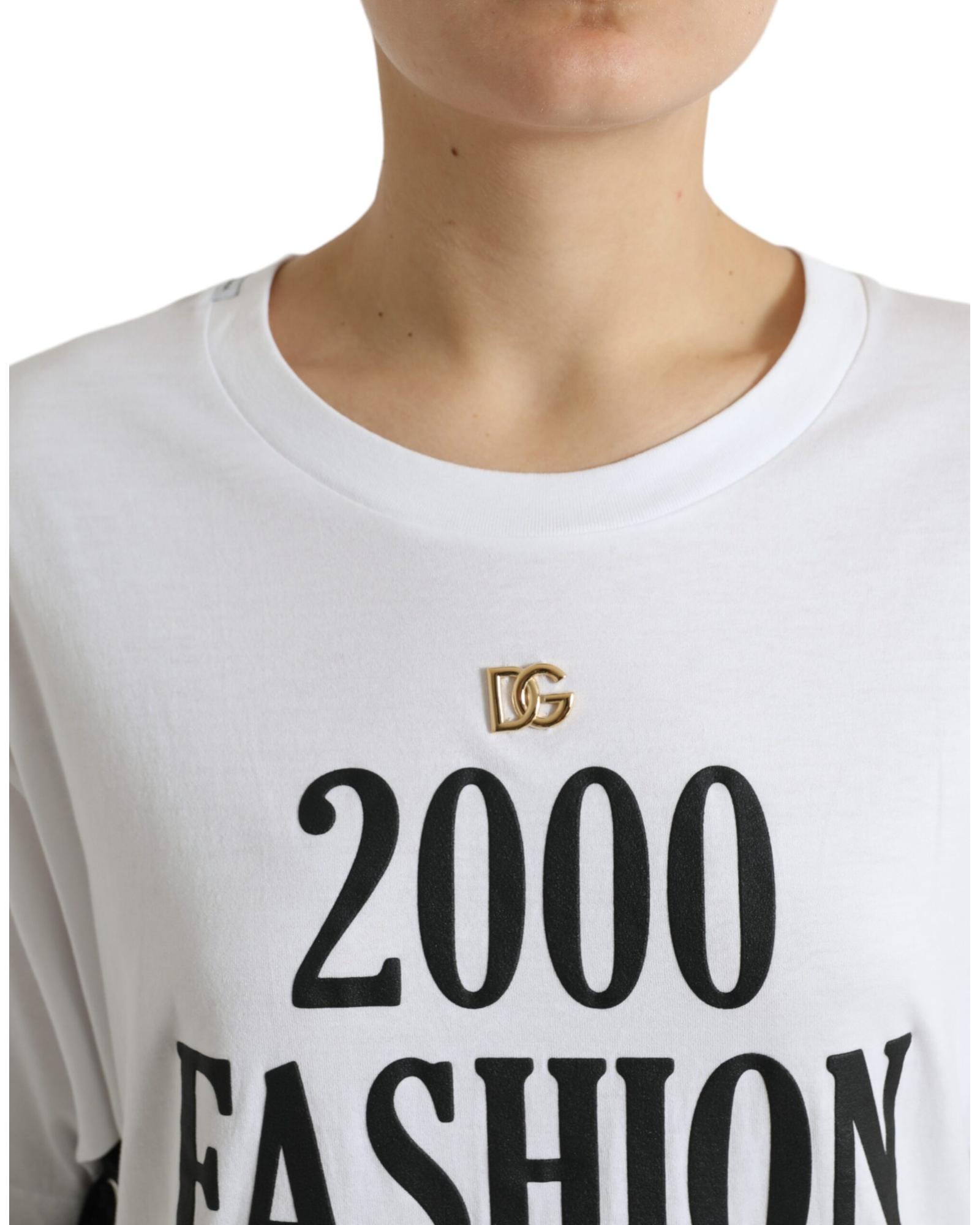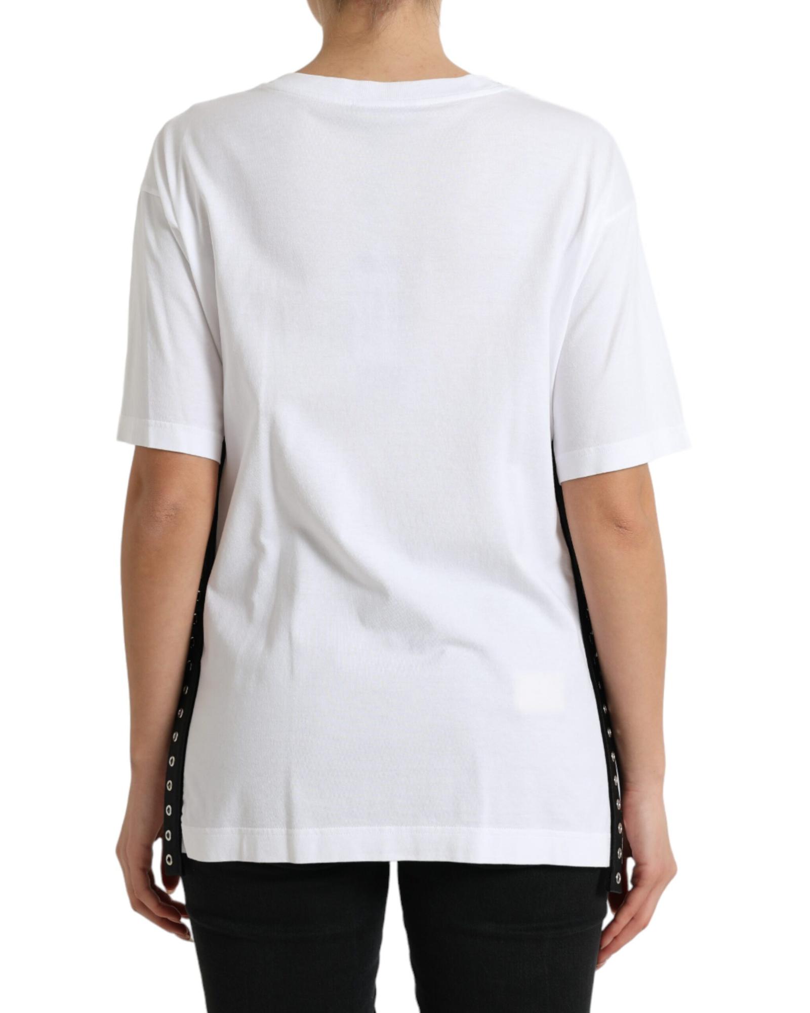 Dolce & Gabbana Women’s White Slogan Print Lacing Detailed T-shirt – 38 IT
