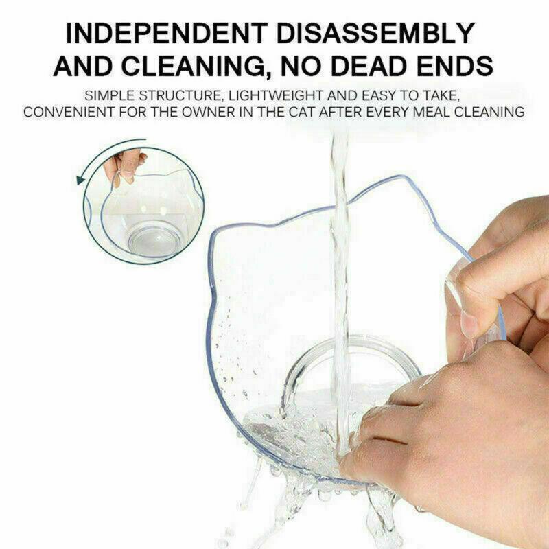 Double bowl design: The large beveled side cat food and water bowl 2 in 1 reduces the possibility of cat food falling, suitable for flat cats. The transparent bowl can be used to check the amount of food, designed for puppies and cats.
