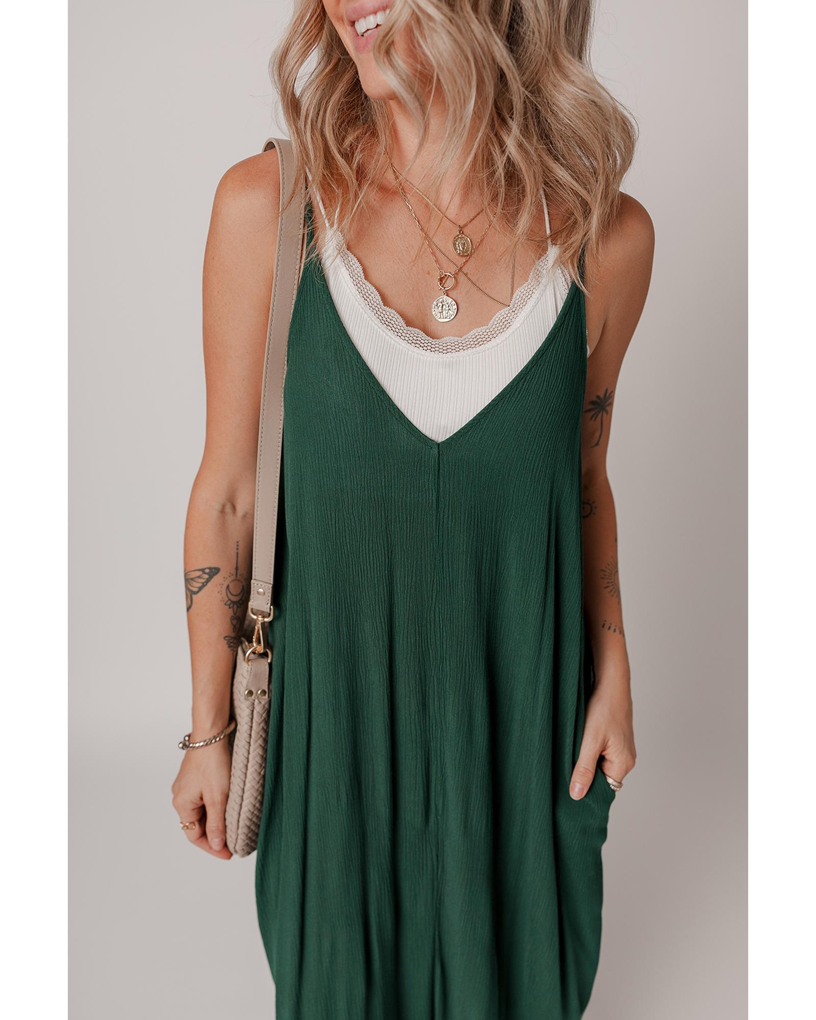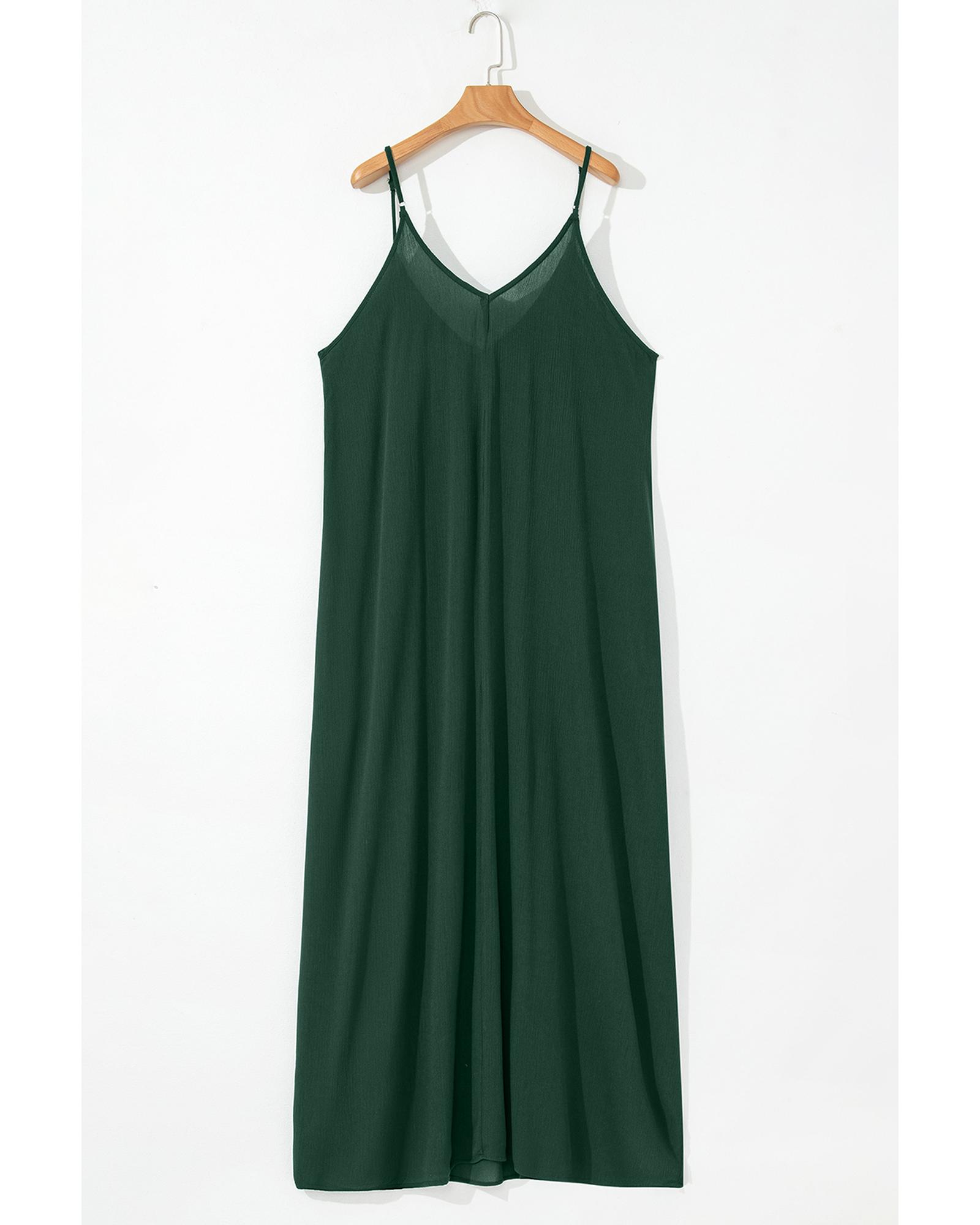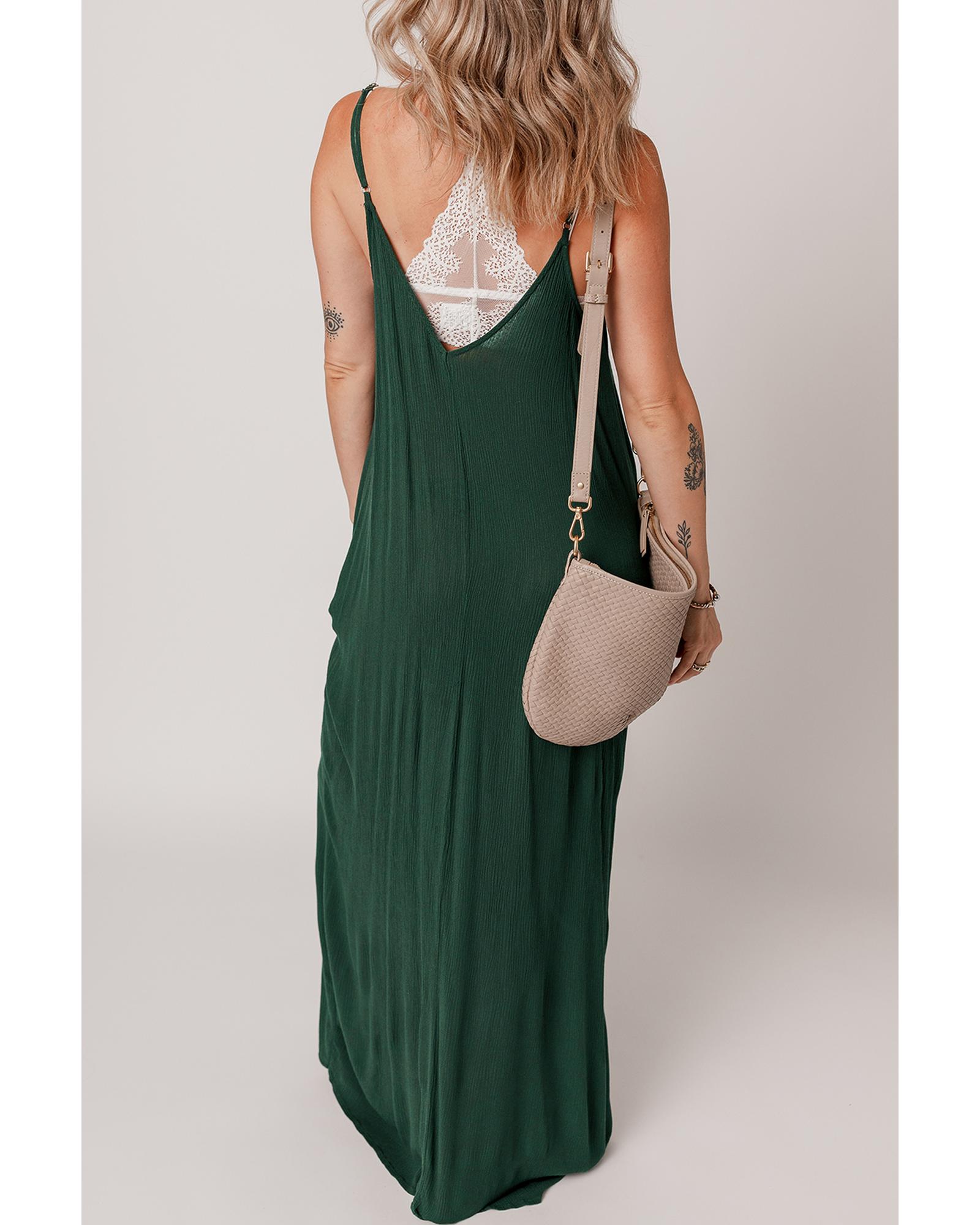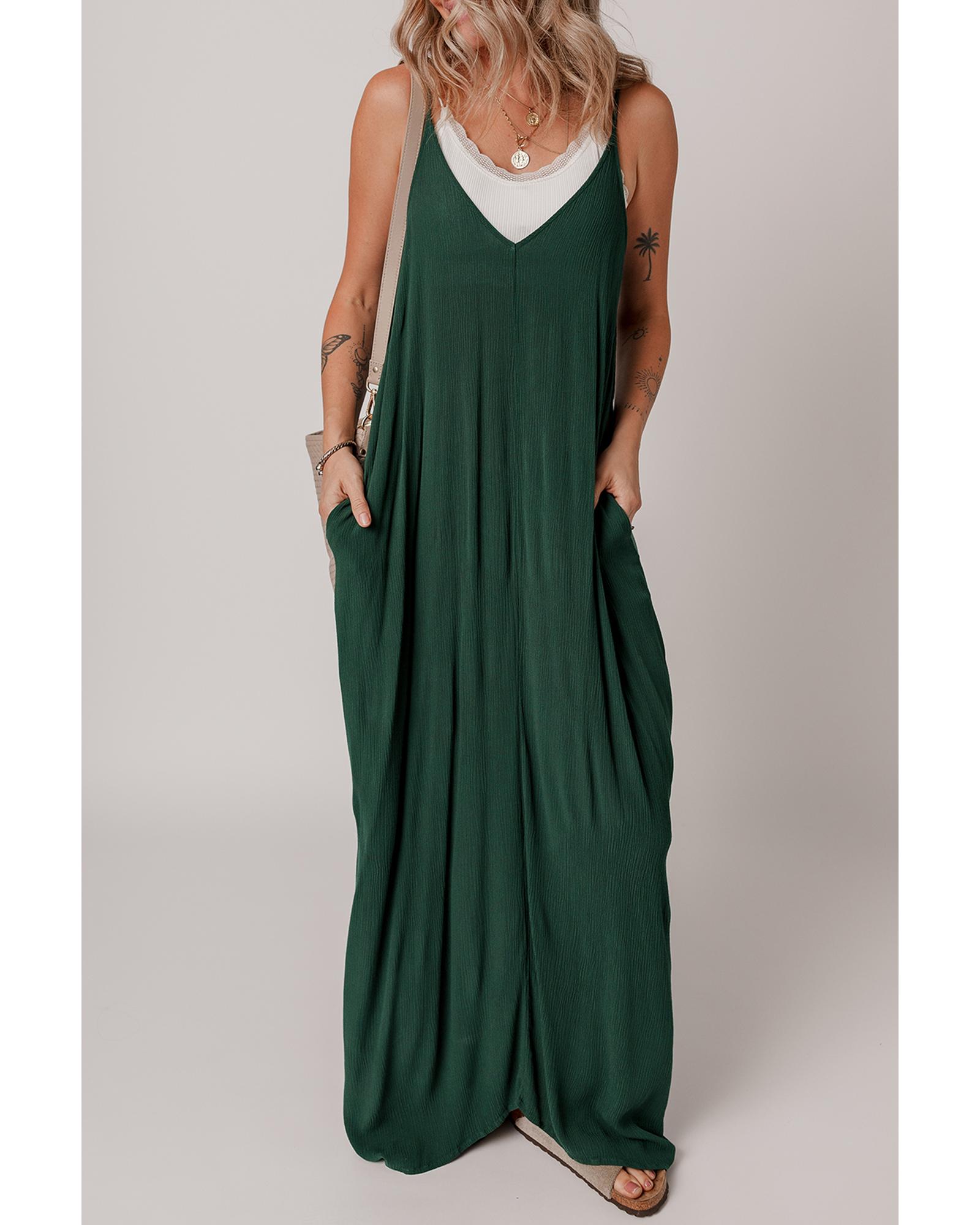 Duffel Green Spaghetti Straps Pocketed Slouchy Maxi Dress – L
