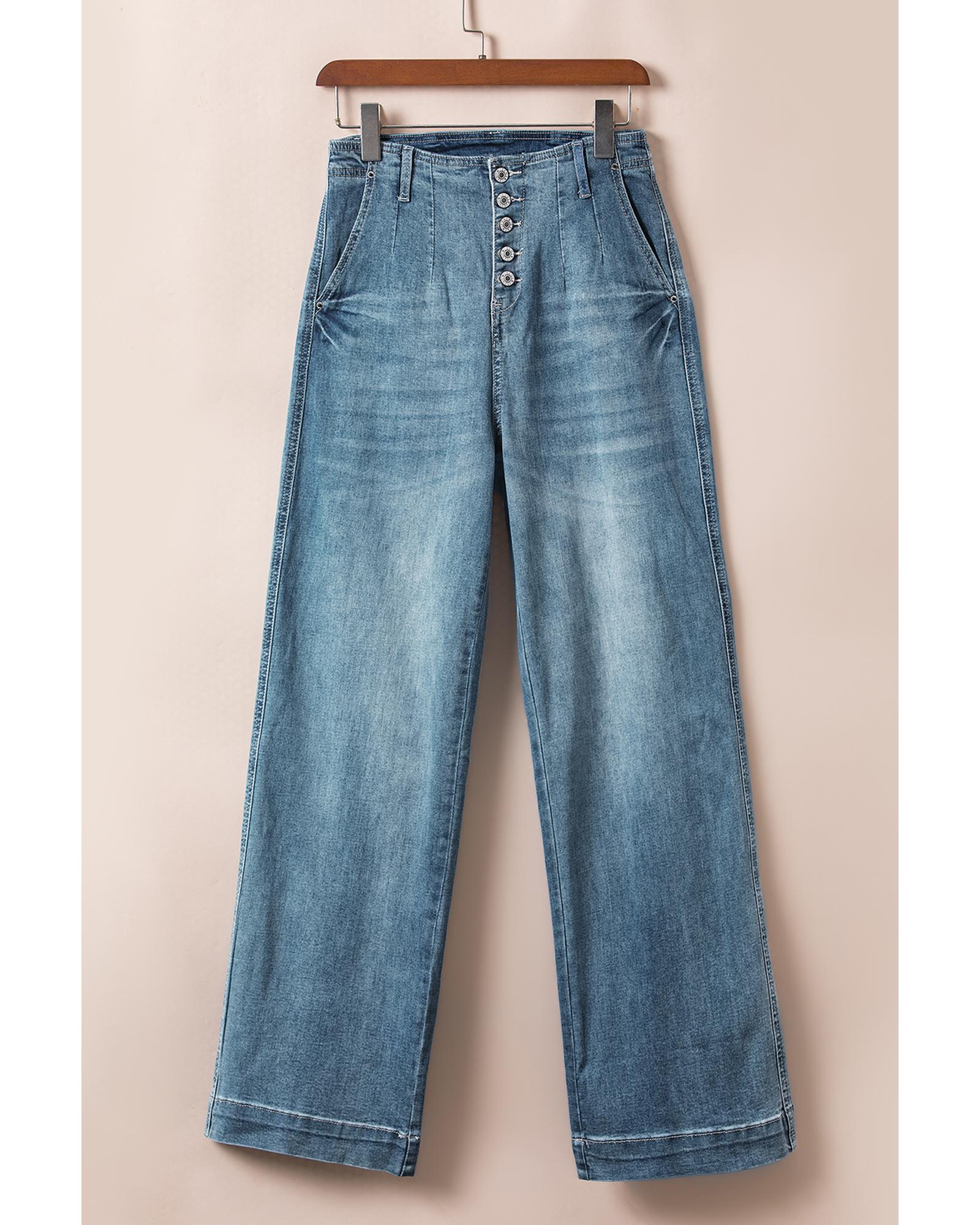 Dusk Blue Multi Buttons Medium Wash Straight Loose Leg Jeans – 16 US