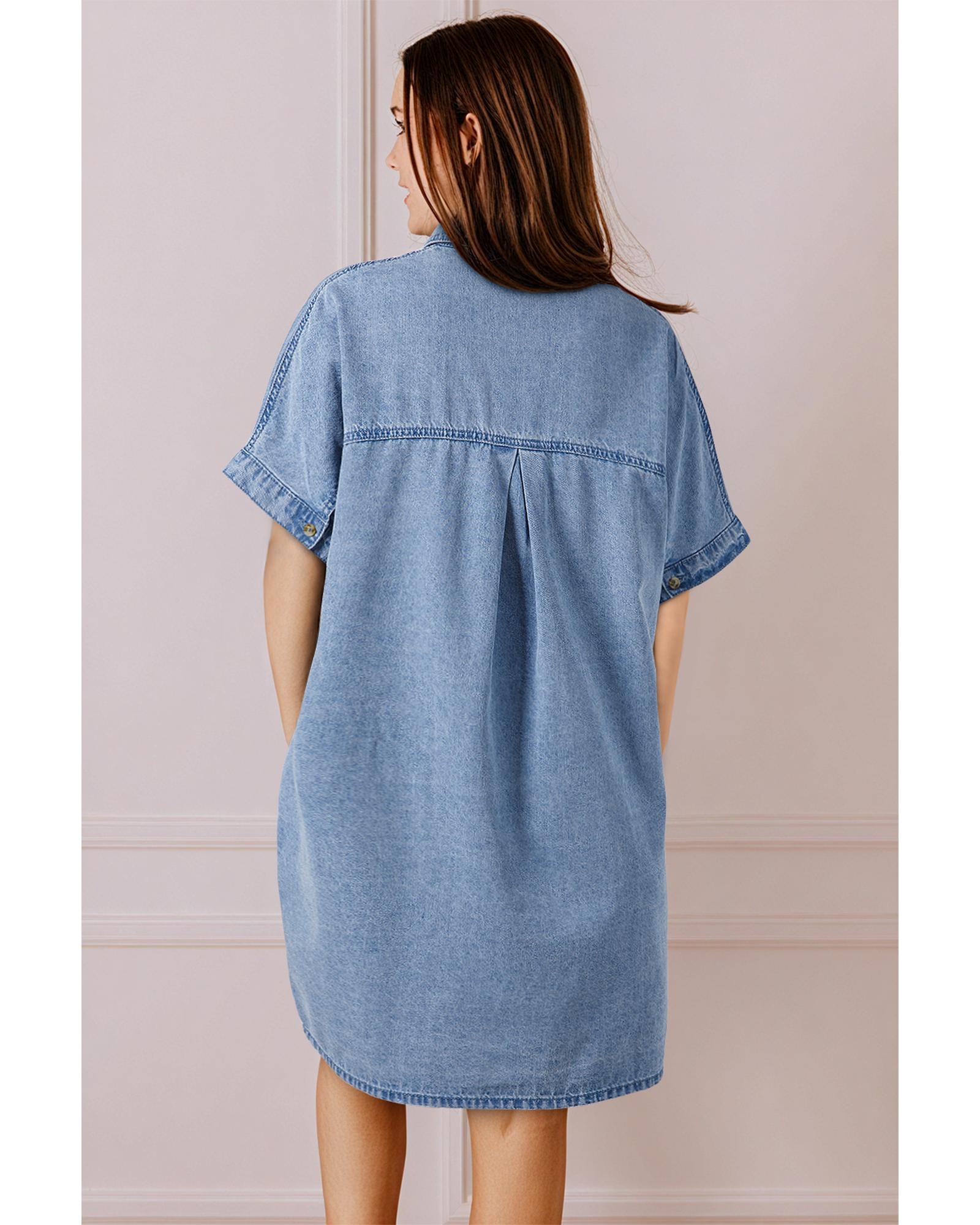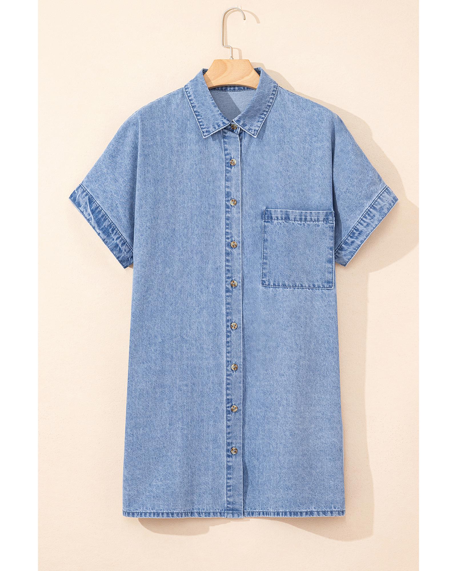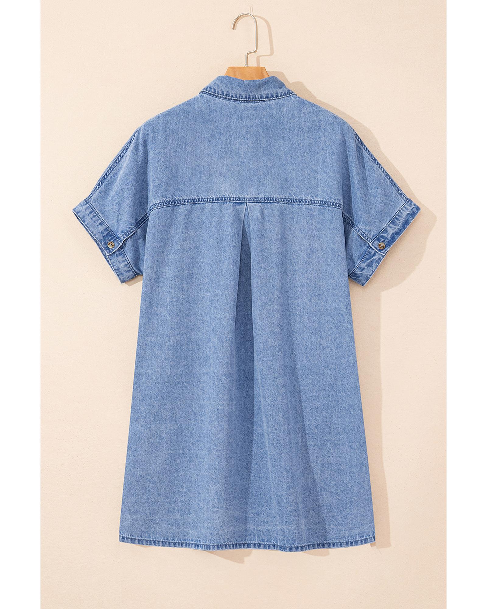 Dusk Blue Short Sleeve Pocketed Button up Denim Tunic Dress – M