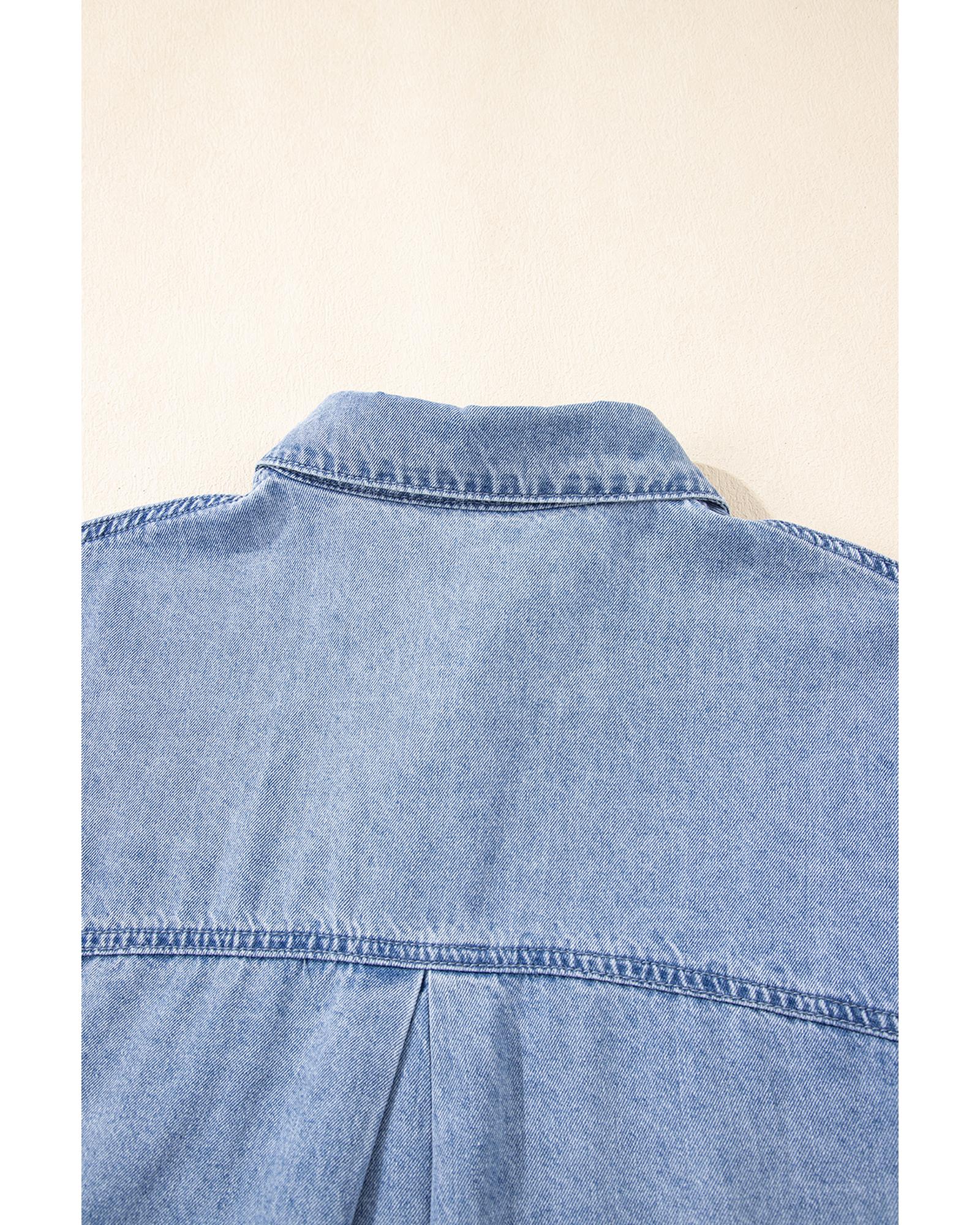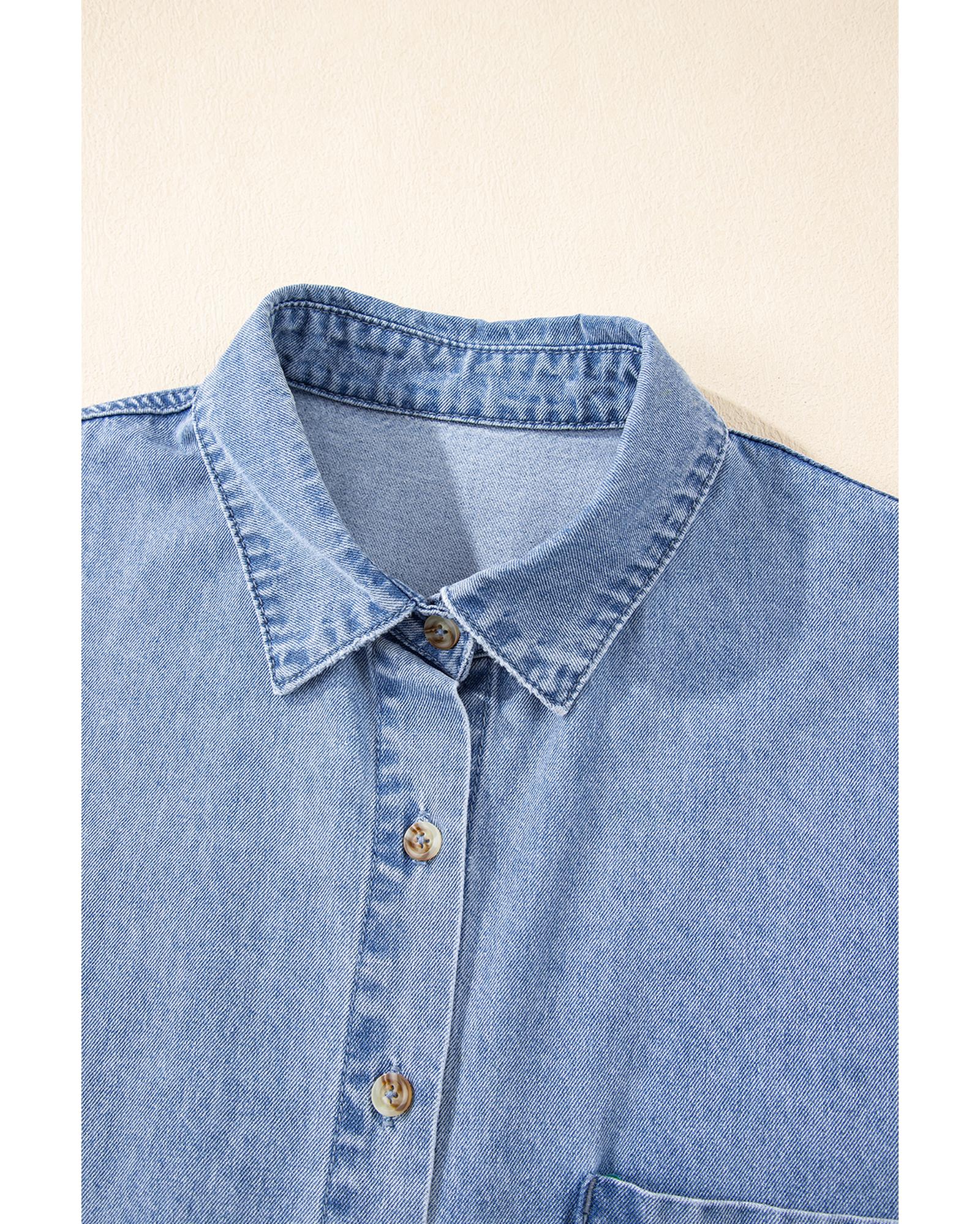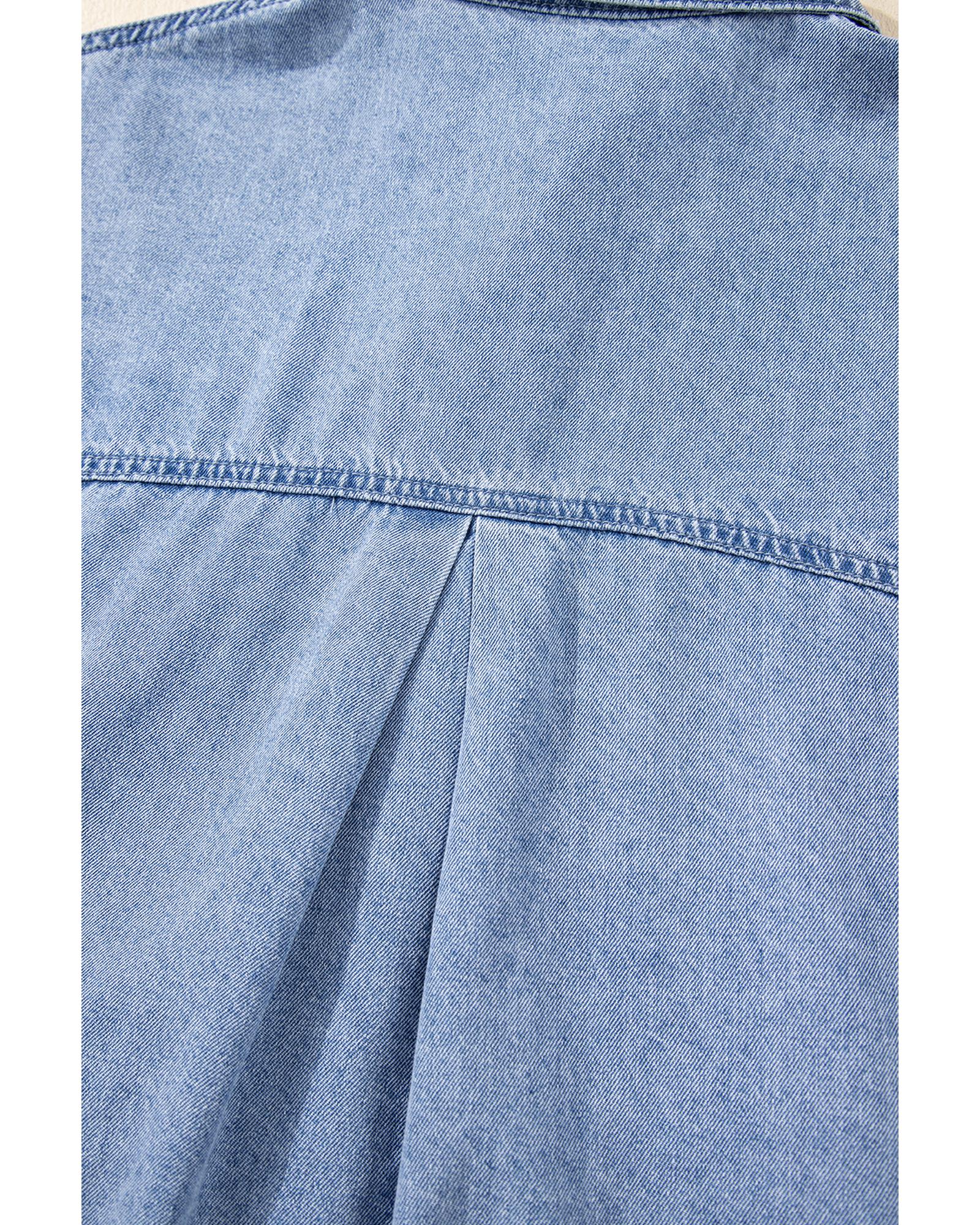 Dusk Blue Short Sleeve Pocketed Button up Denim Tunic Dress – M