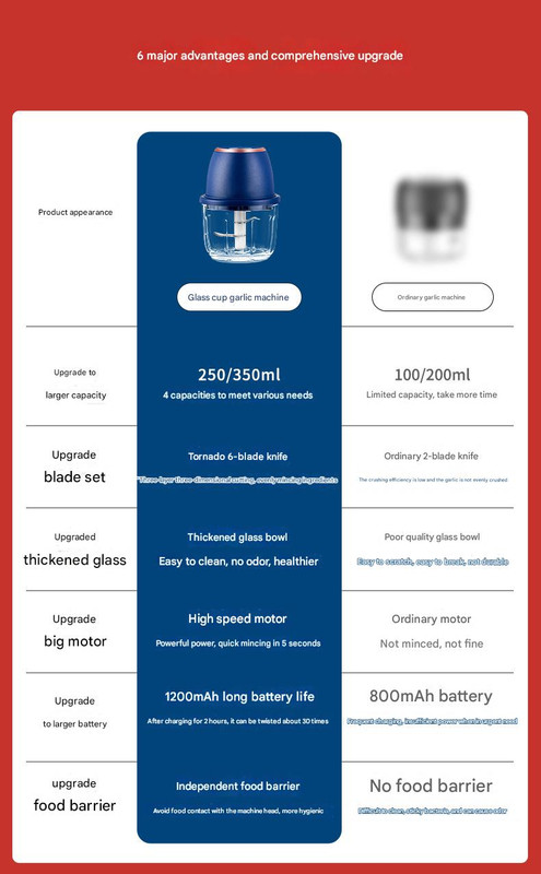 Electric Mini Garlic Chopper with Glass Bowl – USB Rechargeable, 6 Blades, Large Capacity(blue)