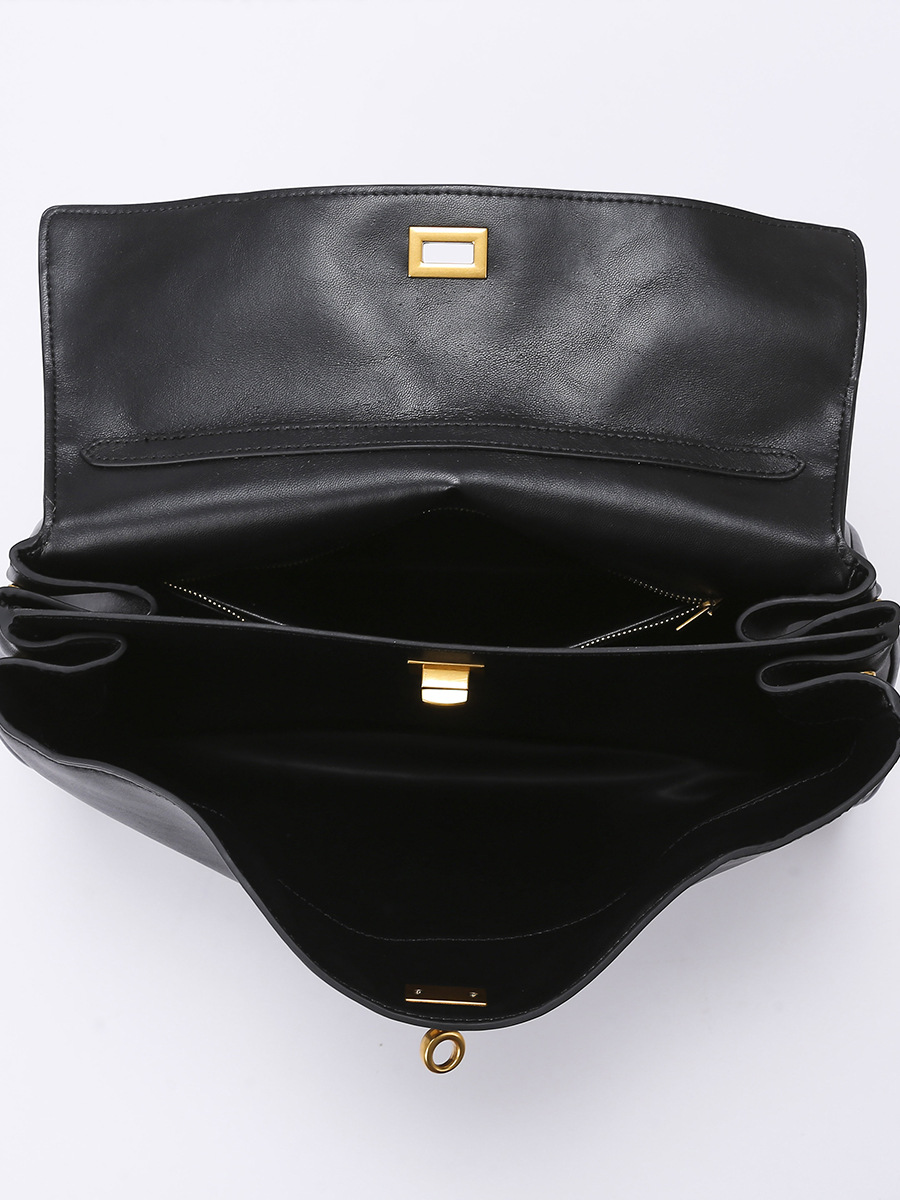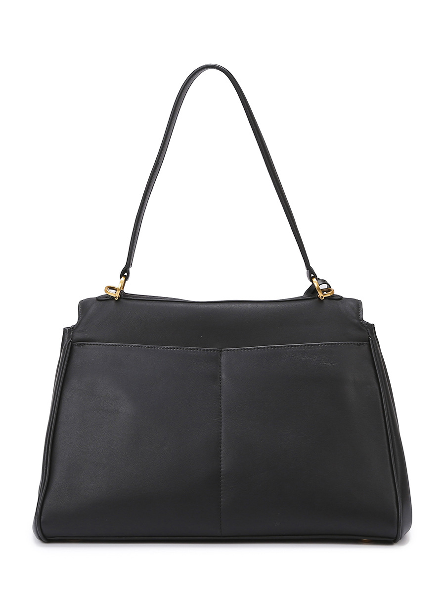 Elegant Black Leather Handbag with Gold Accents – Versatile Shoulder and Hand Carry