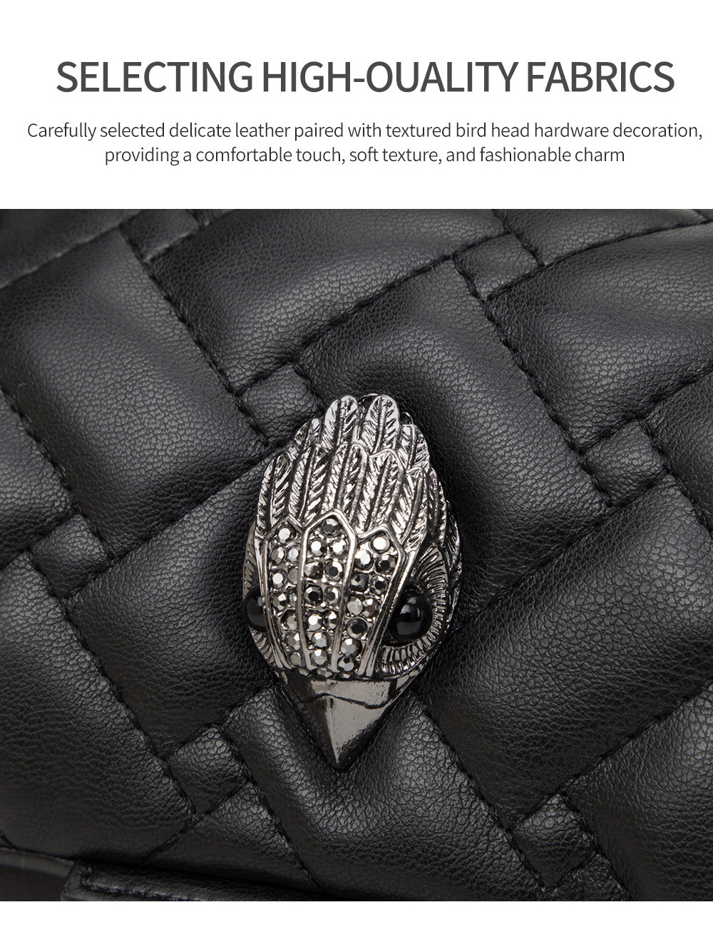 Elegant Quilted Leather Chain Bag with Bird Head Clasp(Black)